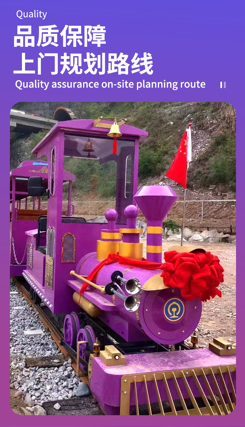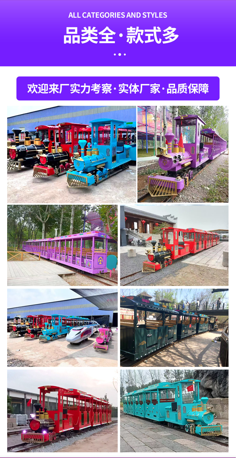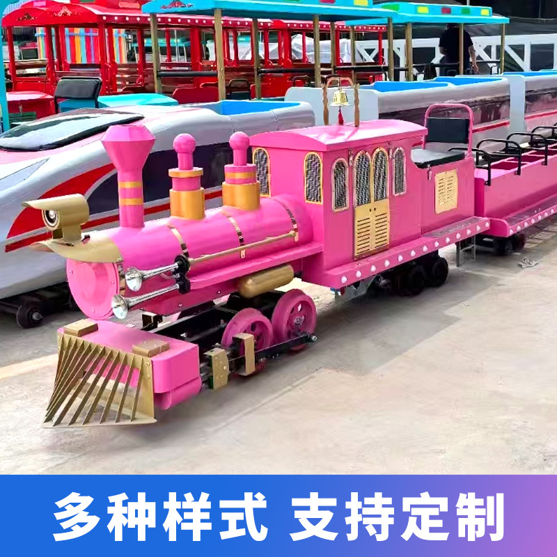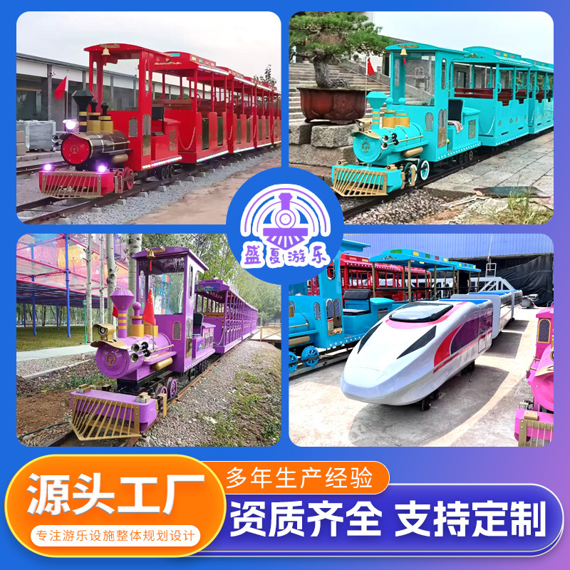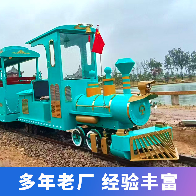 Модный туристический поезд для экскурсий на открытом воздухе, трек для поезда, пасторальный лотосовый пруд, живописный парк, трамвай, поезд, завод-производитель