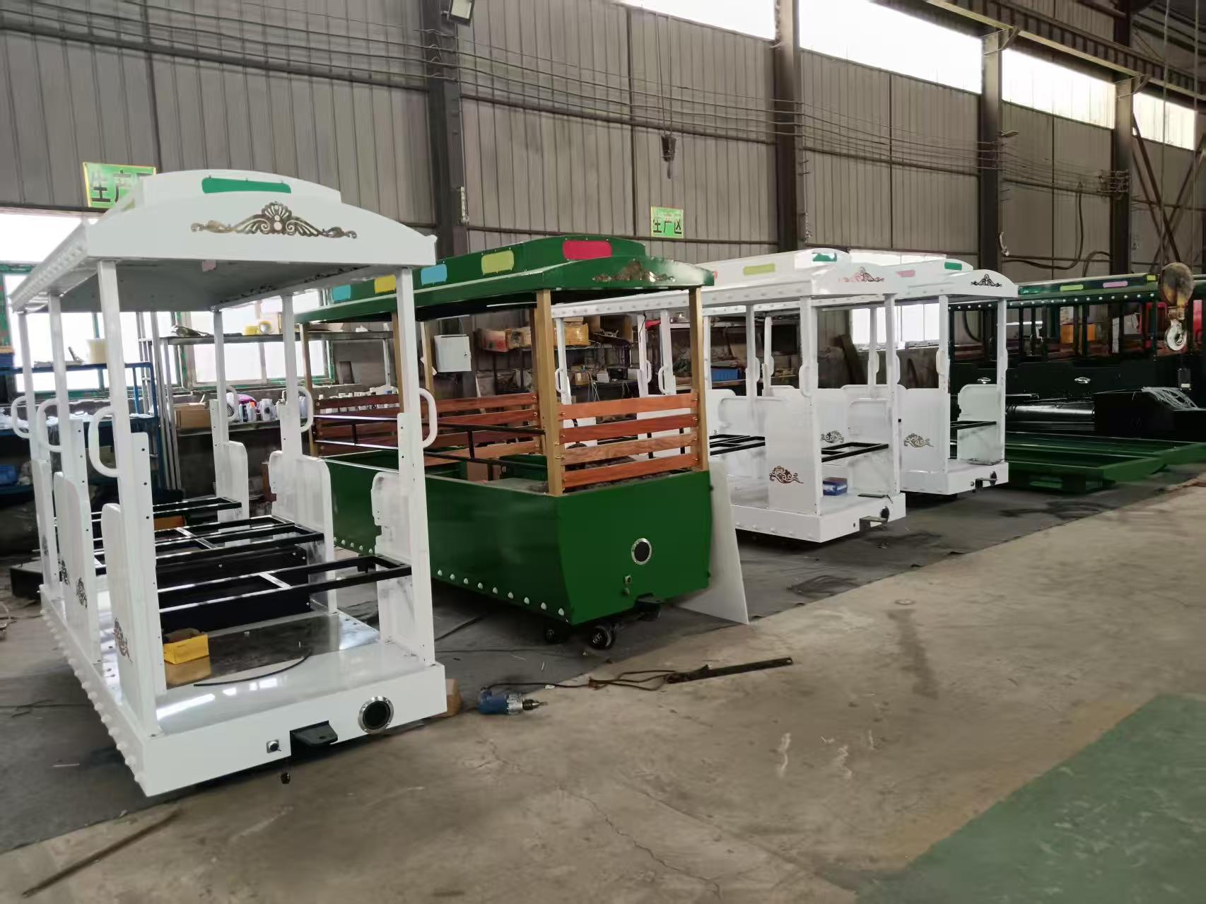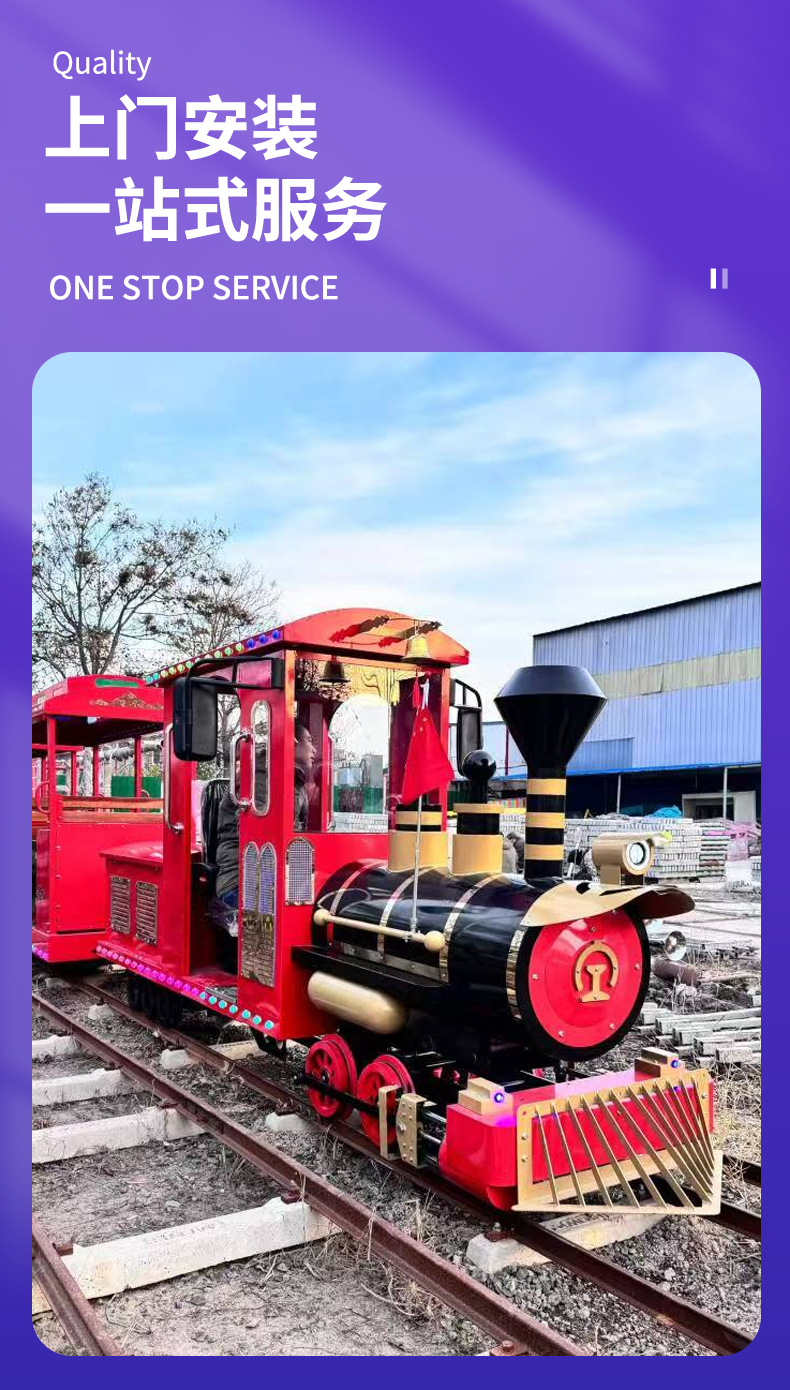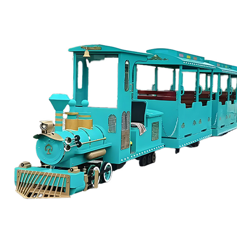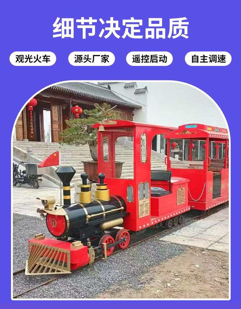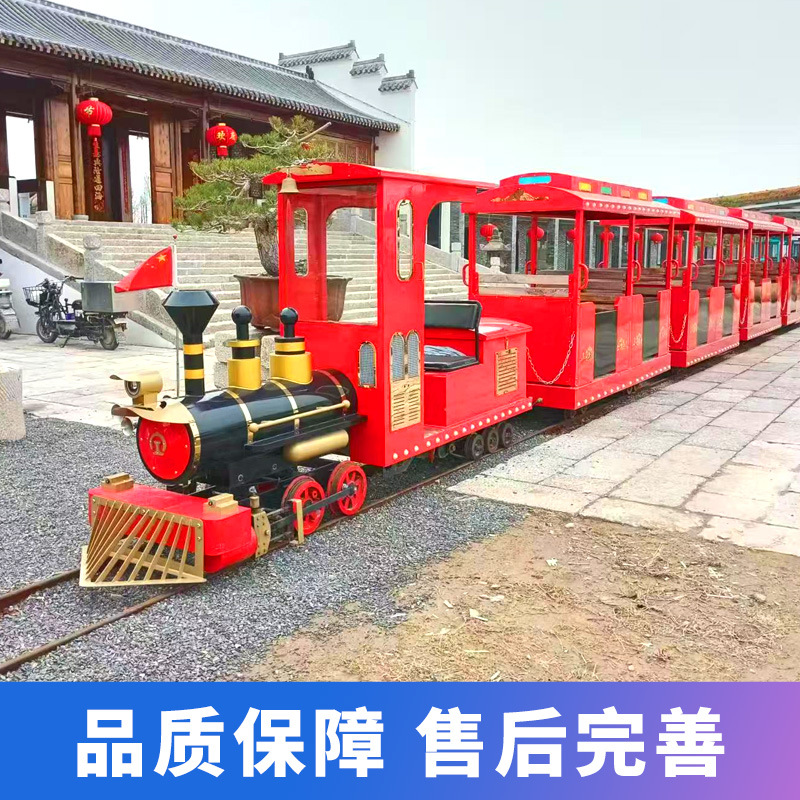 Модный туристический поезд для экскурсий на открытом воздухе, трек для поезда, пасторальный лотосовый пруд, живописный парк, трамвай, поезд, завод-производитель