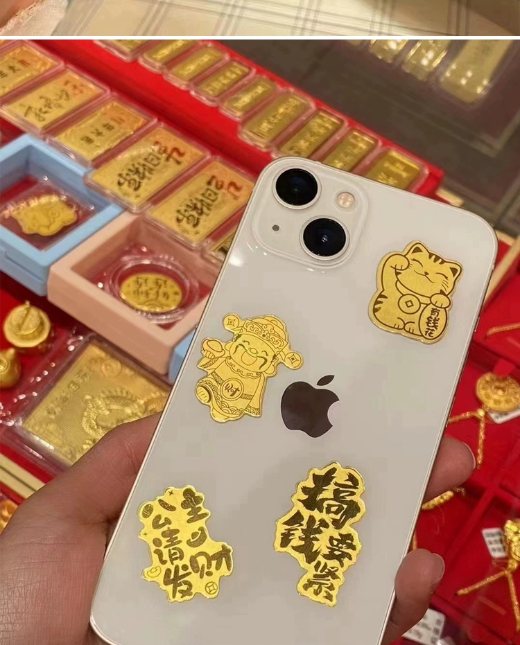 Золотая наклейка на телефон Shuibei, чистое золото 999, принцесса, пожалуйста, станьте богатым, деньги, счастливый талисман