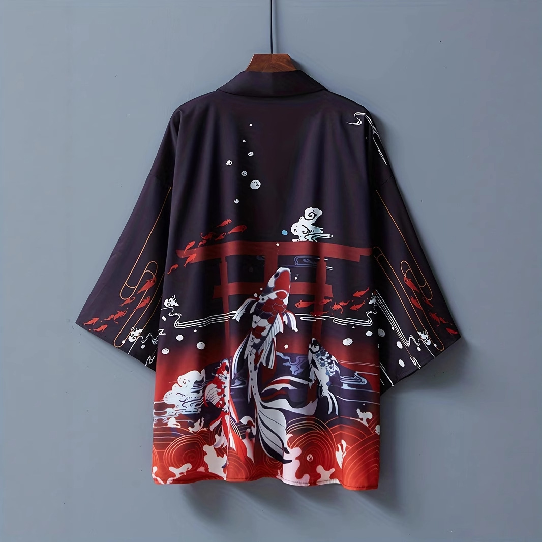 Свободная японская рубашка в японском стиле с перьями в этническом стиле Ukiyo-e с принтом феникса, юката, кимоно, кардиган, накидка
