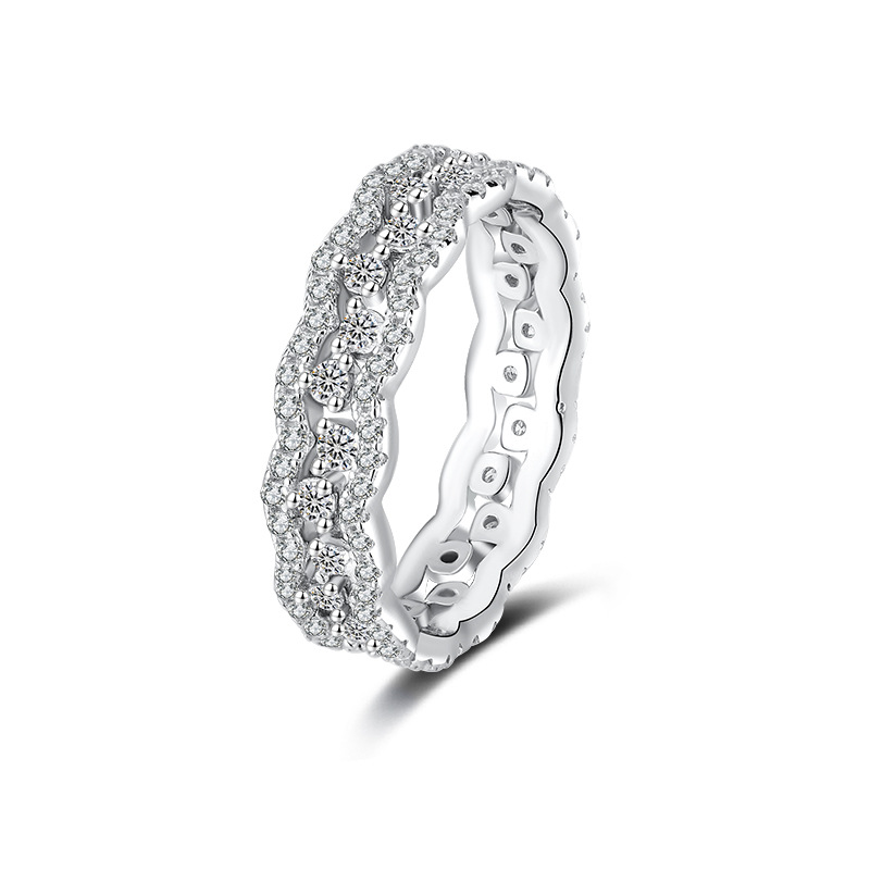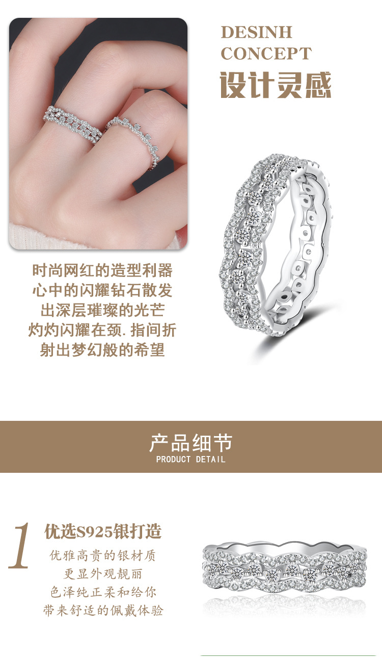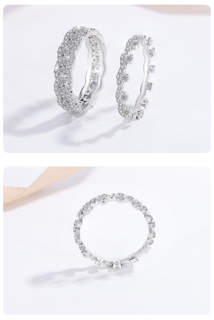 Кольцо с полным рядом бриллиантов, кружевное кольцо из серебра 925 пробы с моассанитом, тонкое многослойное кольцо, модный тренд, пользующийся большим спросом за рубежом