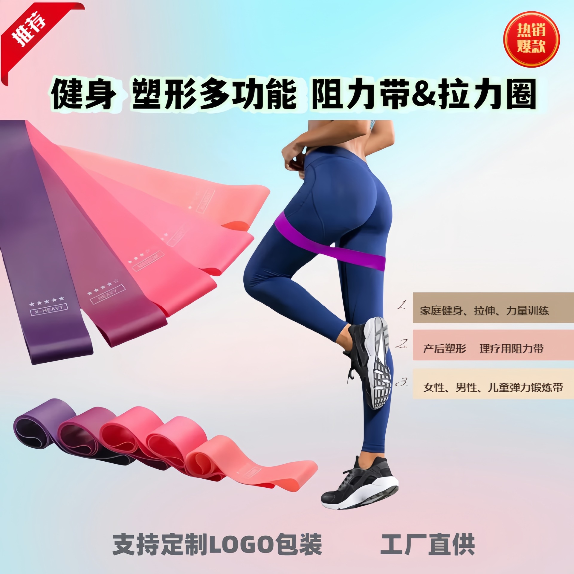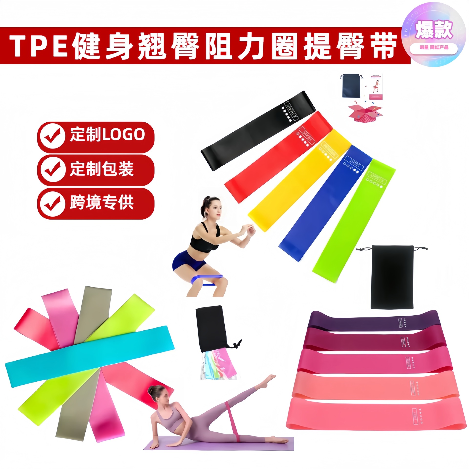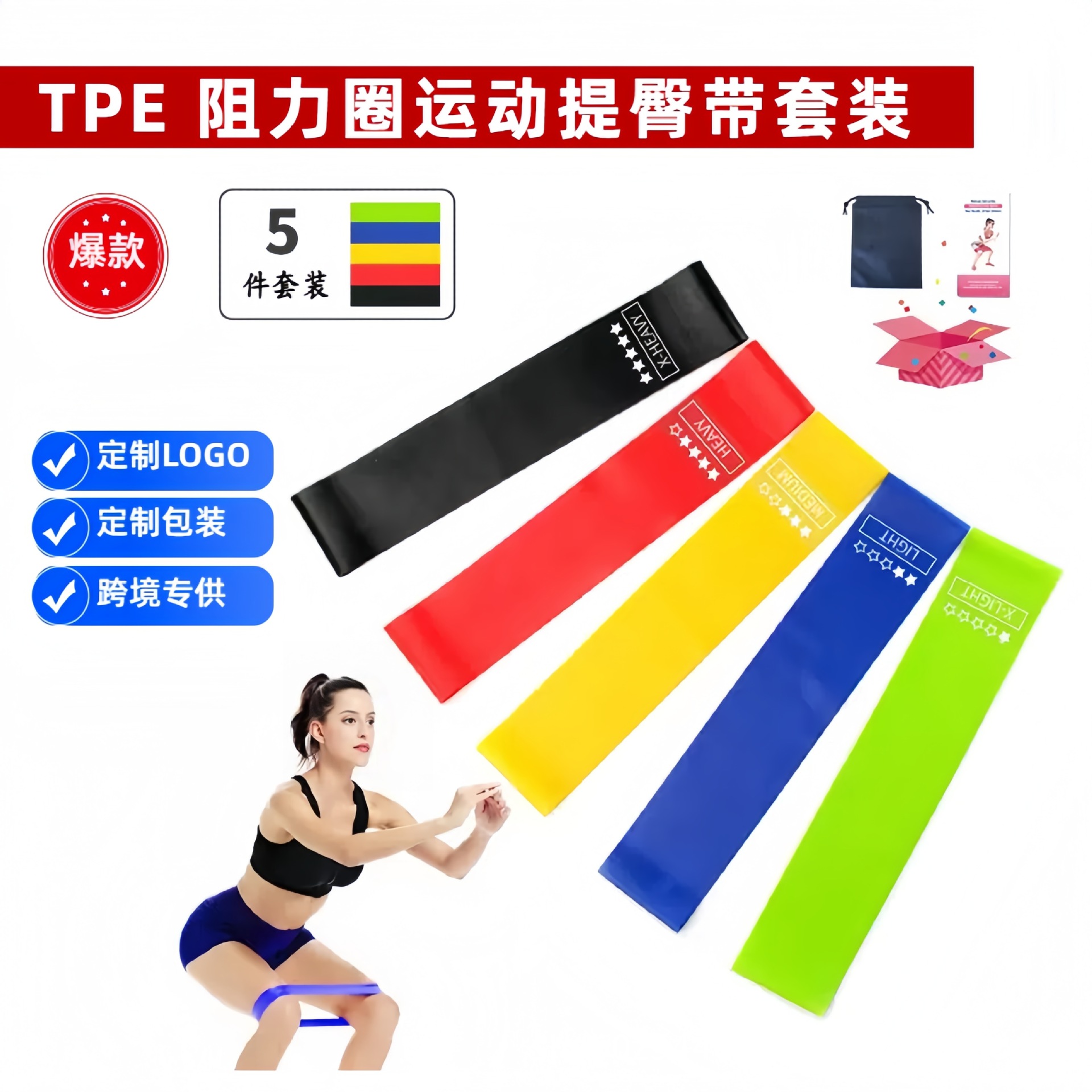 Кастомизированный эластичный круг для фитнеса, растяжки, силовых тренировок, упражнений на растяжку бедер, спортивный пояс для поднятия бедер с регулируемым натяжением.