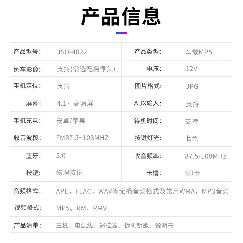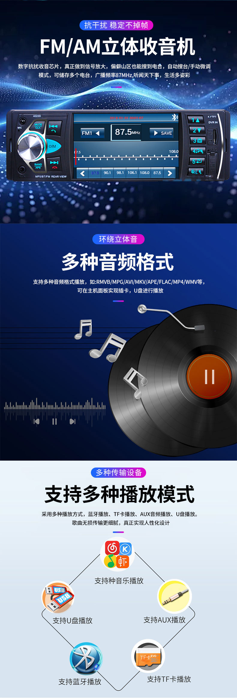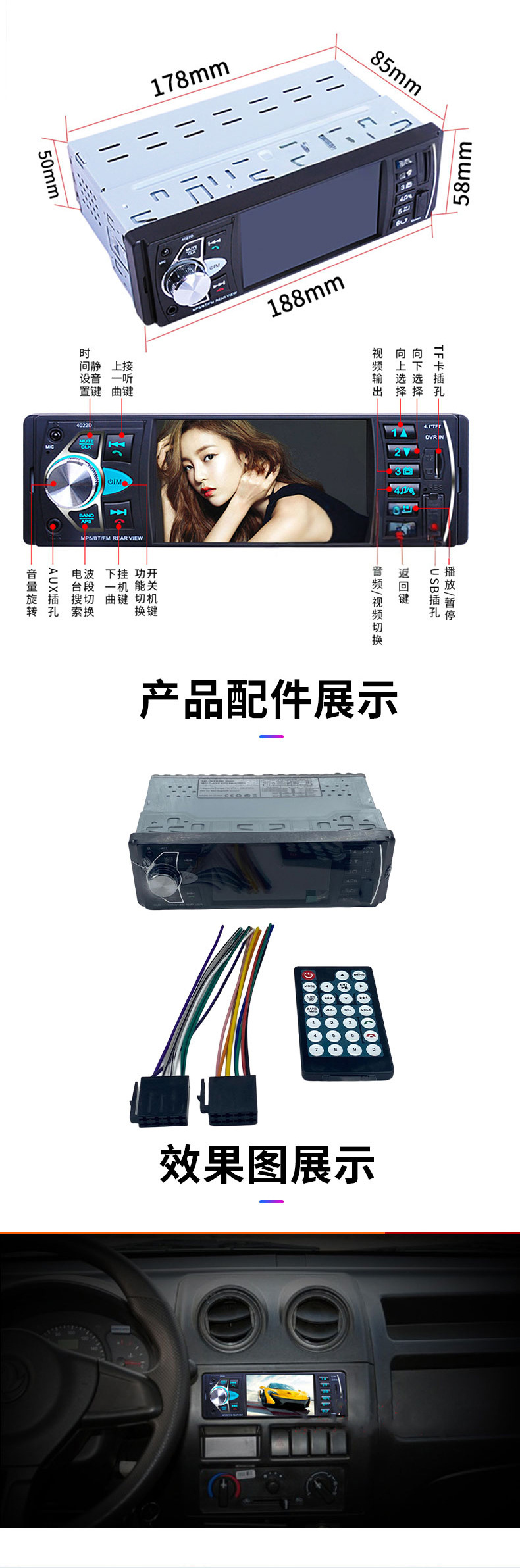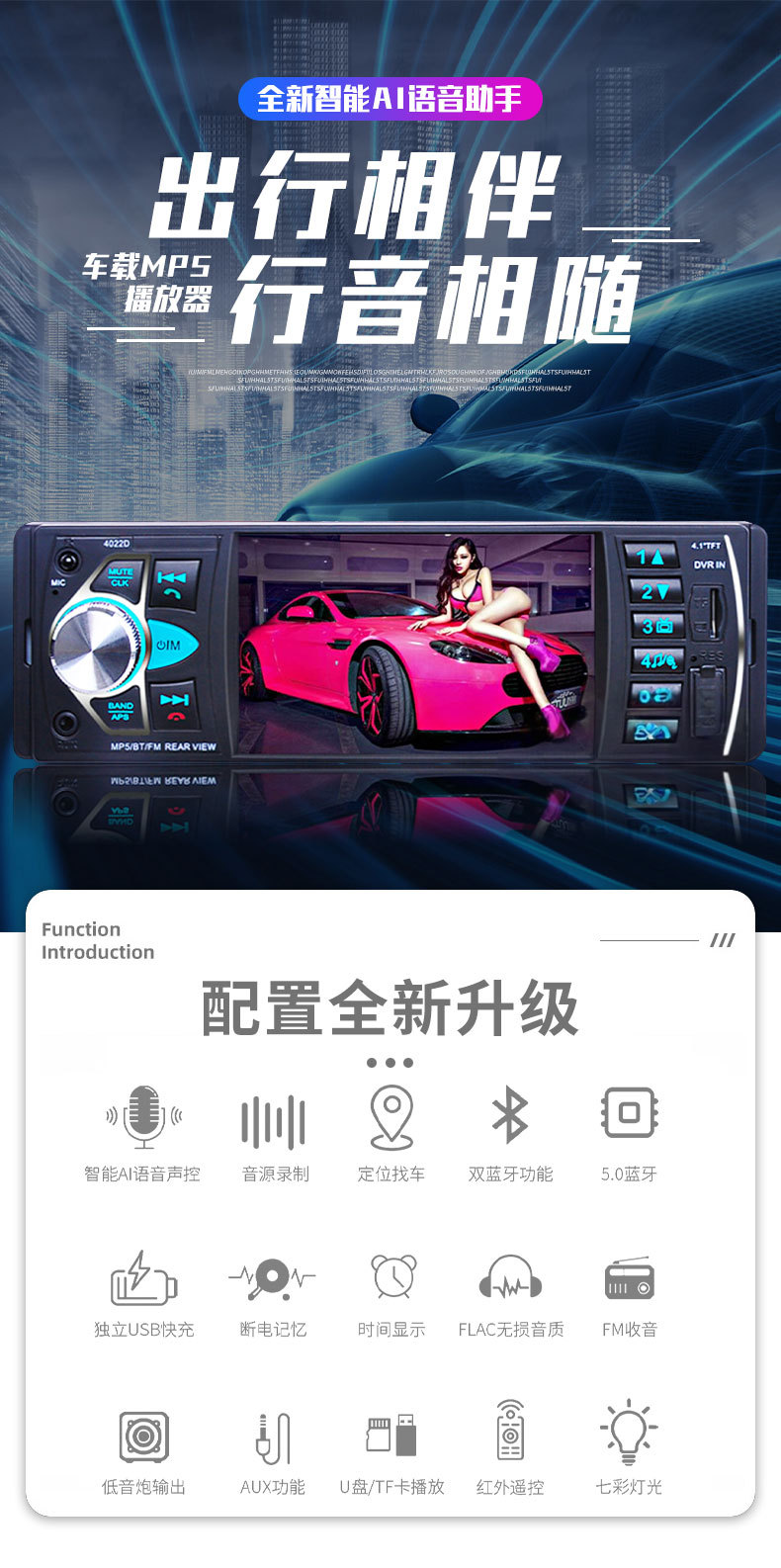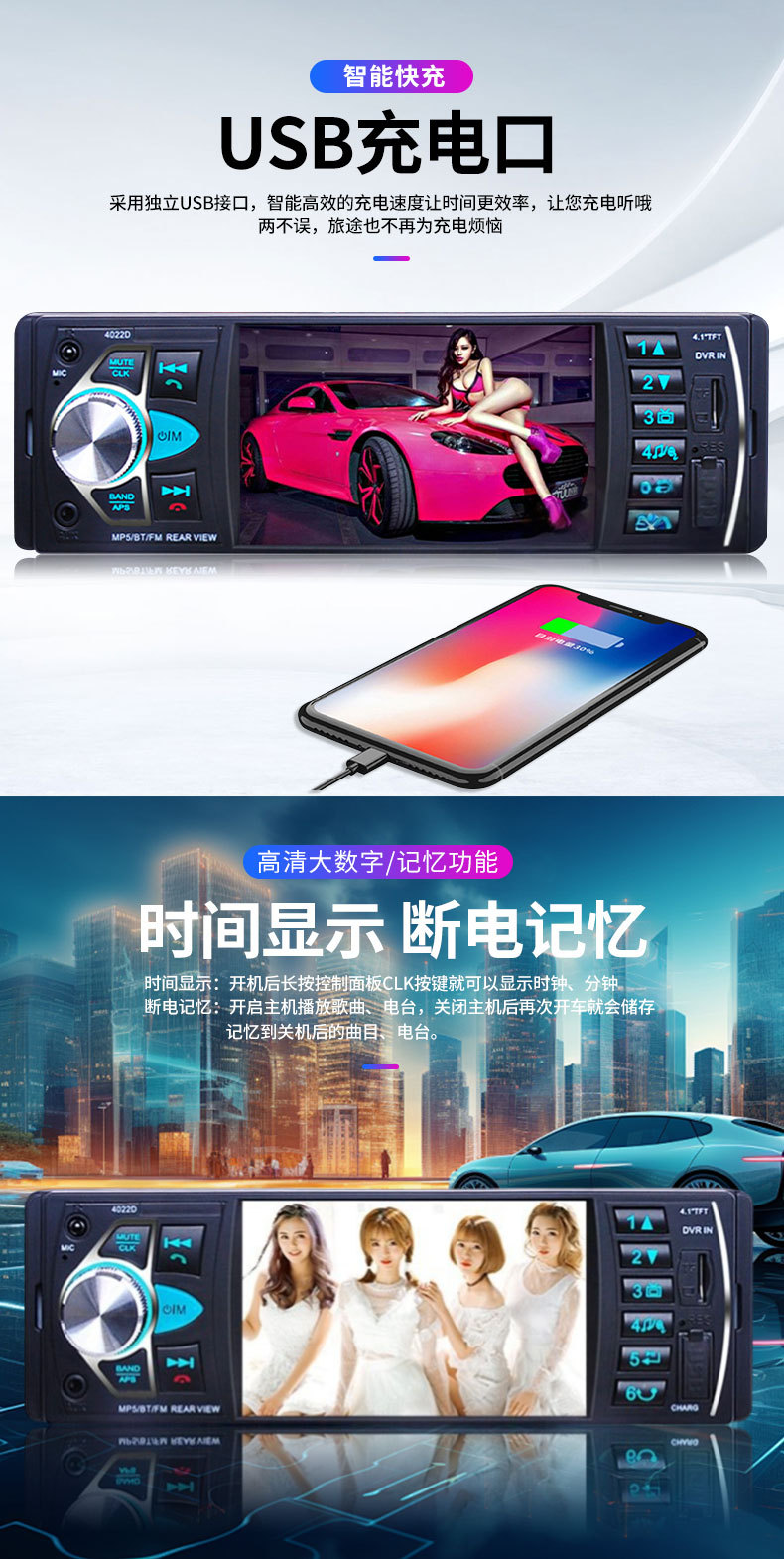 Универсальный автомобильный Bluetooth MP5-плеер 4.1inch с поддержкой воспроизведения музыки и видео, картридером, FM-радио и функцией приоритета заднего хода (HD)