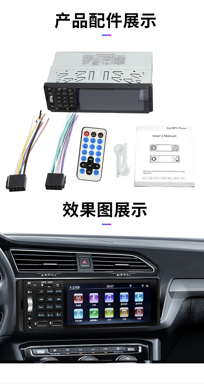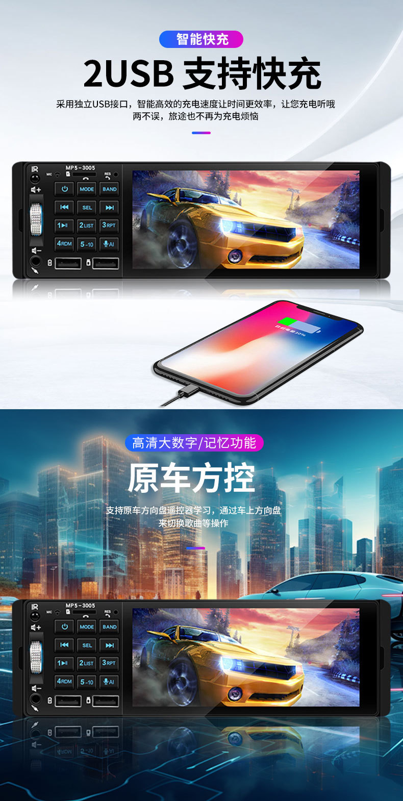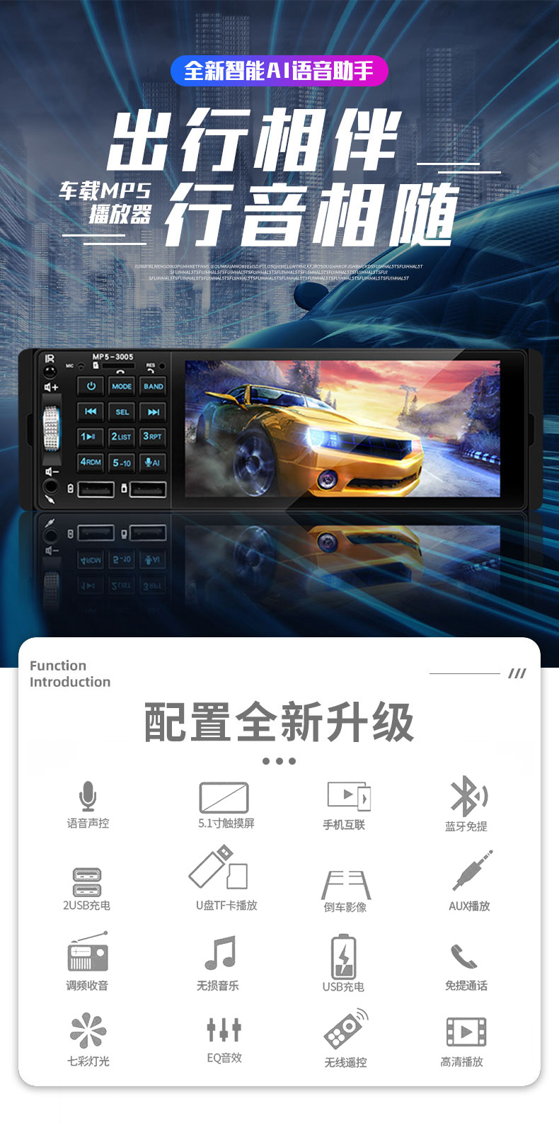 Автомобильный MP5-плеер Carplay, подключение мобильного телефона Apple, экран высокой четкости 5.1inch пикселей, беспроводной MP5-плеер