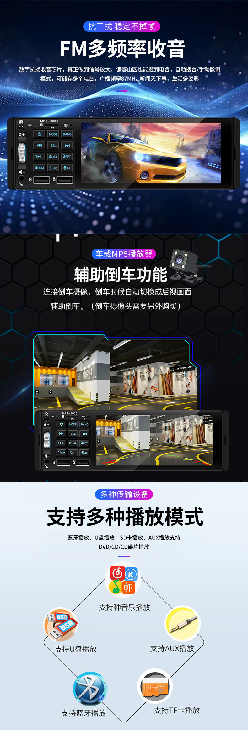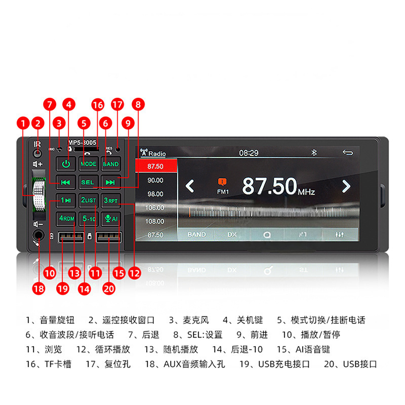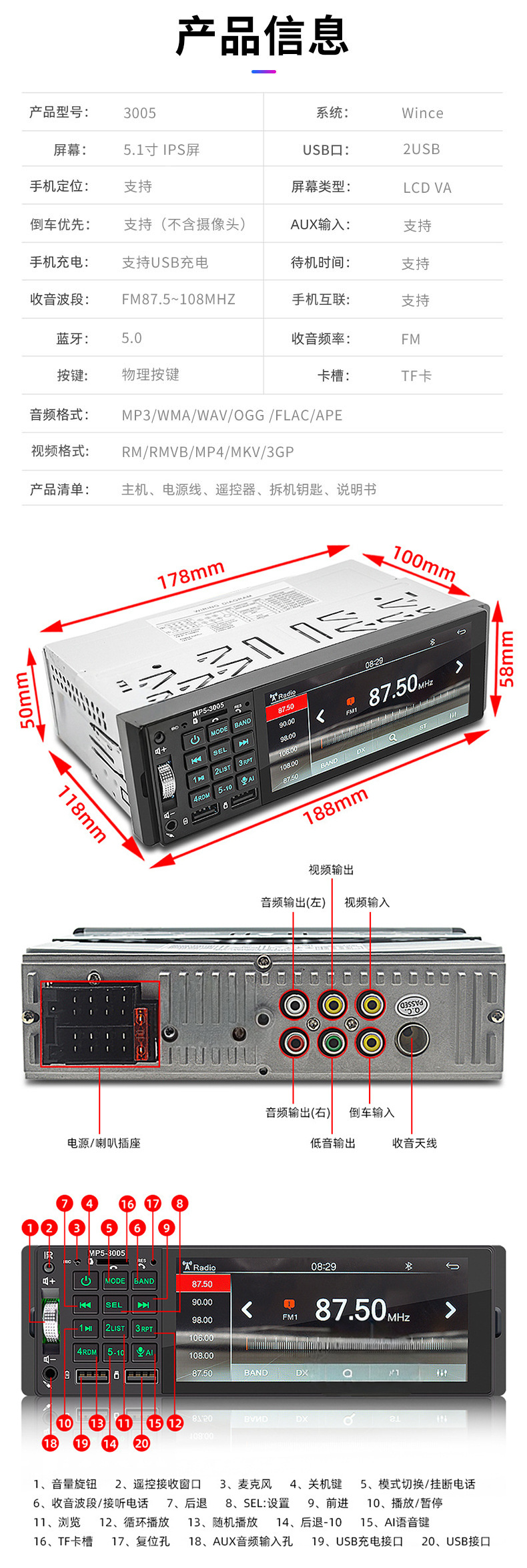 Автомобильный MP5-плеер Carplay, подключение мобильного телефона Apple, экран высокой четкости 5.1inch пикселей, беспроводной MP5-плеер
