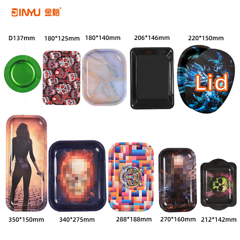 Жестяной поднос для сигарет, металлический поднос для хранения аксессуаров для курения, поднос для табачных сигарет с трансграничным принтом различных стилей