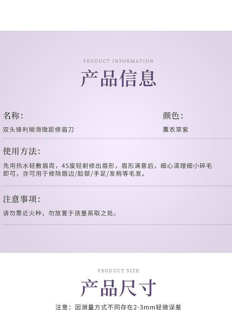 Новый фиолетовый двусторонний триммер для бровей для женщин, специальная бритва с защитной сеткой, триммер для бровей «два в одном» с длинным и коротким лезвием.