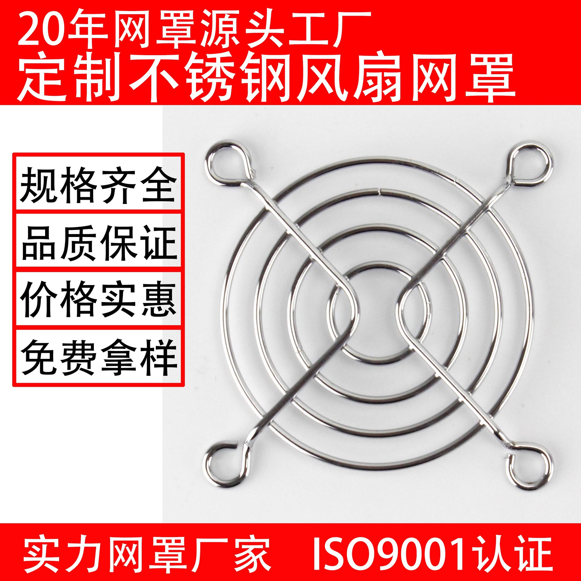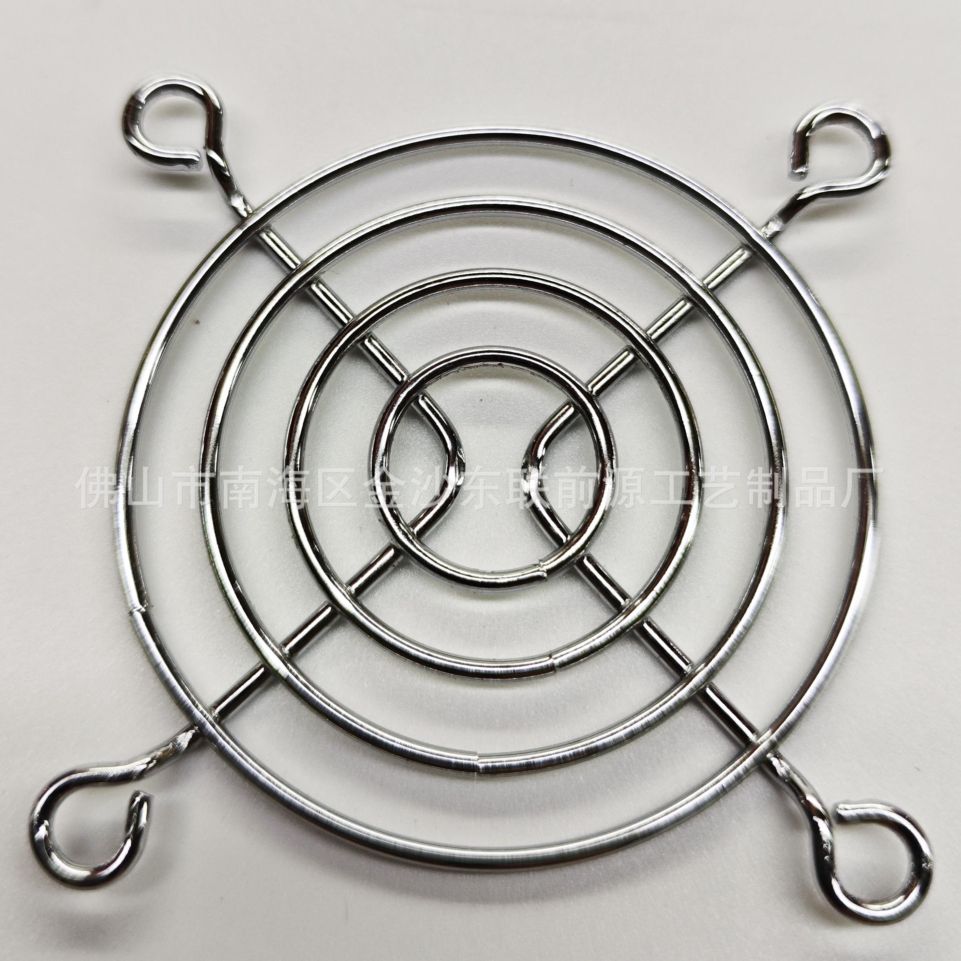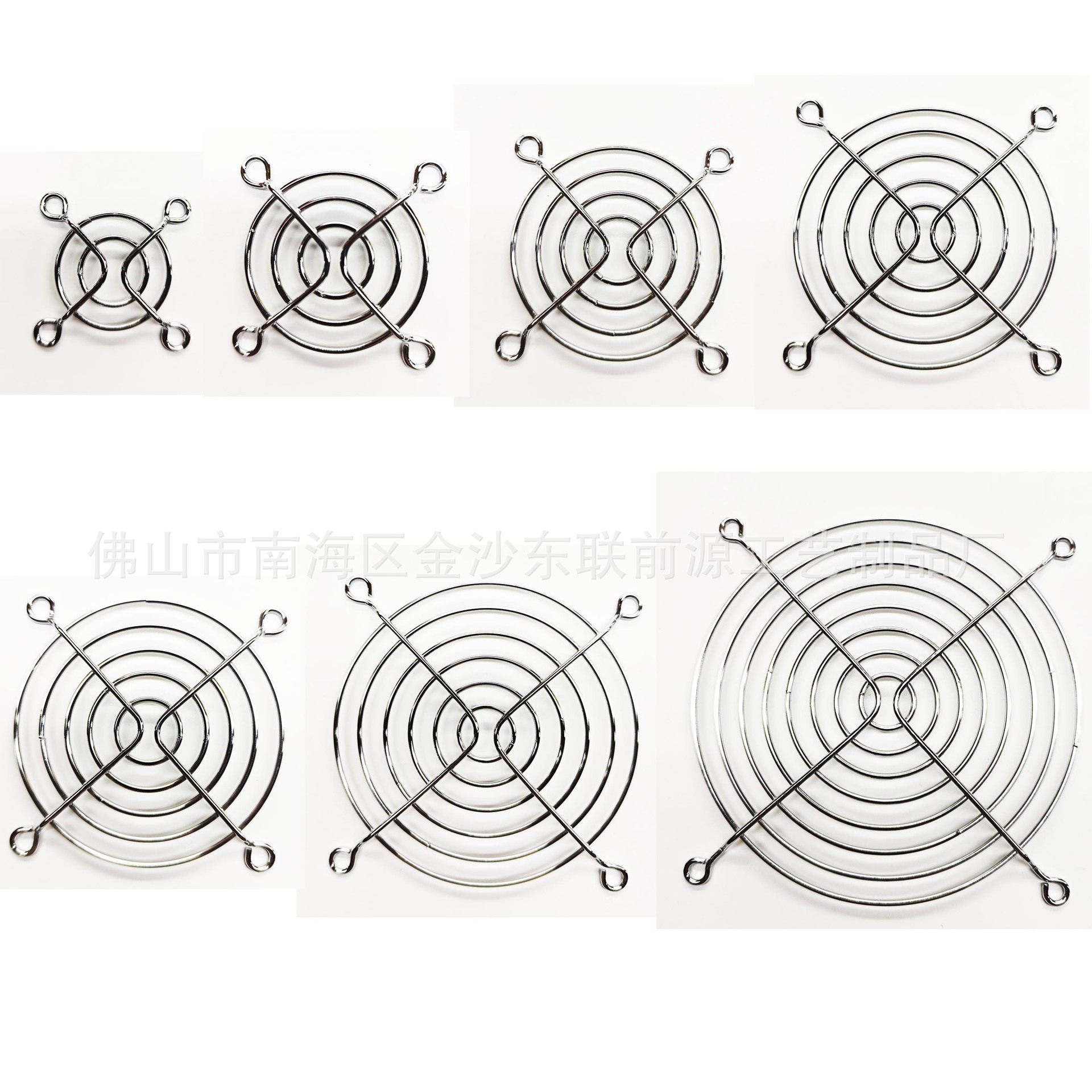 - 公司生产风扇网罩/风机网罩/网架/灯罩/不锈钢网罩/三合一防尘网罩,产品规格从30mm-1000mm,种类规格齐全。表面处理有镀镍镀铬、电泳、喷粉等。月产能为500多万件。