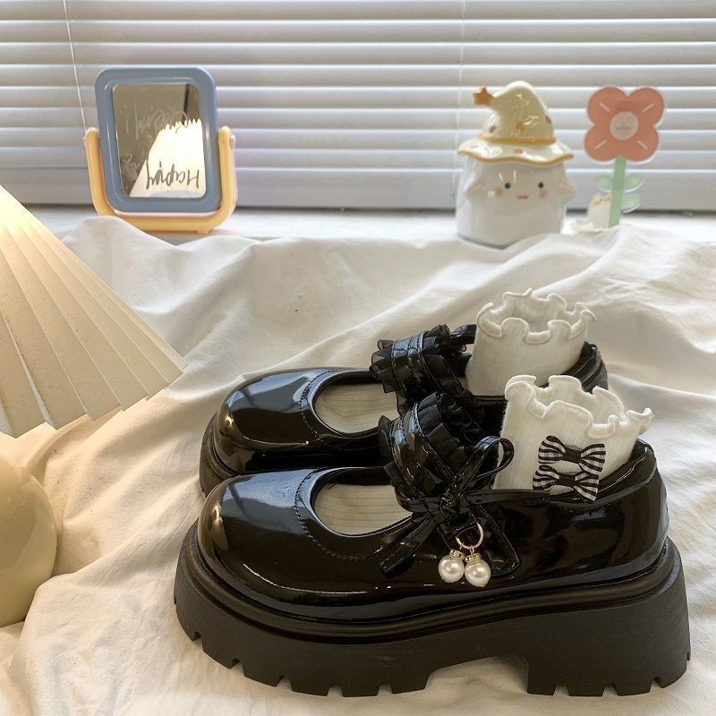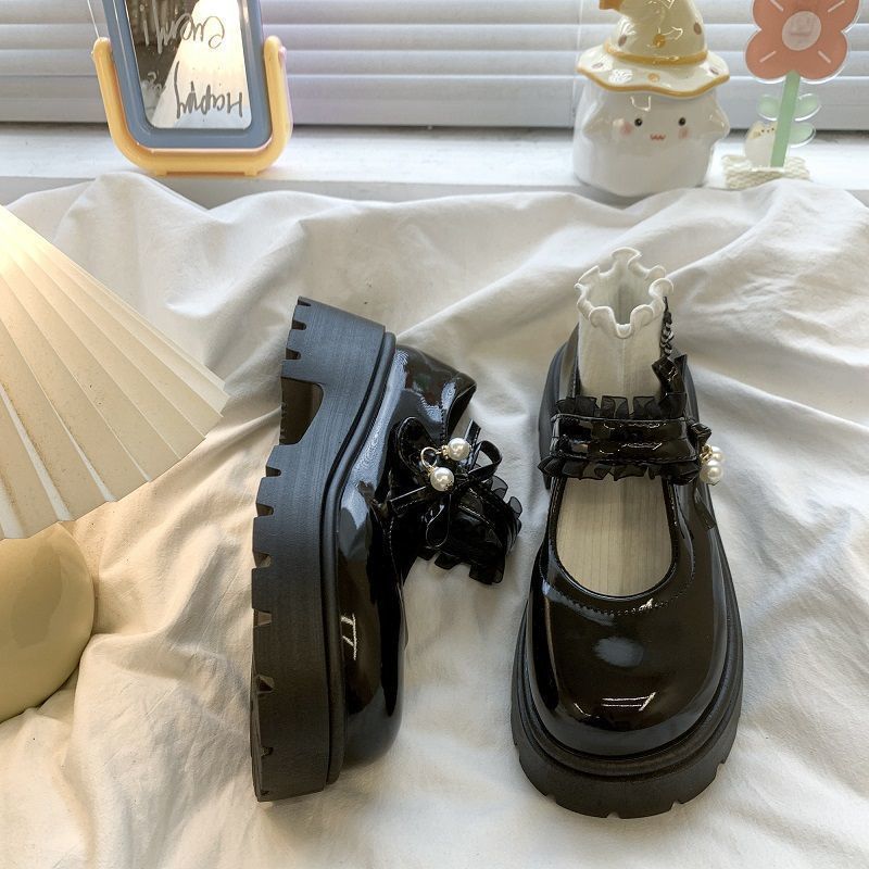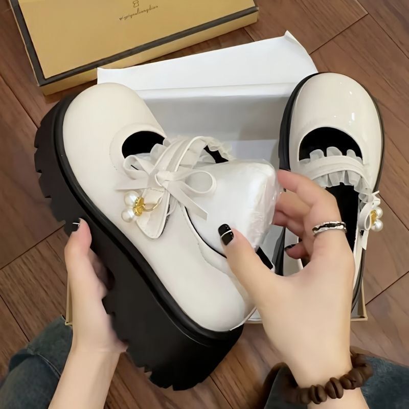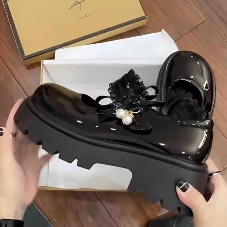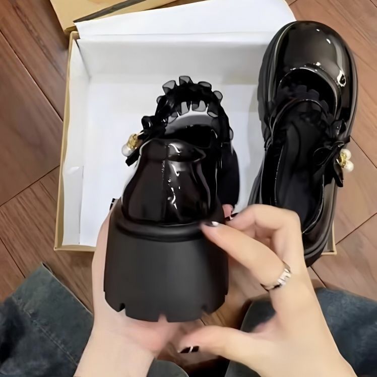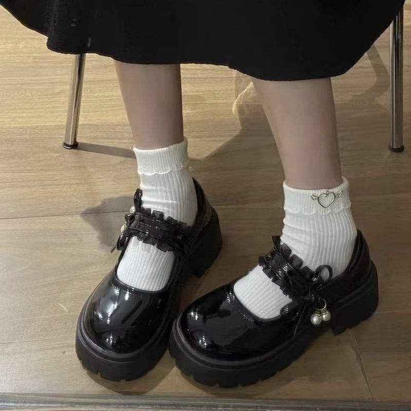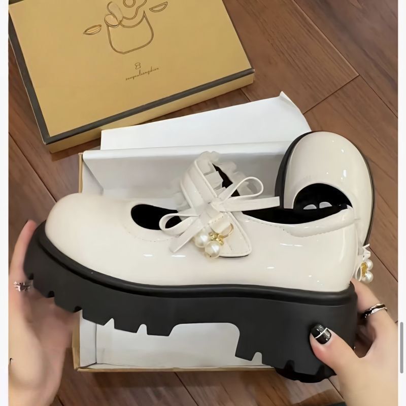 Туфли на среднем каблуке во французском стиле с юбками, маленькие кожаные туфли на толстой подошве в японском стиле для женщин, новые модные туфли Мэри Джейн, увеличивающие рост, 2025 года для женщин.