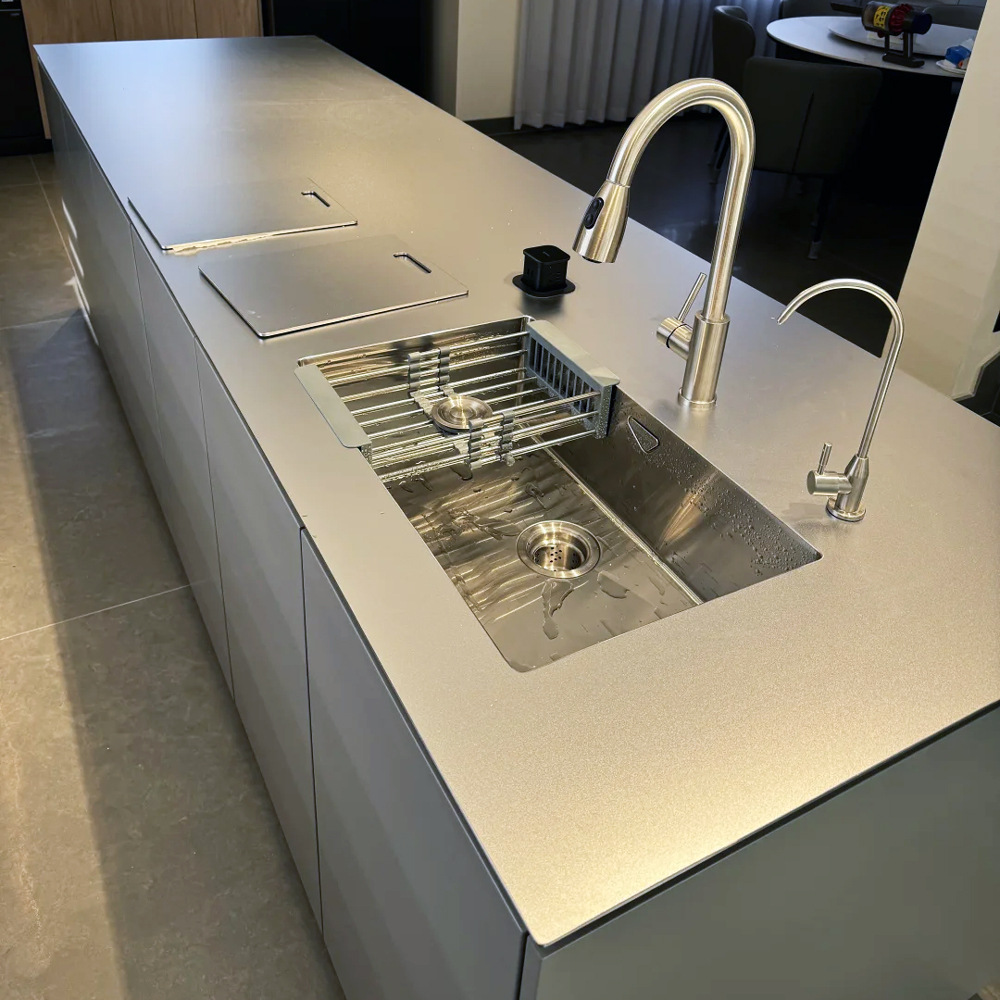 Кухонная мойка из нержавеющей стали 304, устойчивая к царапинам, цельная столешница, встроенный рабочий стол, пескоструйная обработка, случайный узор, матовая поверхность, индивидуальная настройка