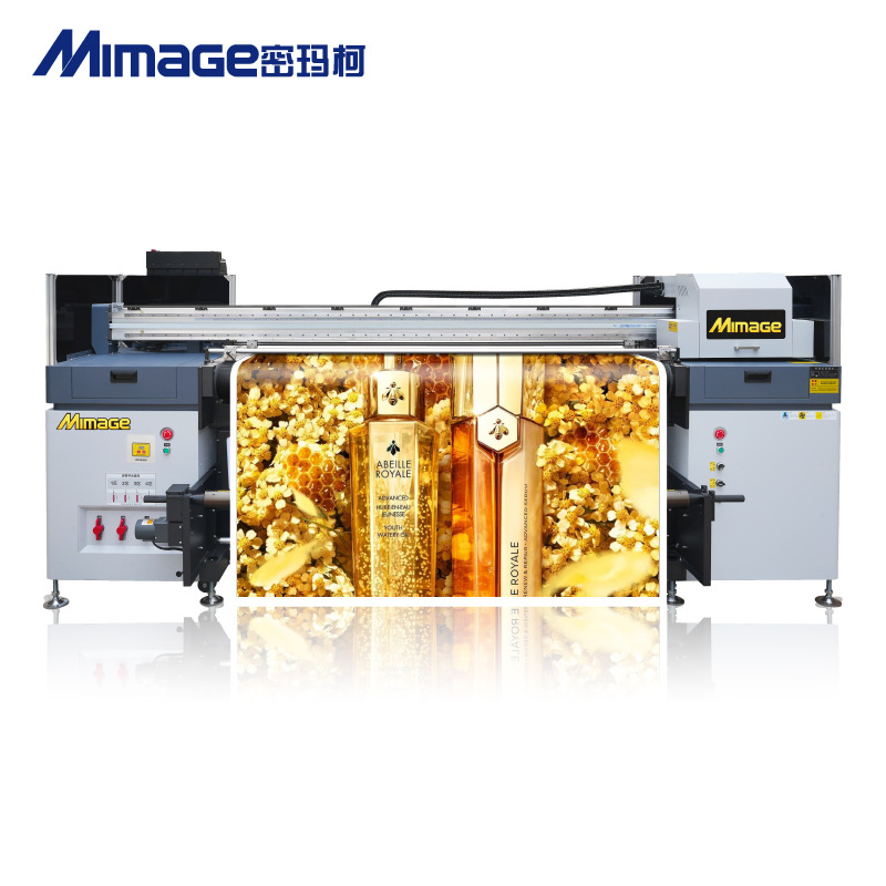 MIMAGE высокоточный цветной белый сетчатый ремень УФ-роликовый высокоскоростной принтер для мягкой пленки для стекла 1.8m двойные головки