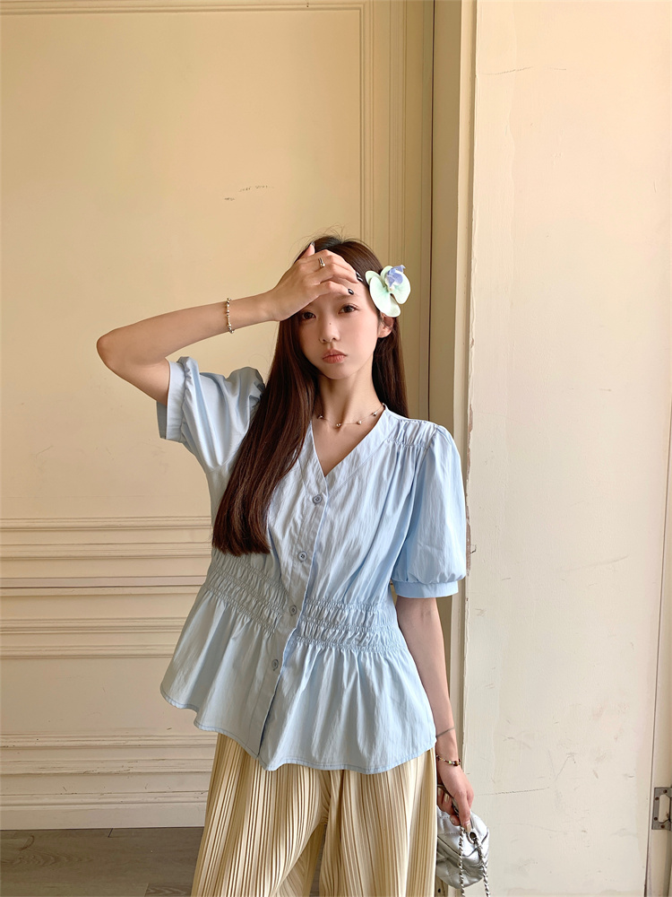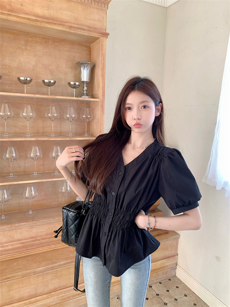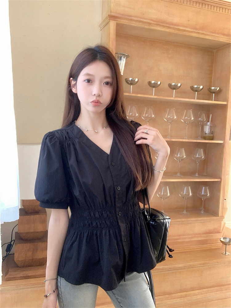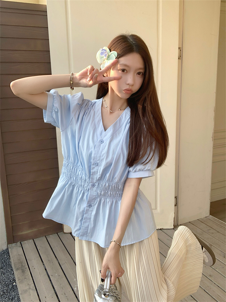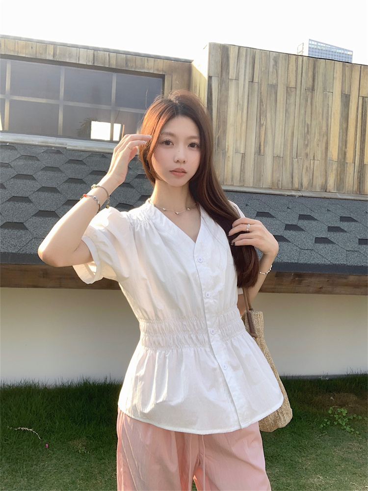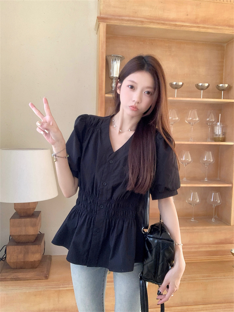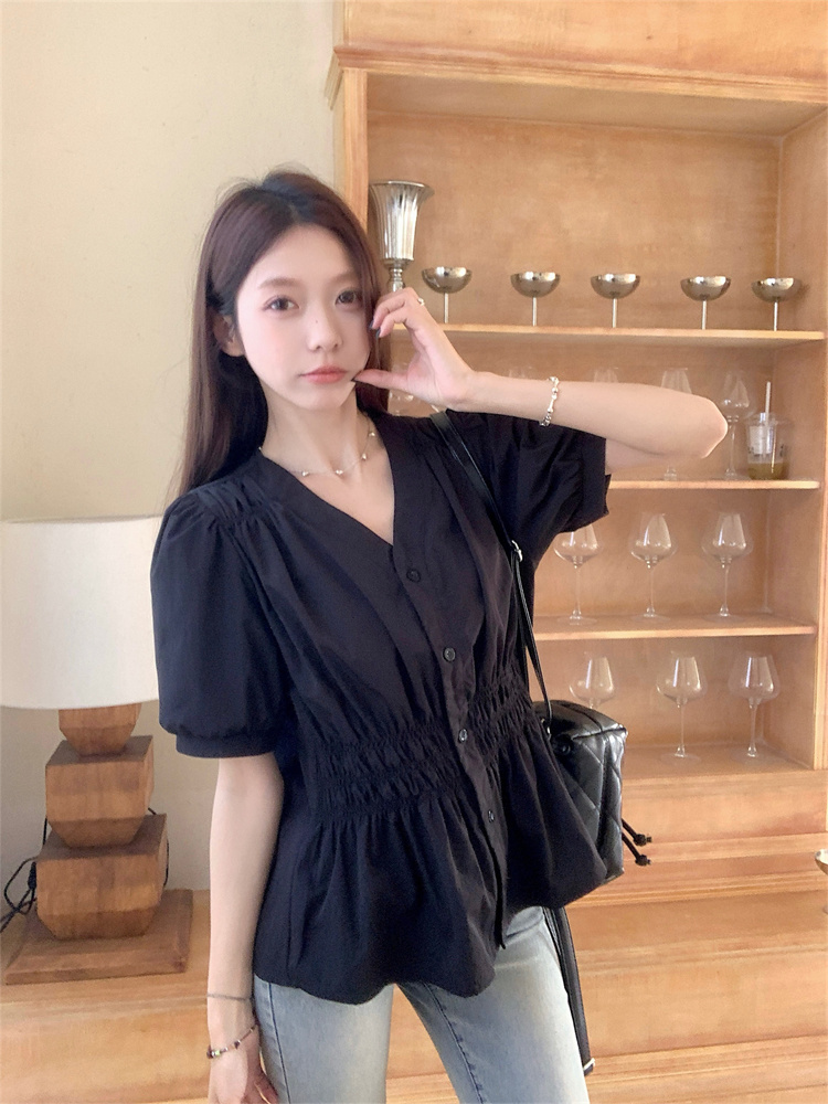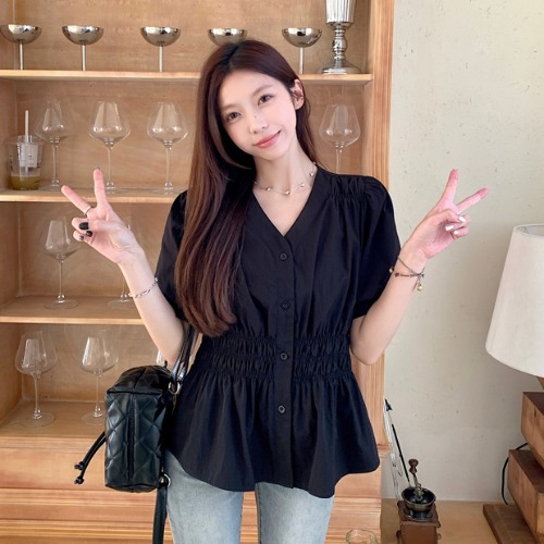 Женская рубашка больших размеров с французским v-образным вырезом на талии и короткими рукавами для женщин, лето 2025, топ для похудения, закрывающий живот