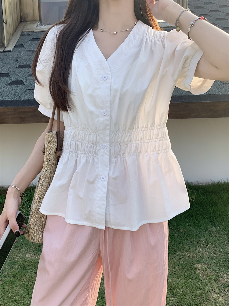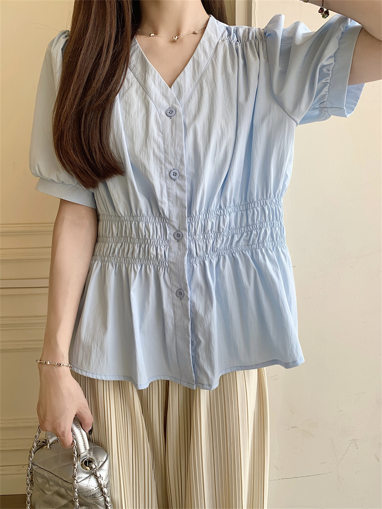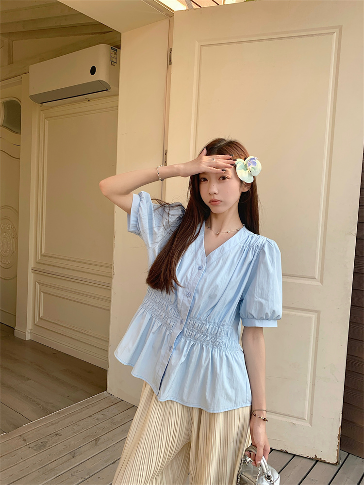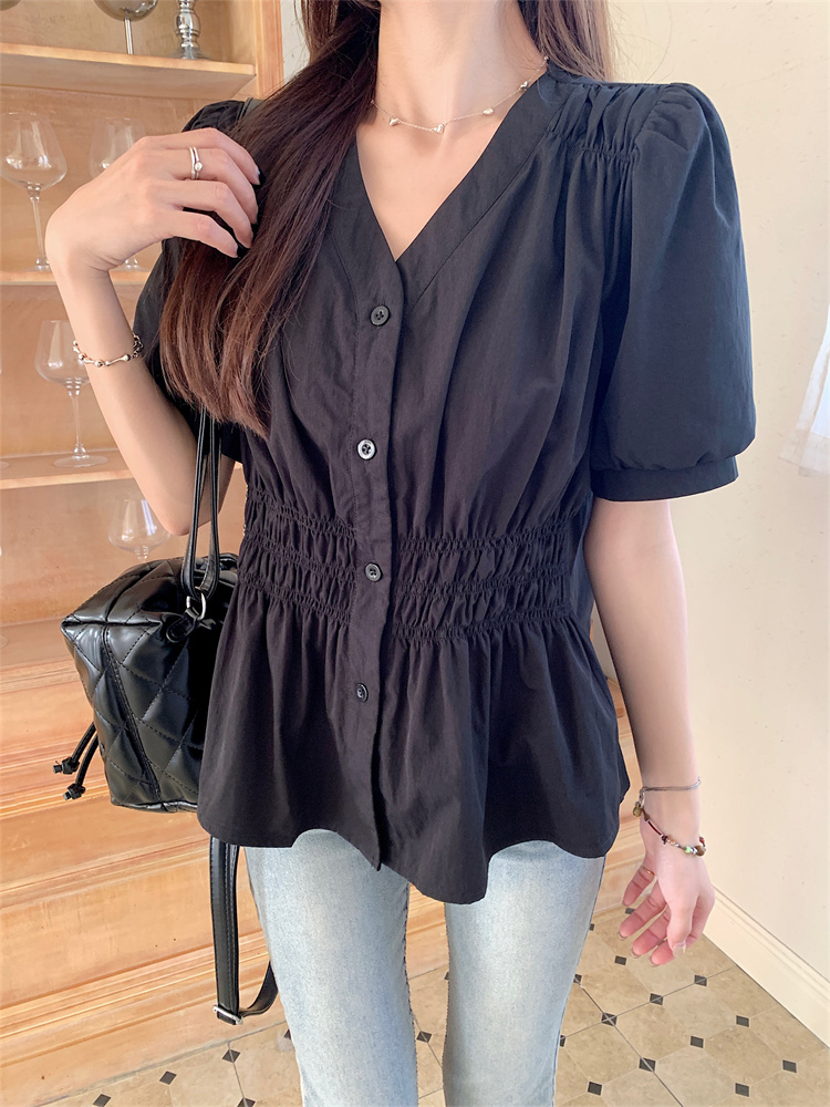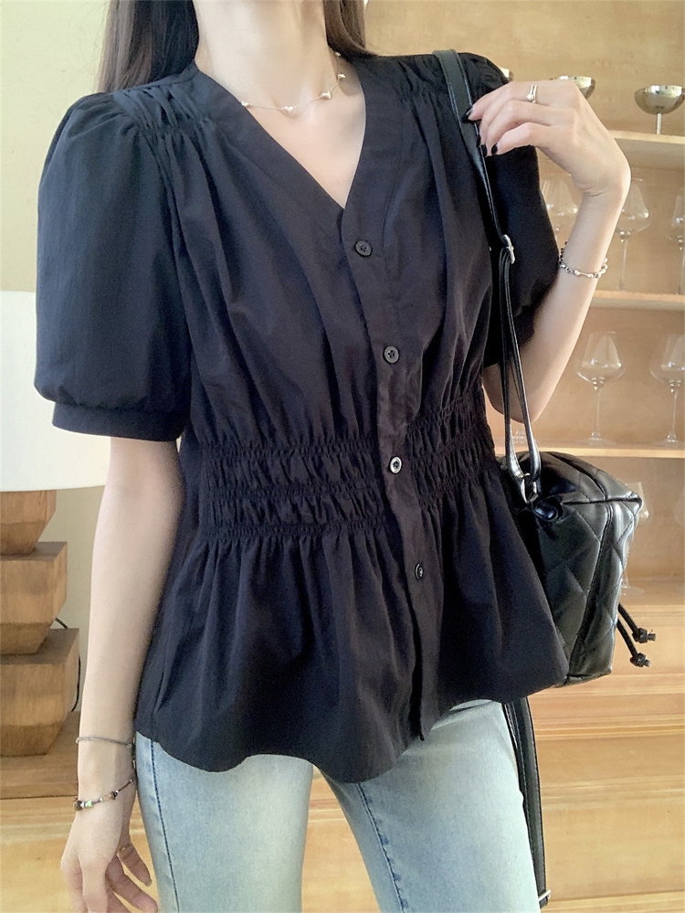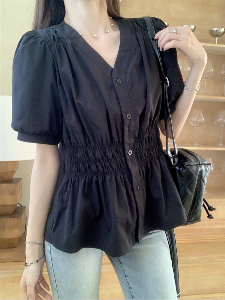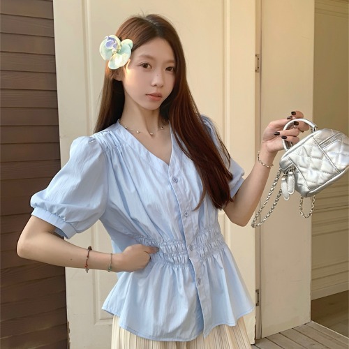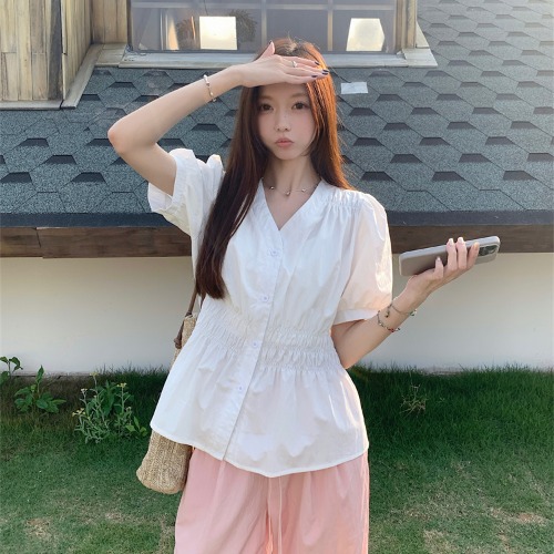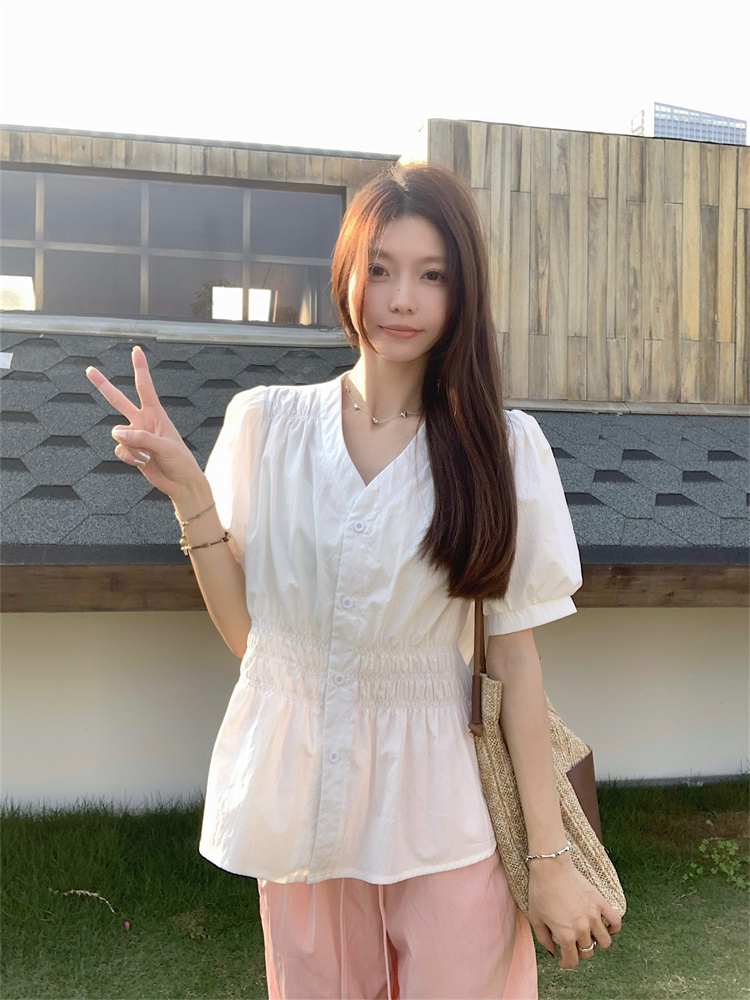 Женская рубашка больших размеров с французским v-образным вырезом на талии и короткими рукавами для женщин, лето 2025, топ для похудения, закрывающий живот