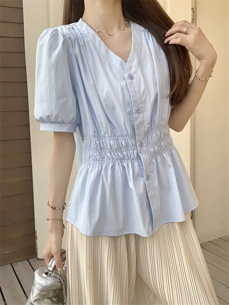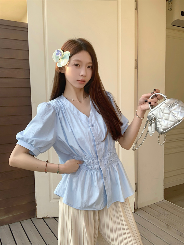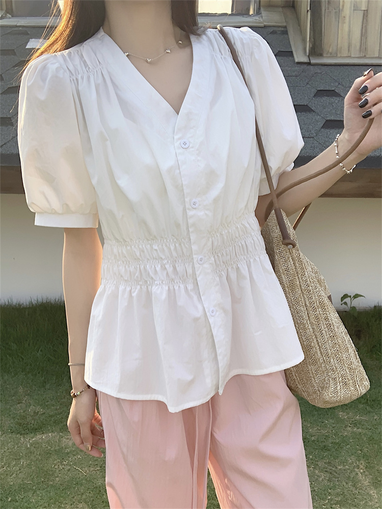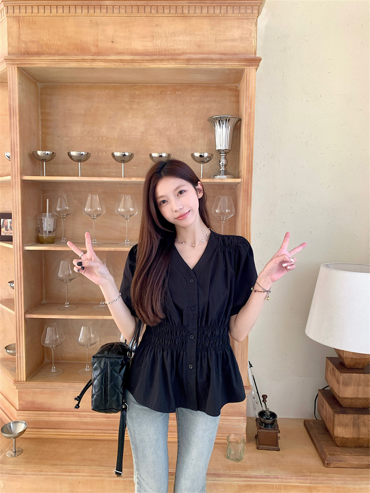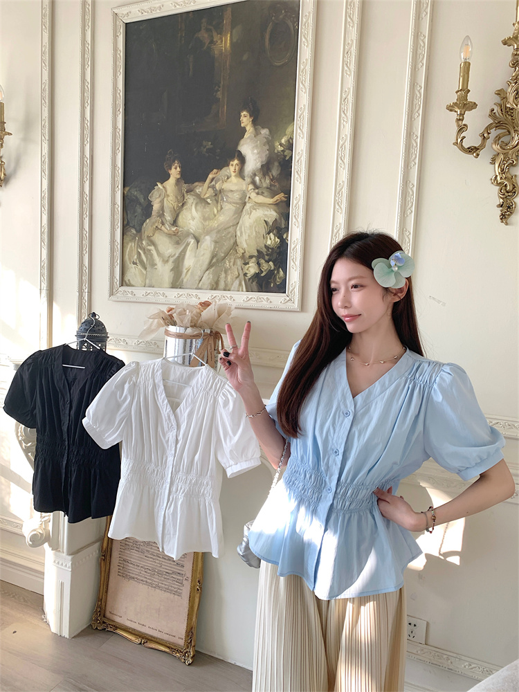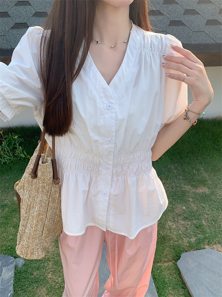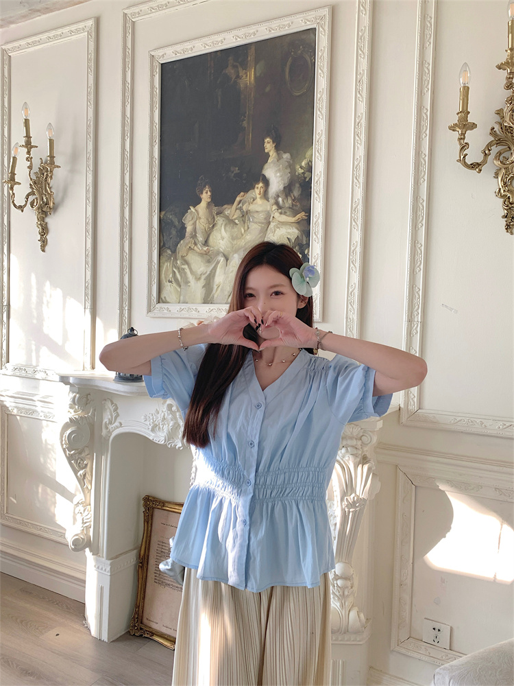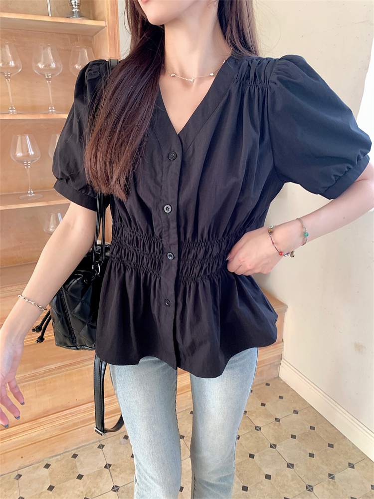 Женская рубашка больших размеров с французским v-образным вырезом на талии и короткими рукавами для женщин, лето 2025, топ для похудения, закрывающий живот