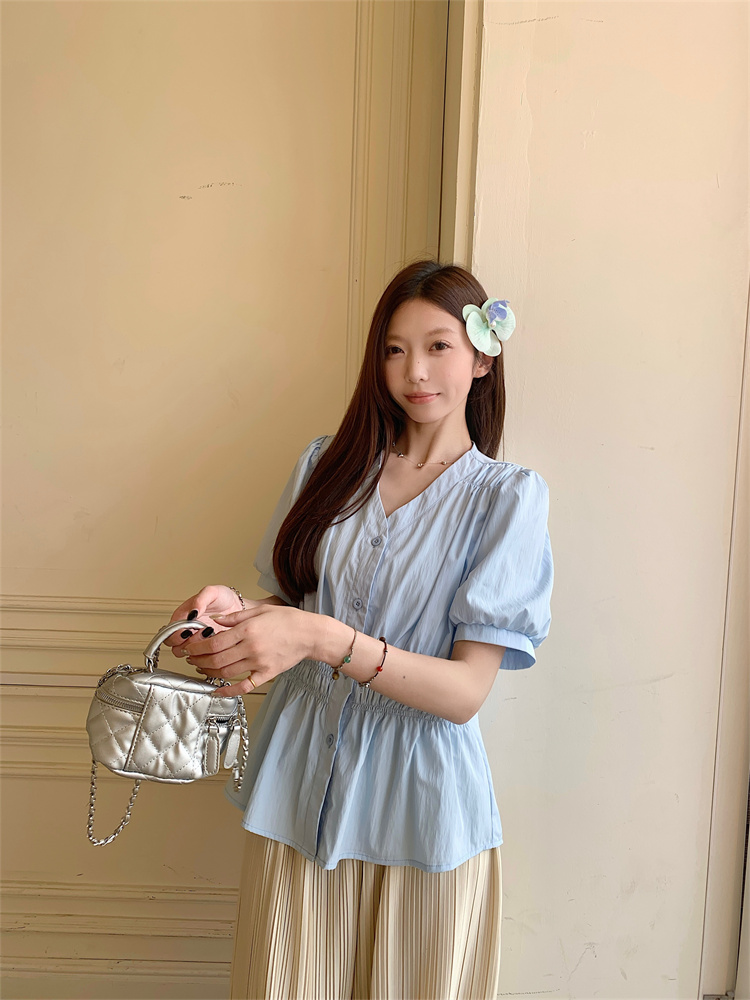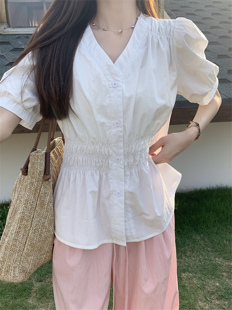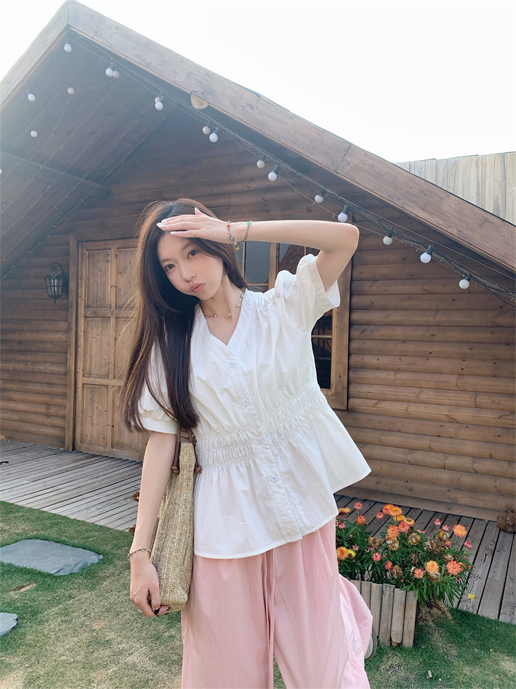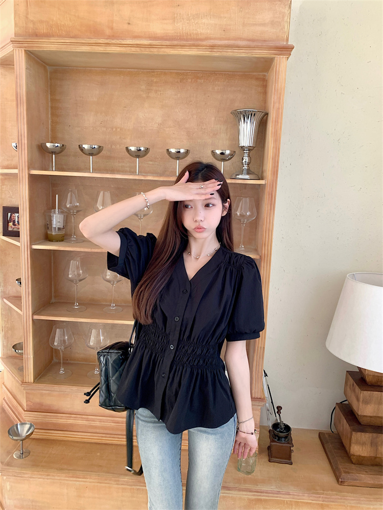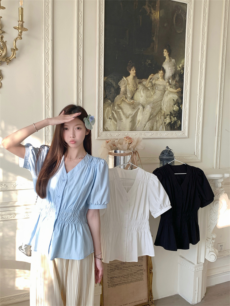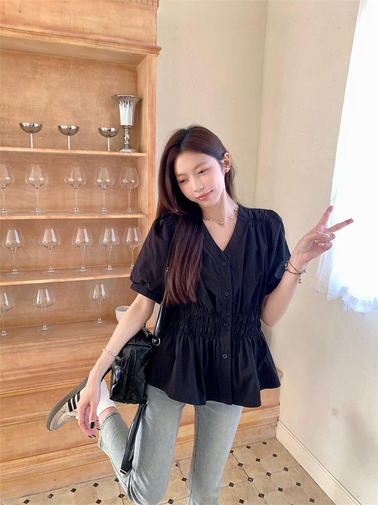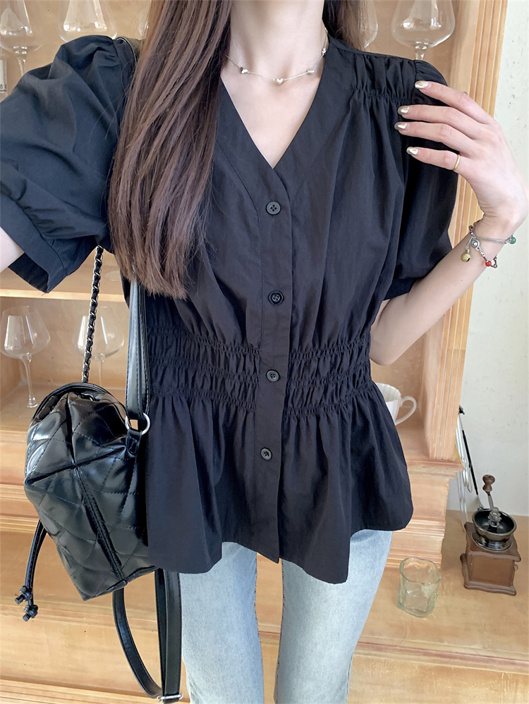 Женская рубашка больших размеров с французским v-образным вырезом на талии и короткими рукавами для женщин, лето 2025, топ для похудения, закрывающий живот