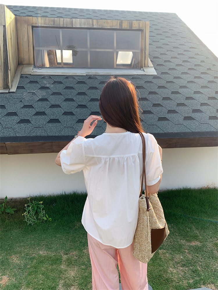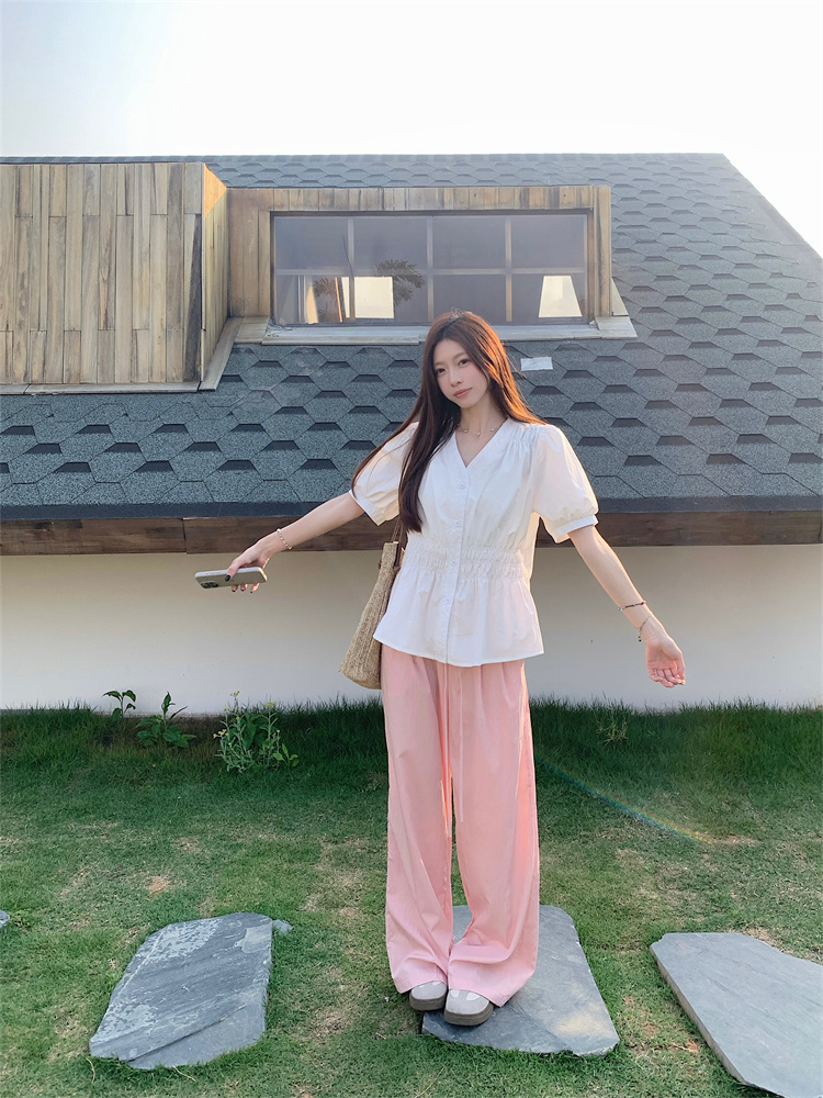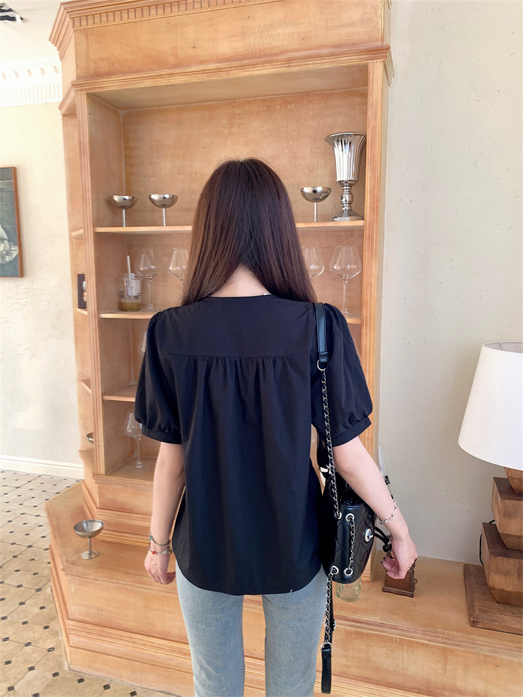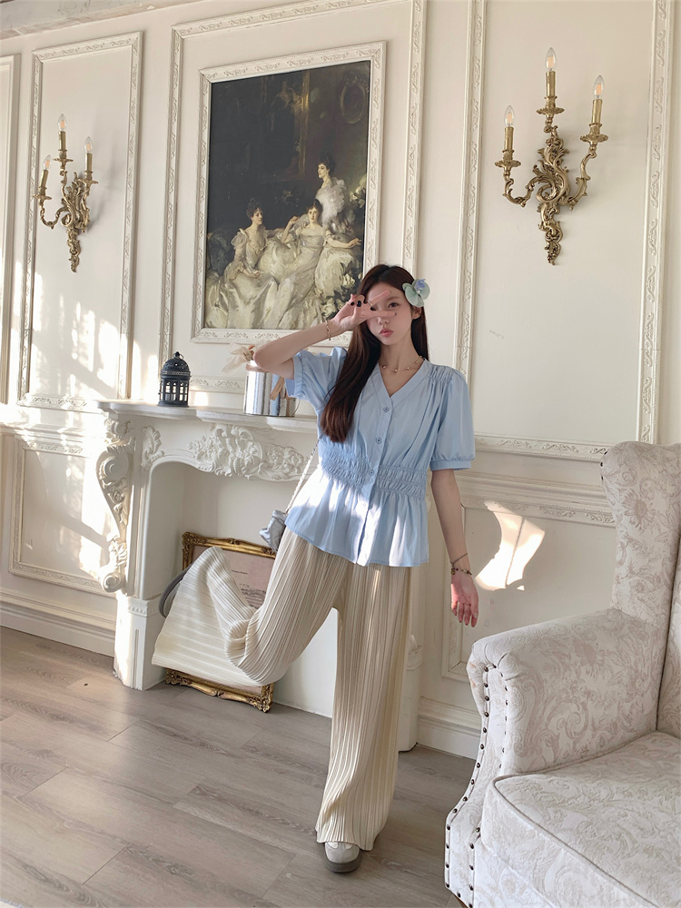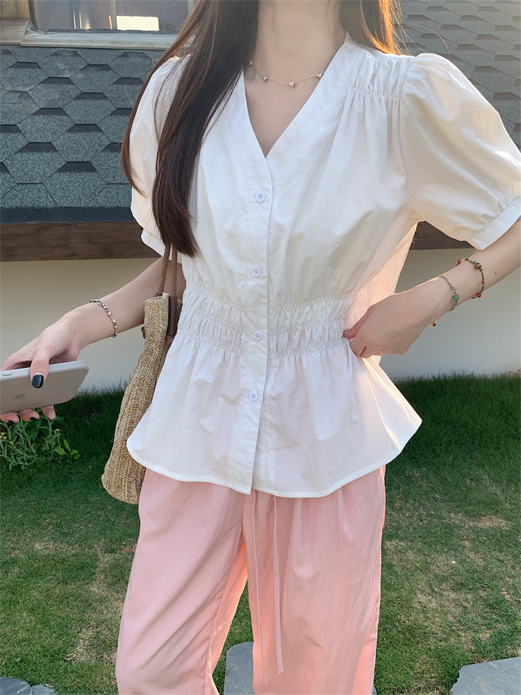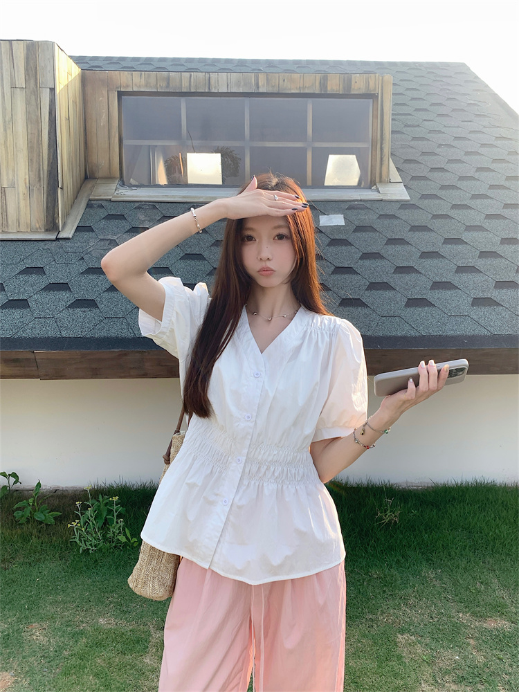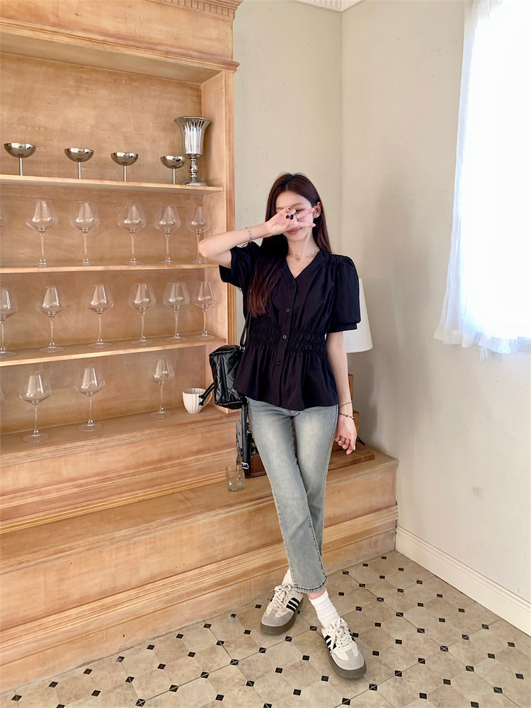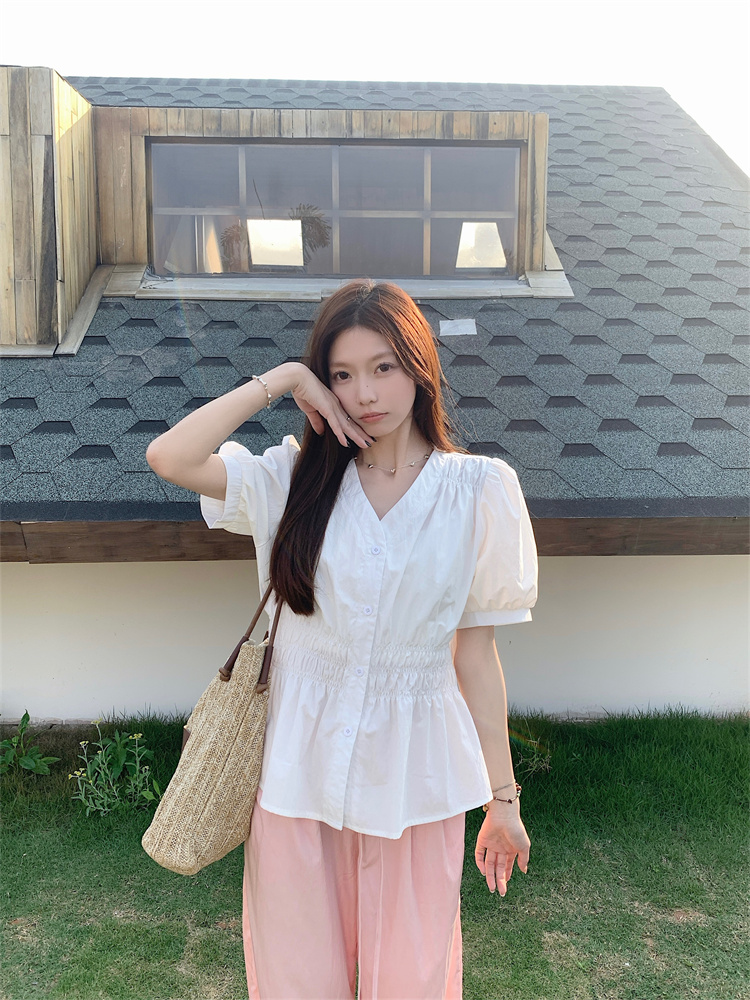 Женская рубашка больших размеров с французским v-образным вырезом на талии и короткими рукавами для женщин, лето 2025, топ для похудения, закрывающий живот