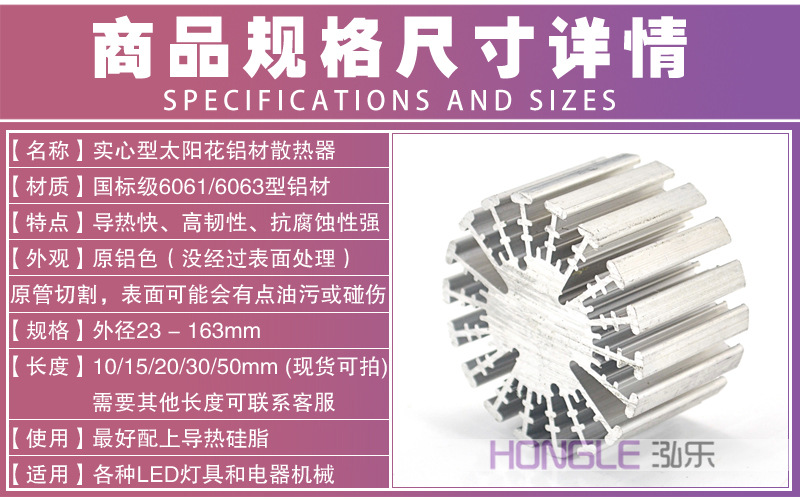 Светодиодная лампа, радиатор, подсолнух, твердый рассеиватель тепла, круглый сплав, алюминий, COB, источник света, теплопровод, аксессуары для ламп