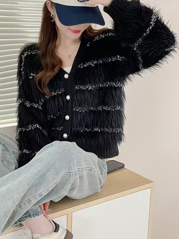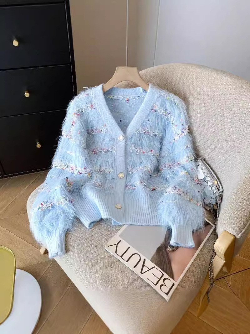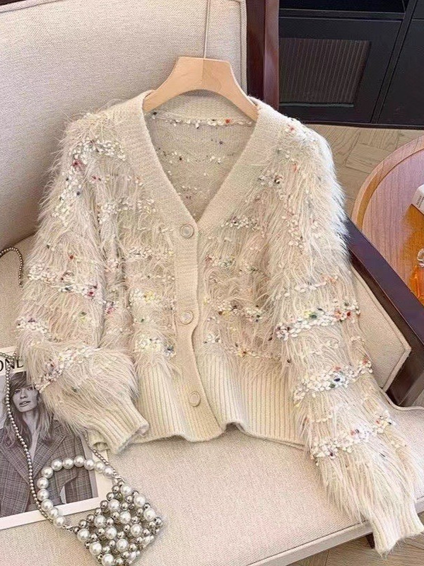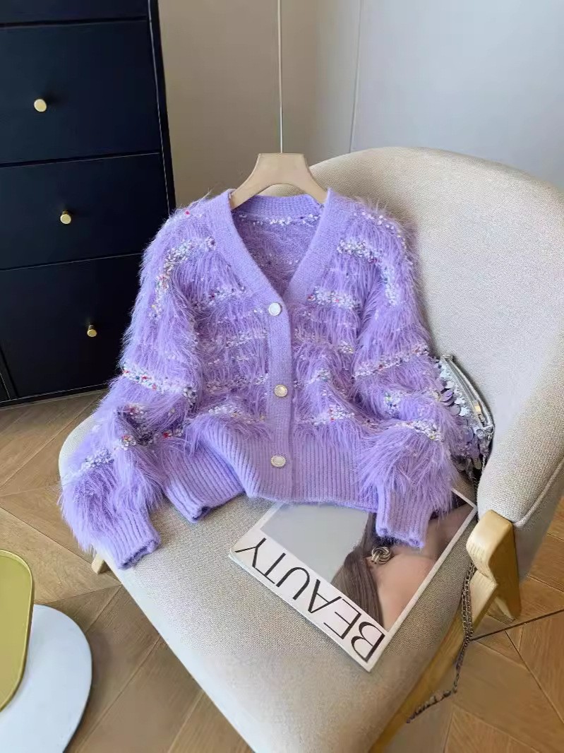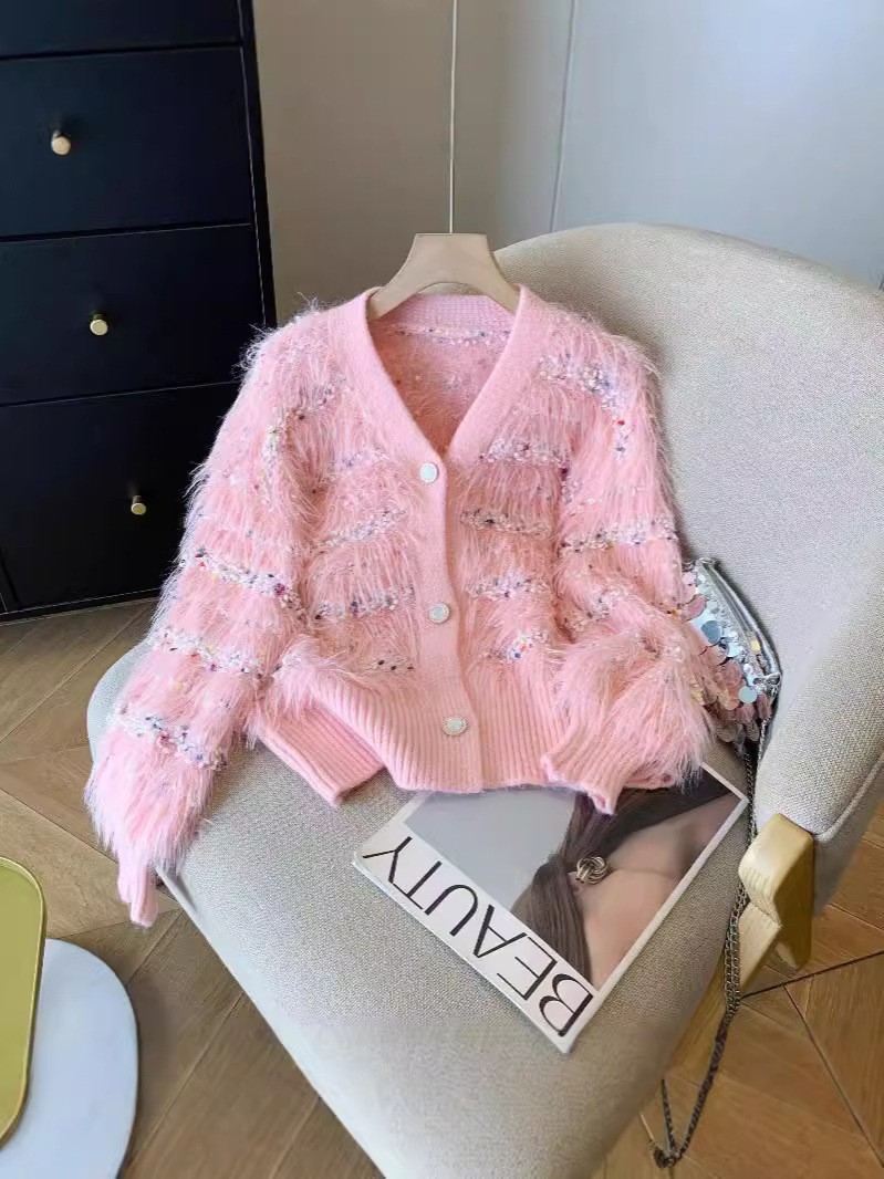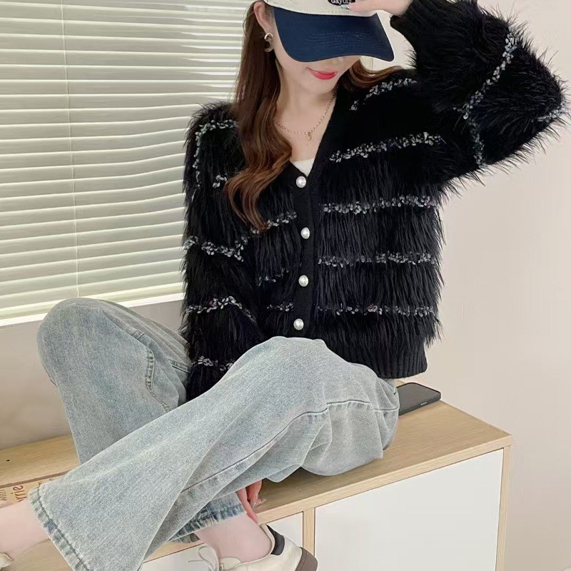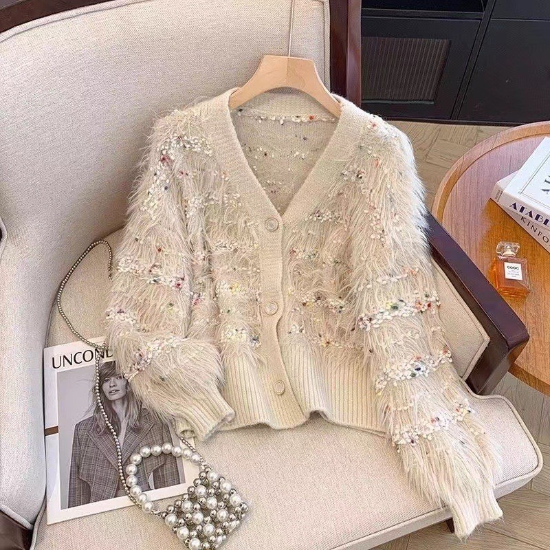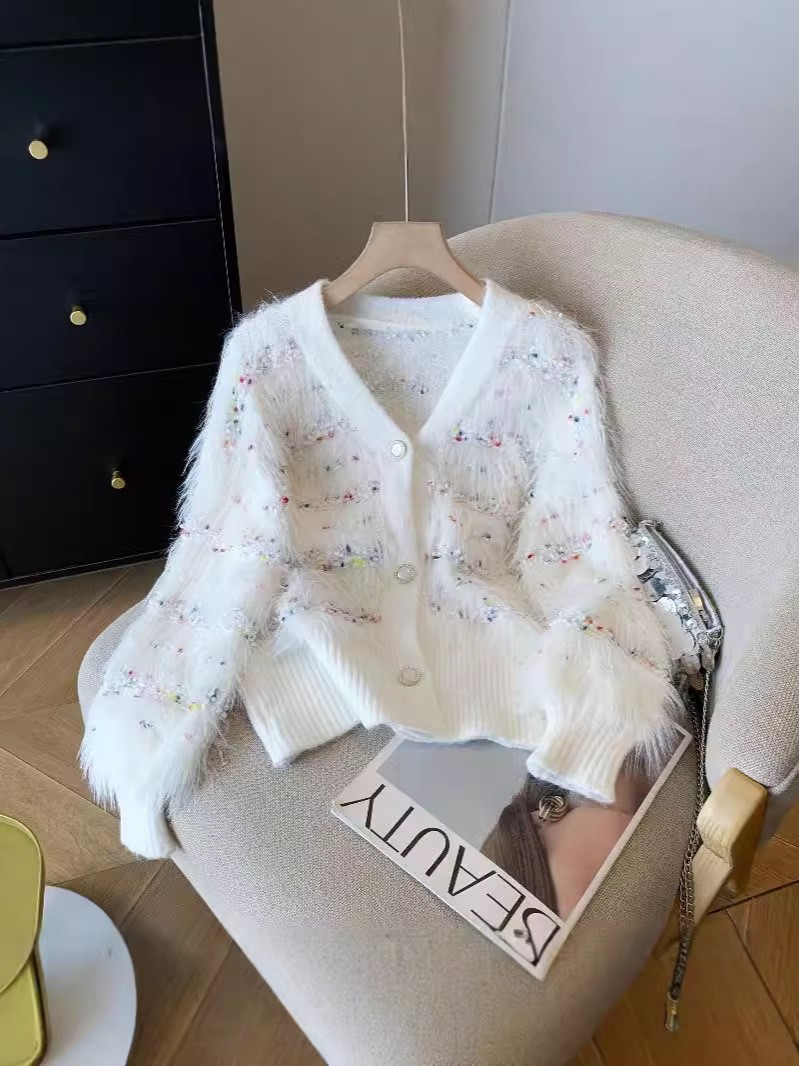 Женская трикотажная куртка в горошек из искусственного норкового бархата на осень и зиму, свободный и ленивый кардиган с v-образным вырезом, модный мягкий восковой трикотаж