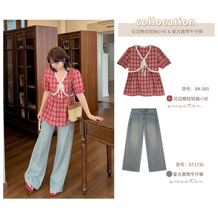 Shuangtian 2025, новый большой размер, женский летний высококачественный топ с короткими рукавами в клетку, мм 100kg мм, BK065
