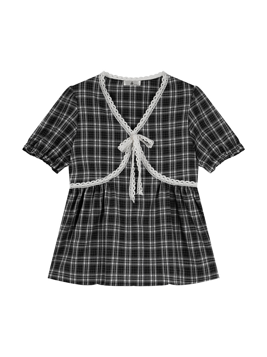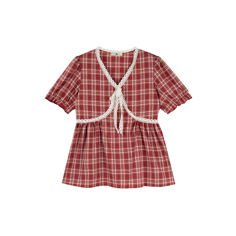 很可爱的一款泡泡袖格子小衫