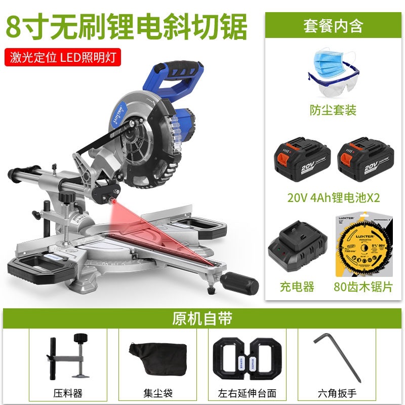 8inch Углообразная пила с тягой для литиевой батареи, одна батарея и один заряд; 8inch торцовочная пила с литиевой батареей, одна батарея и один заряд + пила по дереву; 8inch торцовочная пила с тягой для литиевой батареи, одна батарея и один заряд + алюминиевое пильное полотно; 8inch торцовочная пила с литиевой батареей, одна батарея, одно зарядное устройство + кронштейн; 8inch Угловая пила с тягой для литиевой батареи, двумя батареями и одним зарядным устройством; 8inch торцовочная пила с литиевой батареей, две батареи и одно зарядное устройство + пила по дереву; 8inch торцовочная пила с литиевой батареей, две батареи и одно зарядное устройство + алюминиевое пильное полотно; 8inch торцовочная пила с литиевой батареей, две батареи, одно зарядное устройство + кронштейн