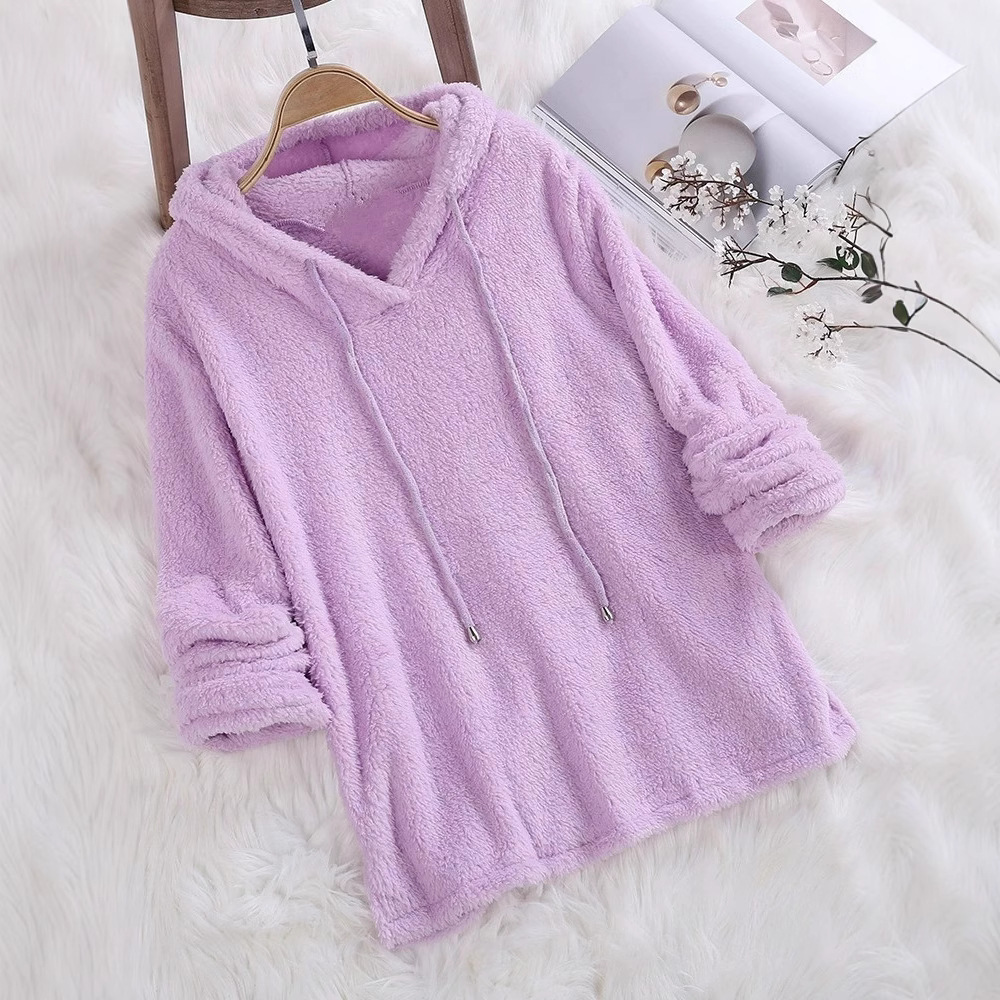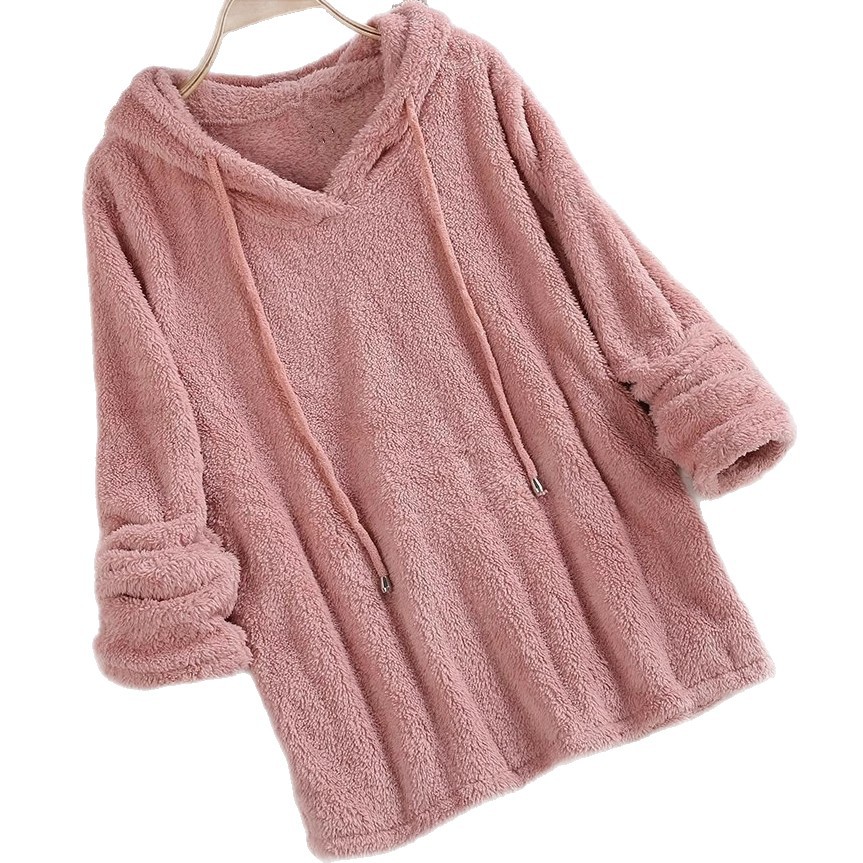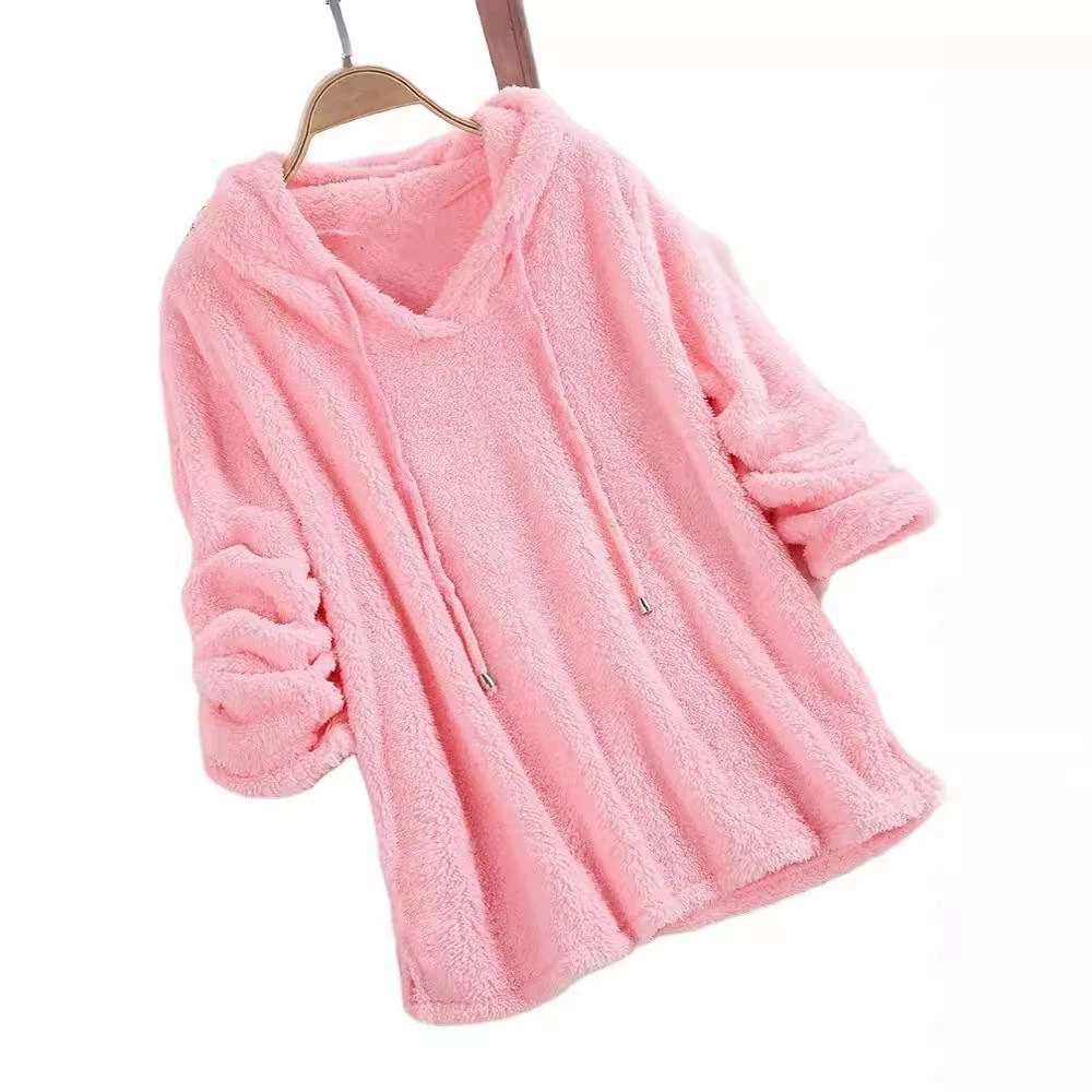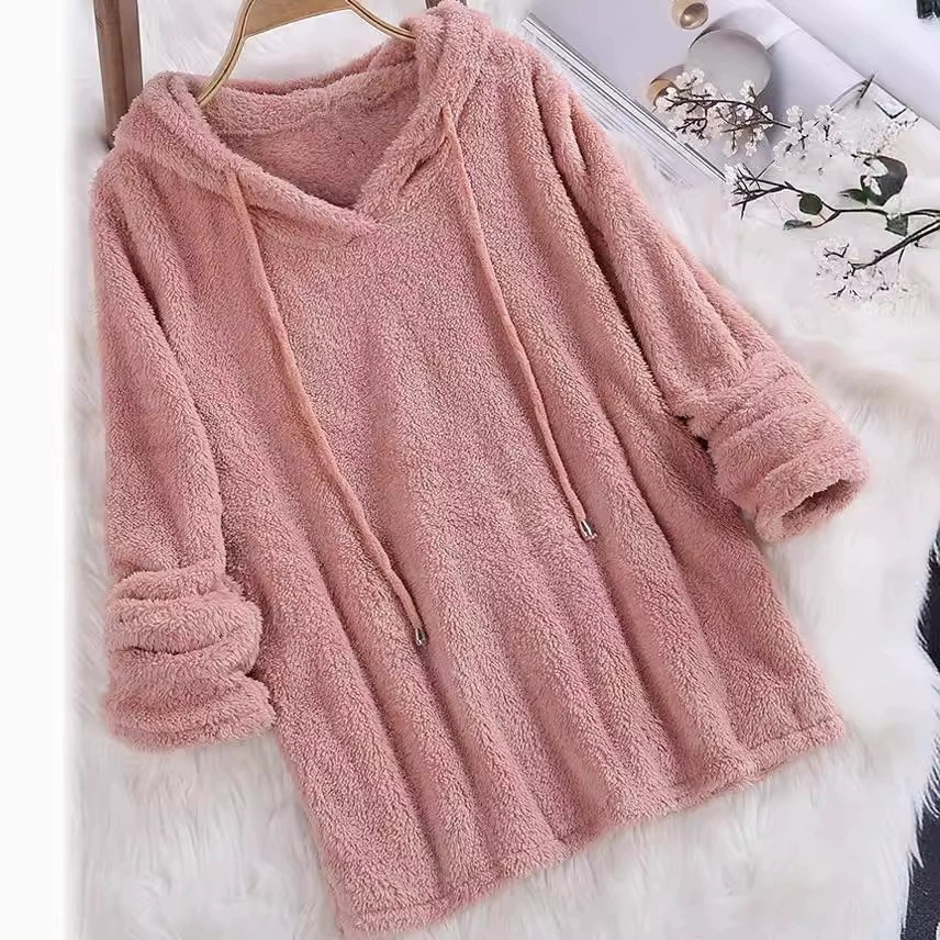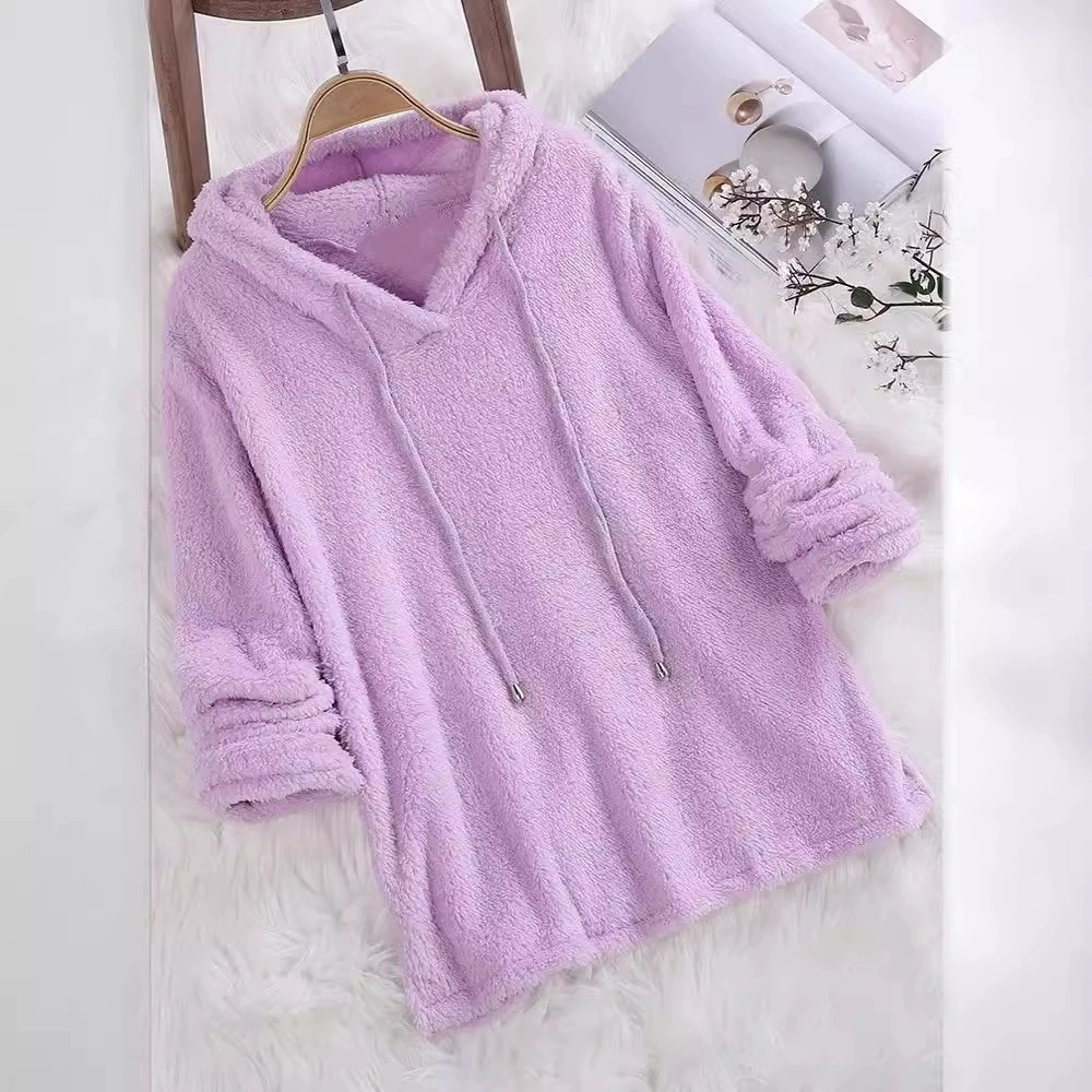 2024 Европейская и американская Amazon, осенне-зимняя популярная однотонная плюшевая двусторонняя плюшевая толстовка с длинными рукавами и капюшоном для женщин