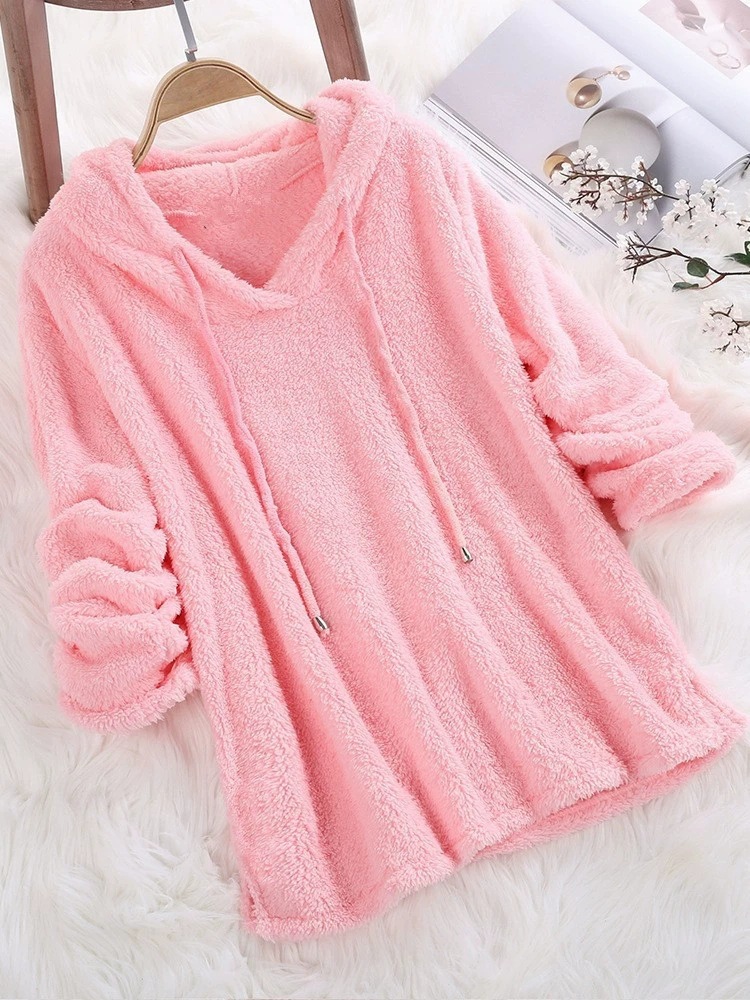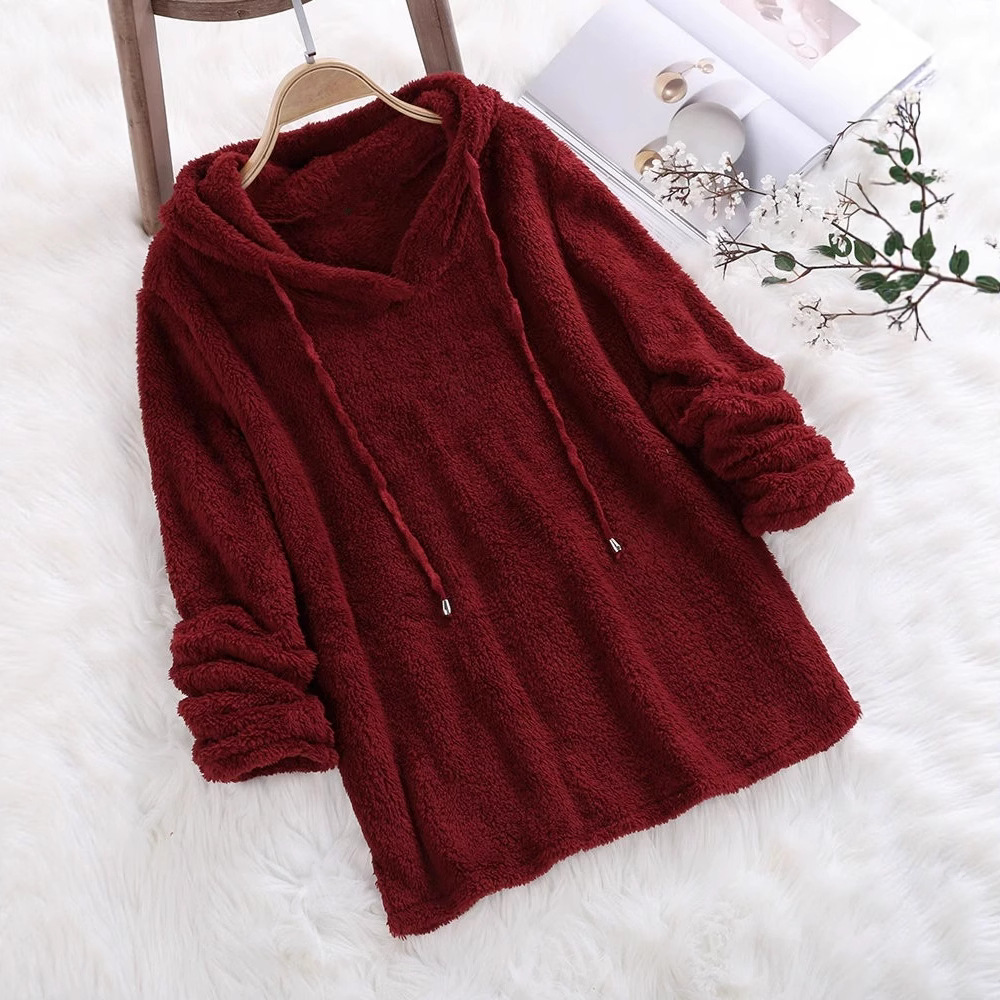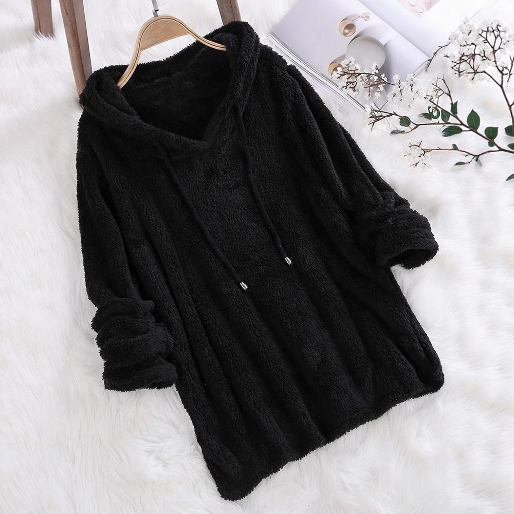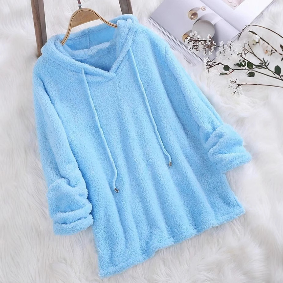 2024 Европейская и американская Amazon, осенне-зимняя популярная однотонная плюшевая двусторонняя плюшевая толстовка с длинными рукавами и капюшоном для женщин