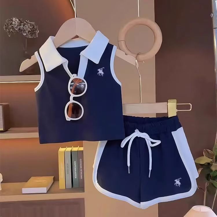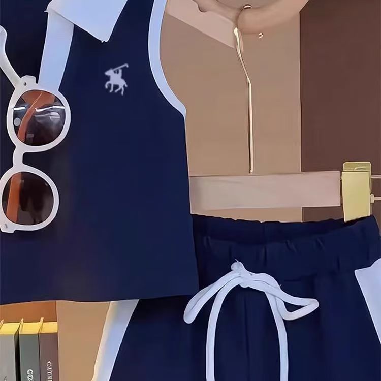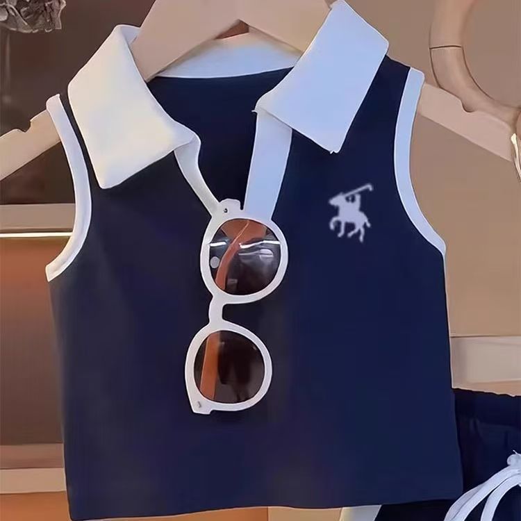 Детский модный спортивный костюм-поло без рукавов, новый стиль преппи 2025 года, короткий двухкомпонентный комплект
