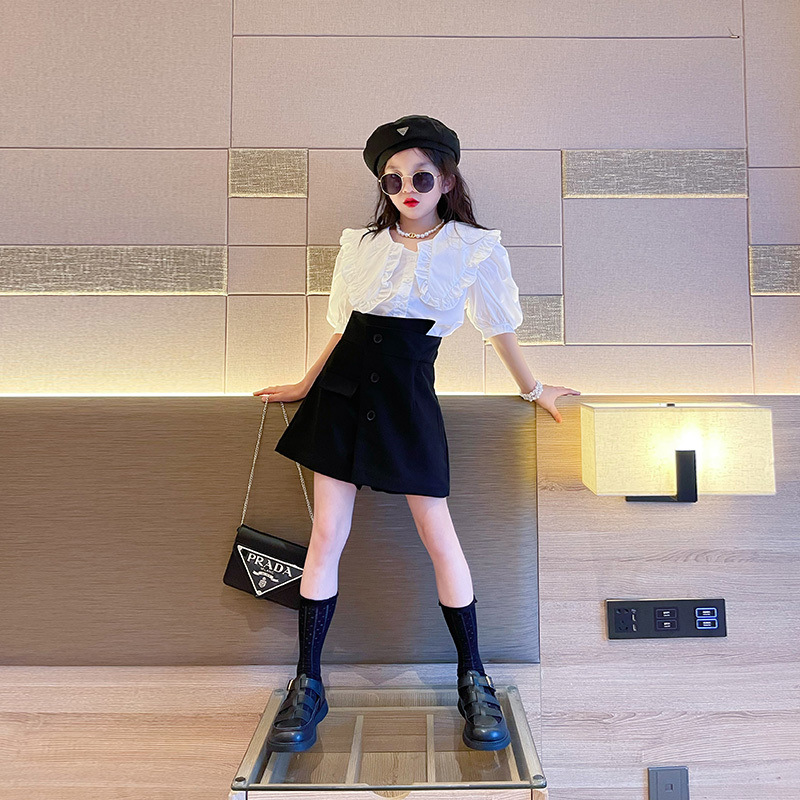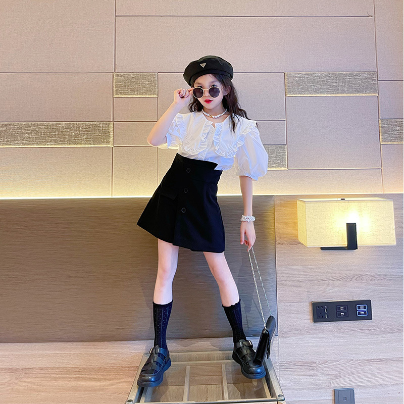 Летний костюм для девочек, юбка, новая модная летняя детская юбка среднего и большого размера для девочек, детская одежда с короткими рукавами