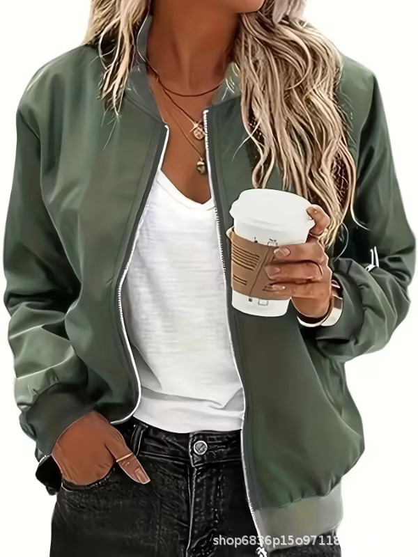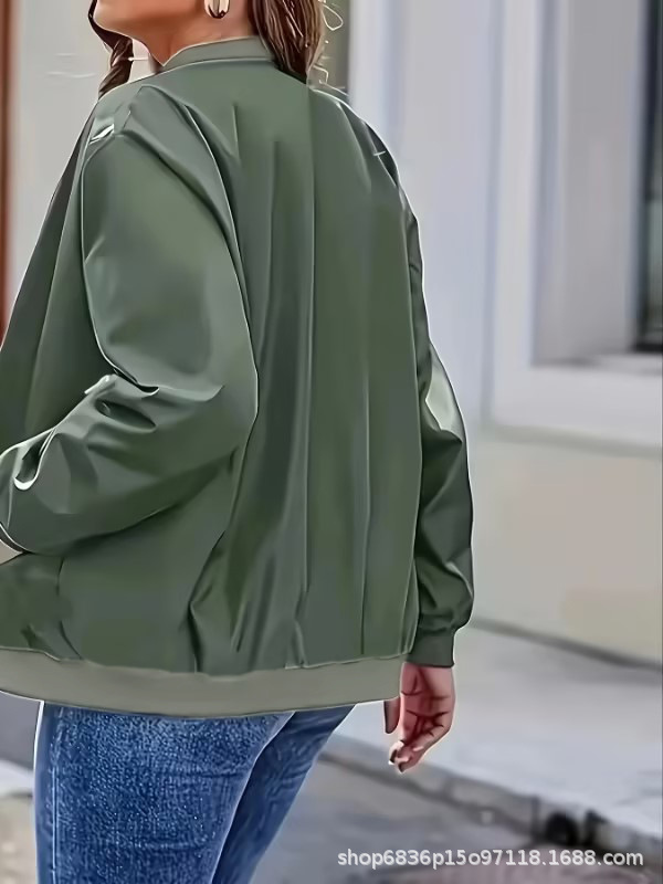 Новая модная однотонная куртка на молнии, повседневная одежда больших размеров для женщин, оптовая продажа для внешней торговли, осень-зима