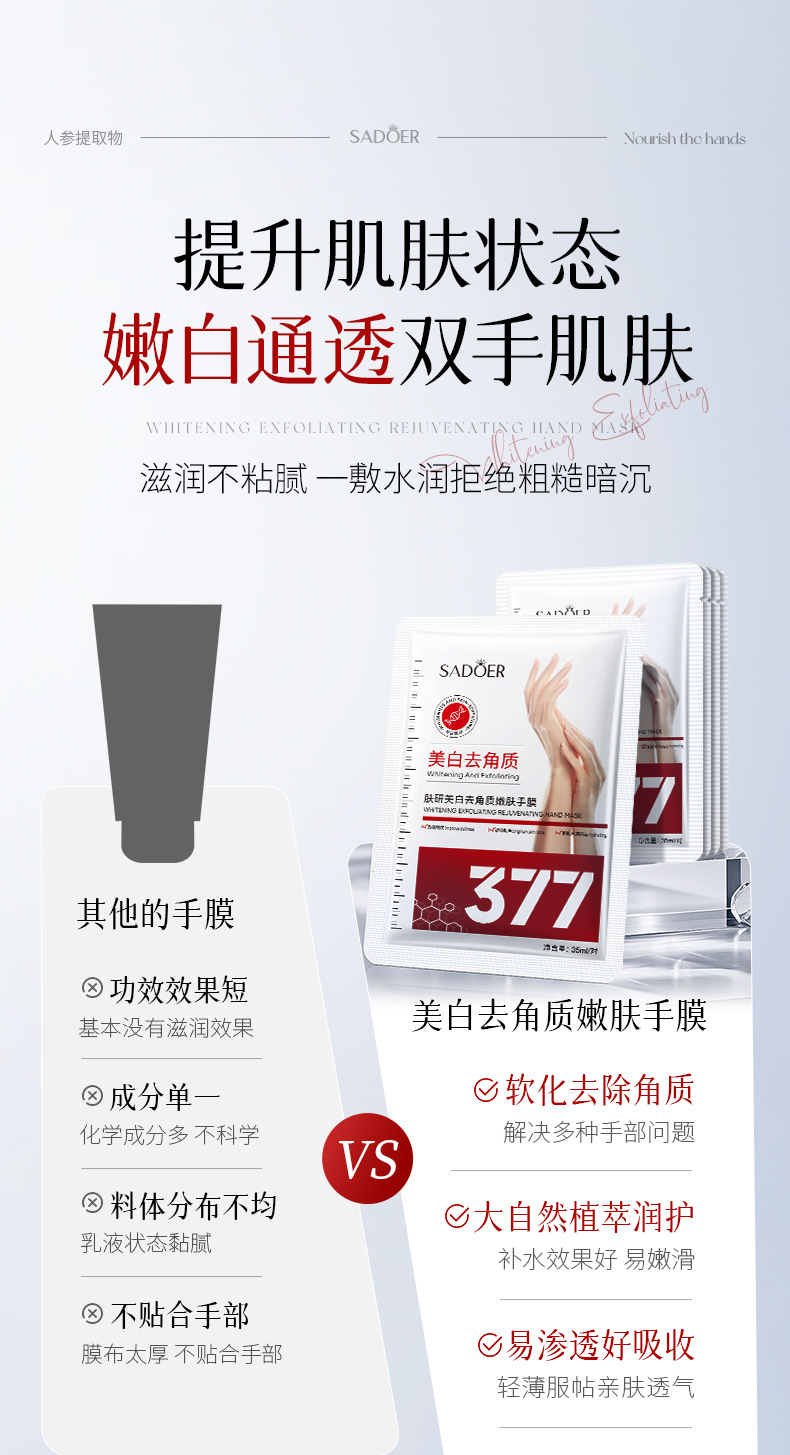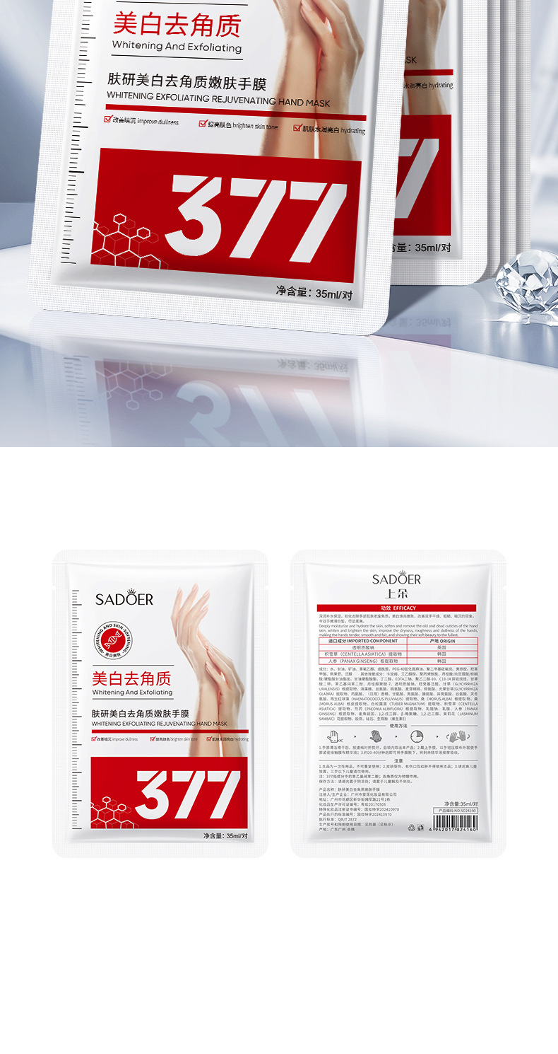 Маска для рук и ног Shangduo 377: сертифицированная отбеливающая и осветляющая пигментные пятна отшелушивающая эссенция-маска, увлажняющая, для ухода за кожей, полный набор, оптом