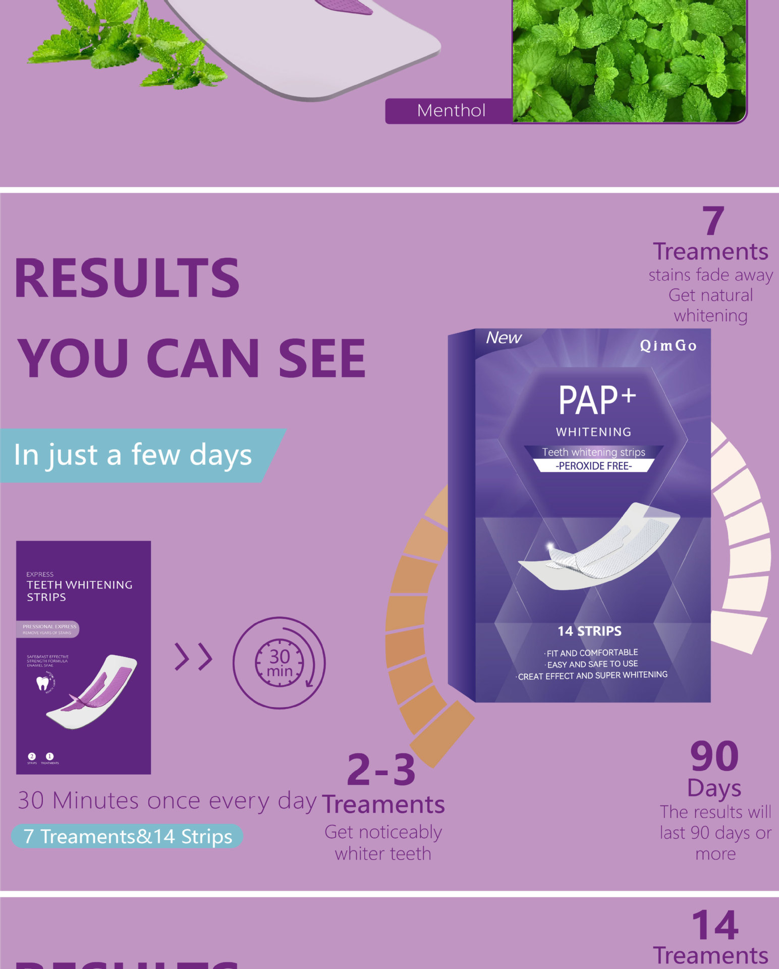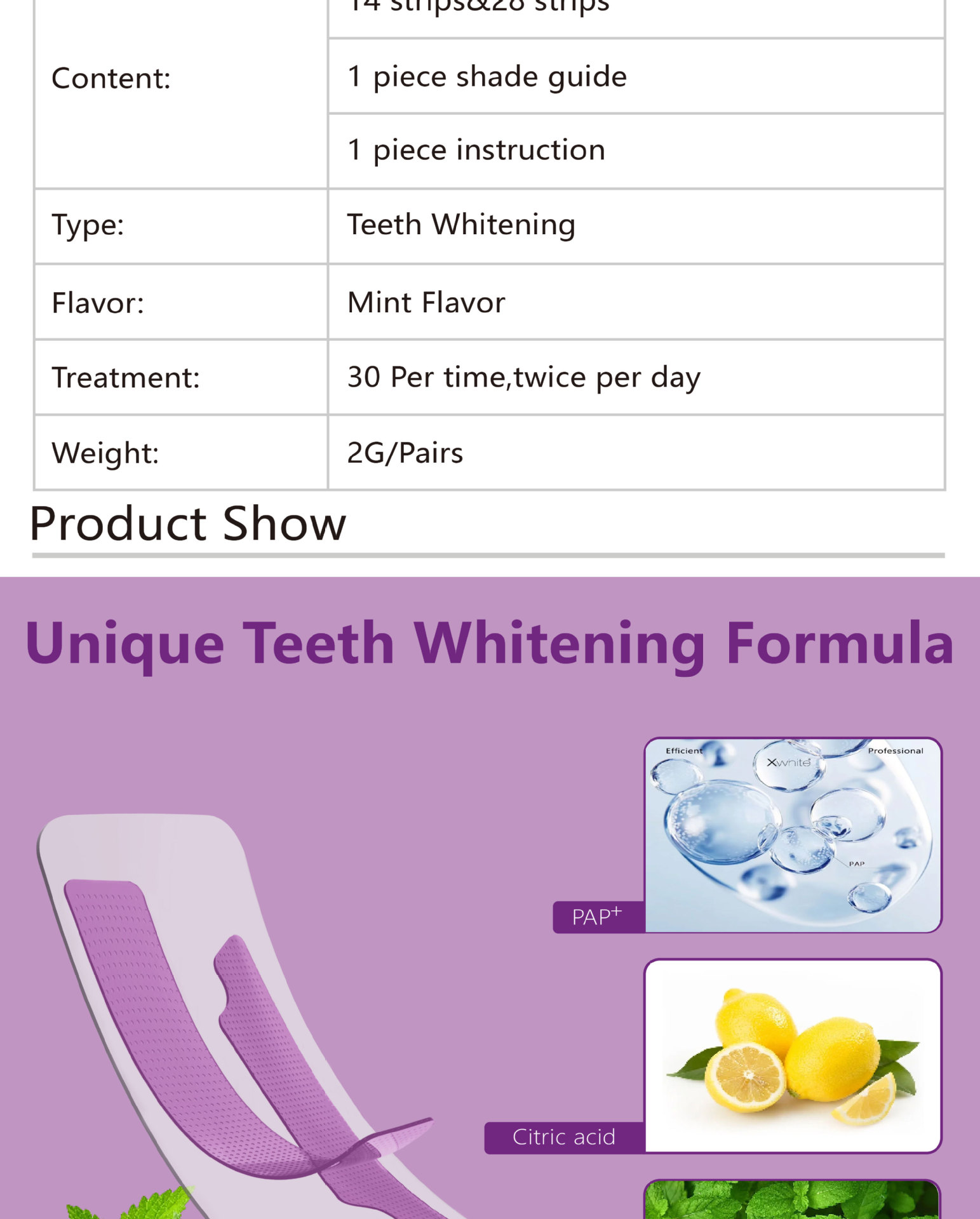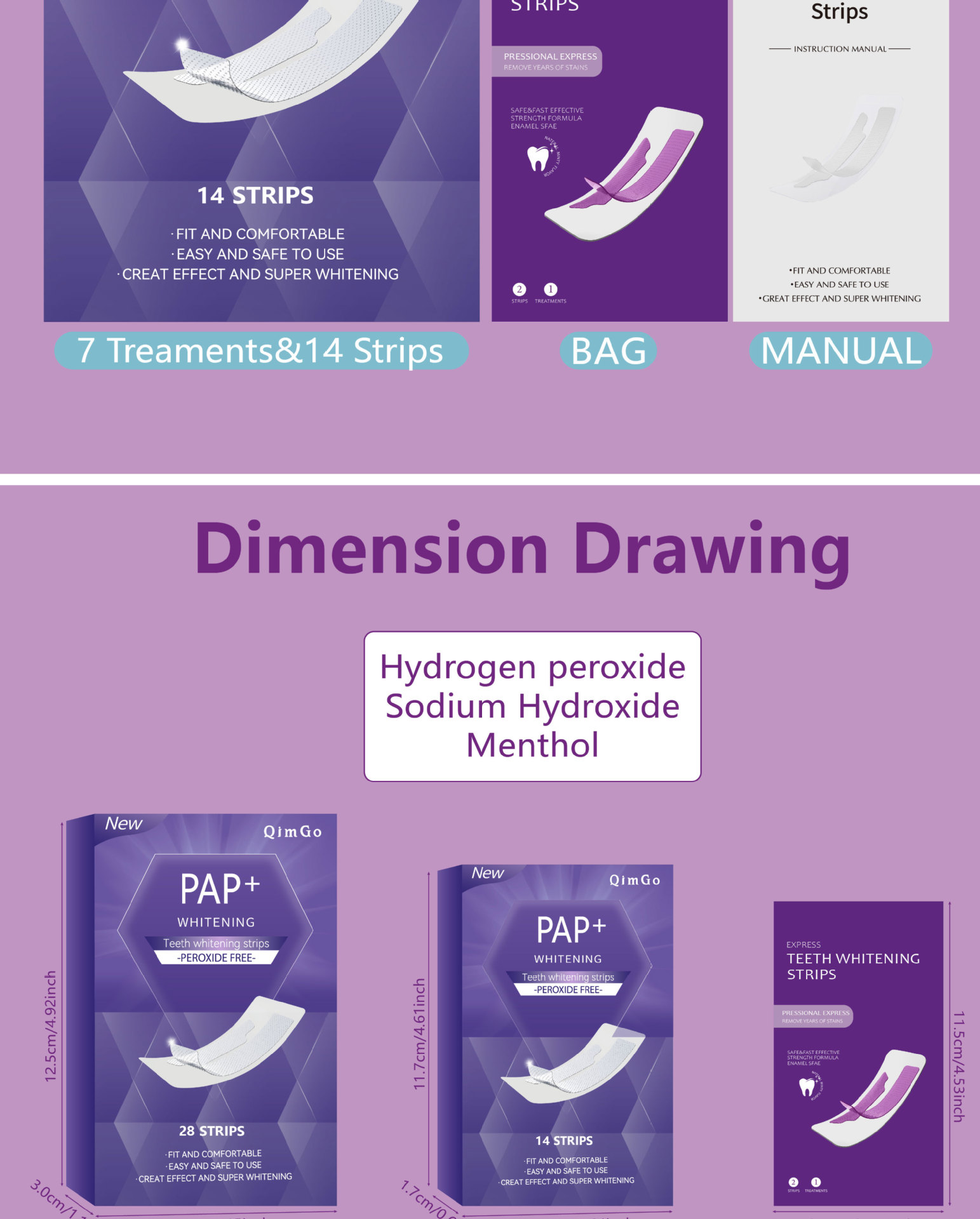 14 пар отбеливающих полосок для зубов PAP фиолетового цвета, эксклюзивно для трансграничных поставок
