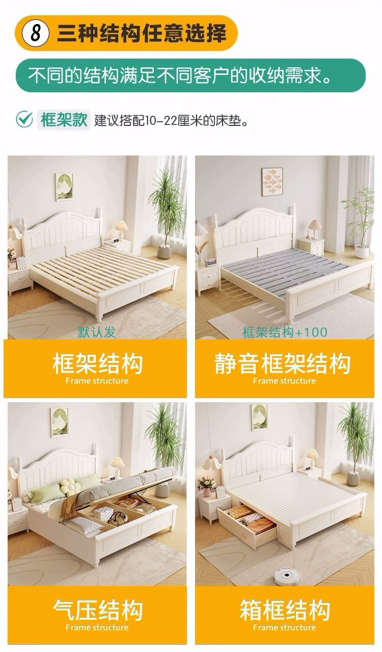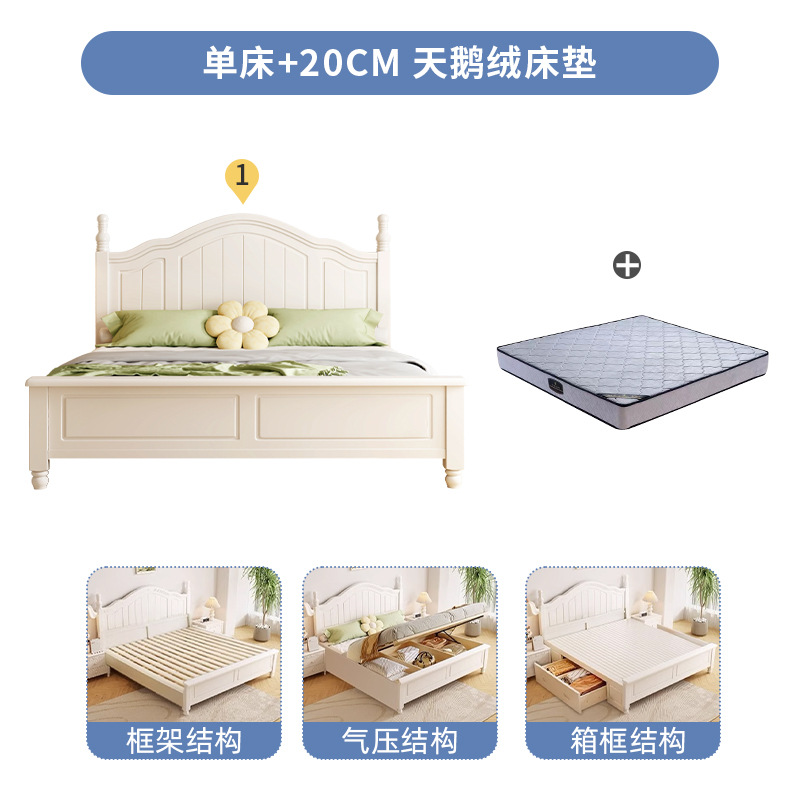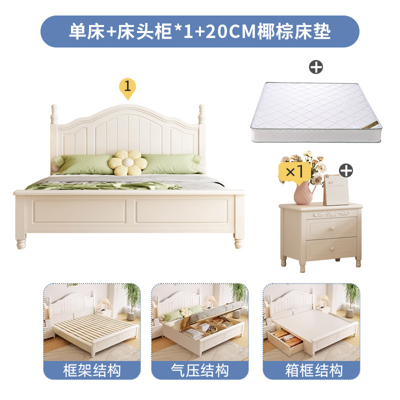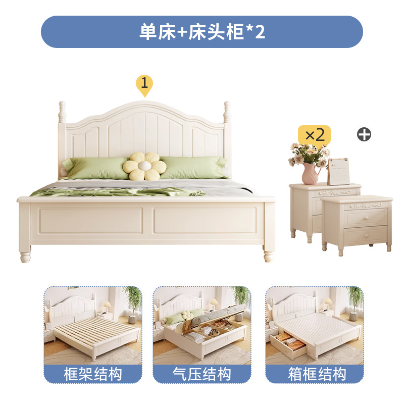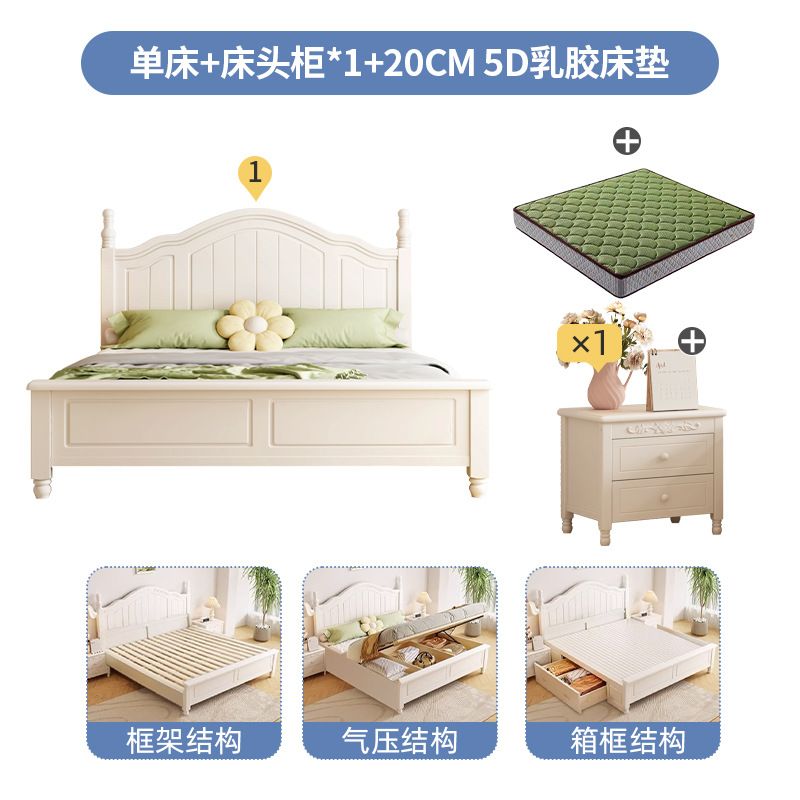 Скандинавская белая кровать из массива дерева, современная простая кровать с ящиками для хранения, свадебная кровать в кремовом стиле, двуспальная кровать 1,8 м, большая кровать для спальни, односпальная кровать 1,5 м