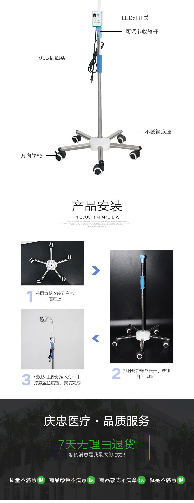 Светодиодная лампа для медицинского осмотра Мобильная лампа холодного света Лампа вспомогательного освещения, используемая в клинике Лампа для осветительного оборудования салона красоты