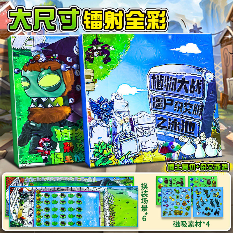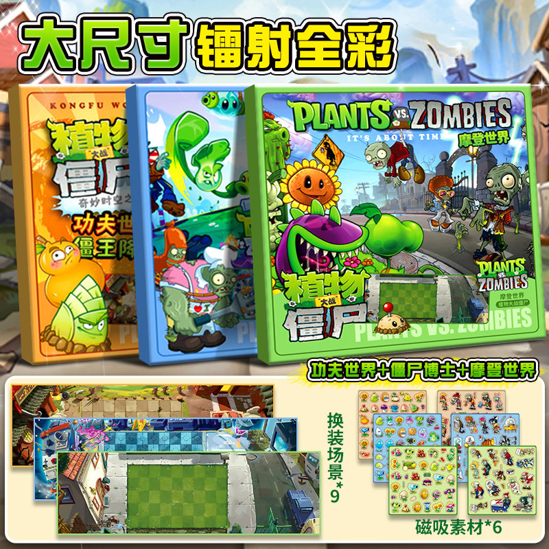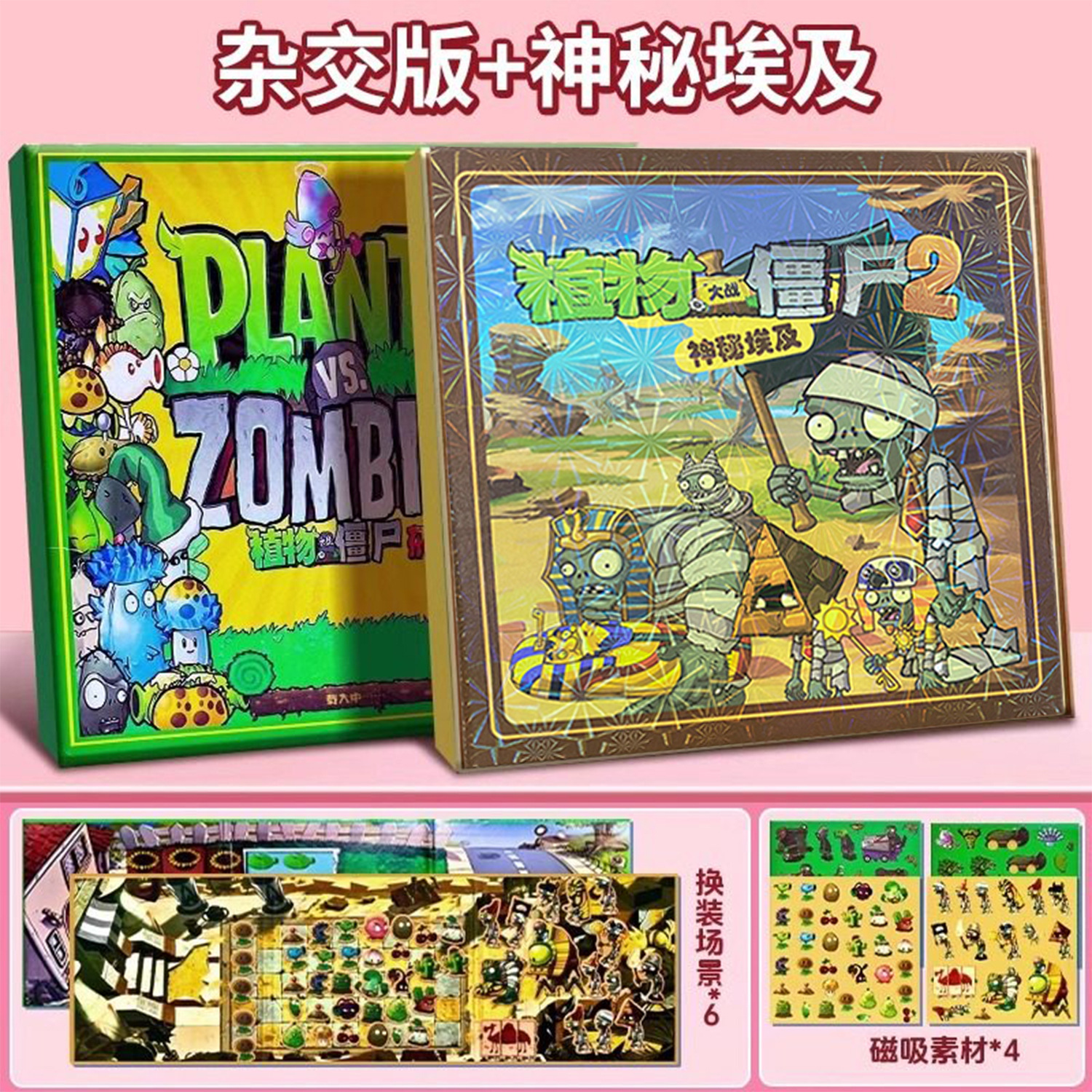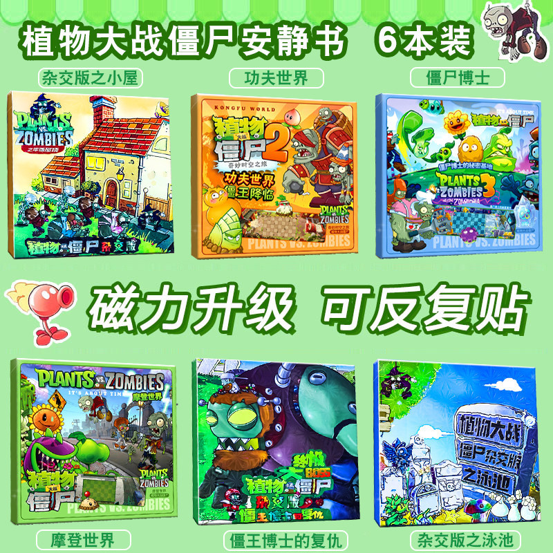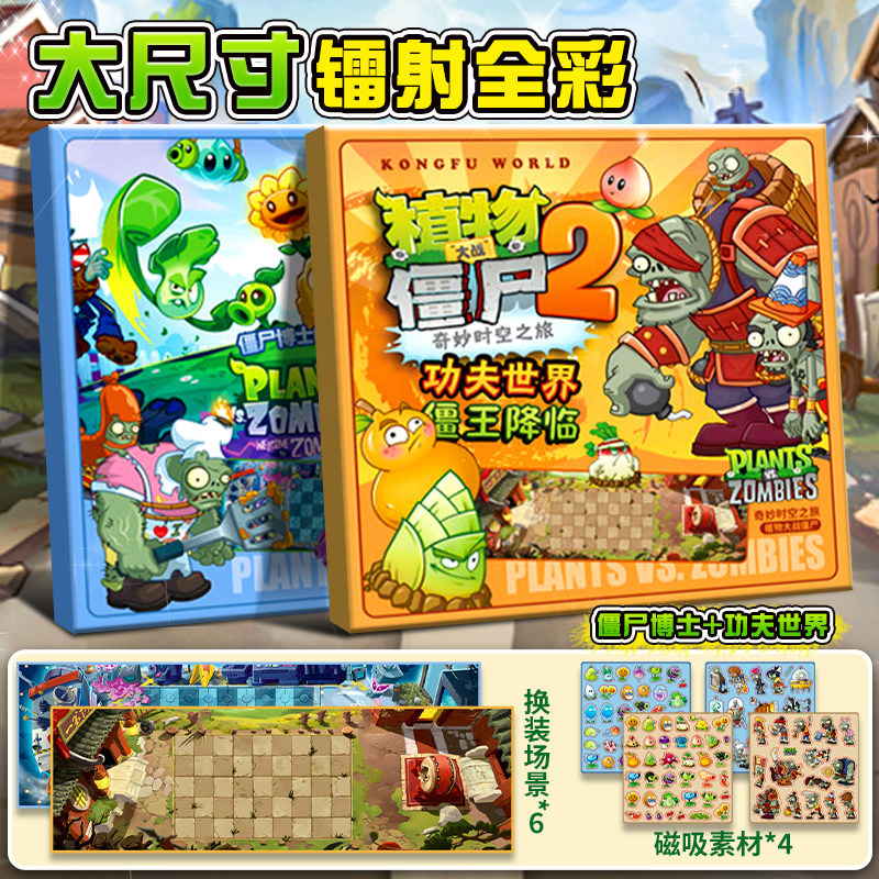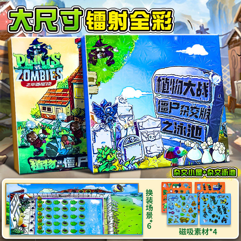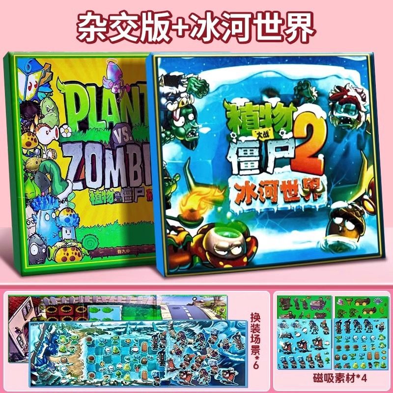 Магнитные наклейки-книжка «Растения против зомби» для девочек начальной школы, без необходимости вырезания, большая магнитная книга-коллаж 18 см
