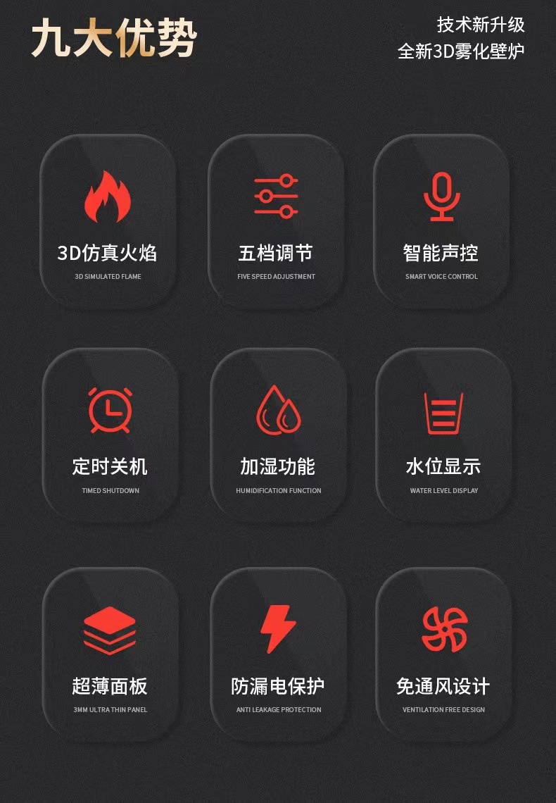 电子壁炉维斯博 电子壁炉嵌入式 智能壁炉 雾化壁炉仿真火焰装饰品 雾化壁炉加长火焰 雾化壁炉灯