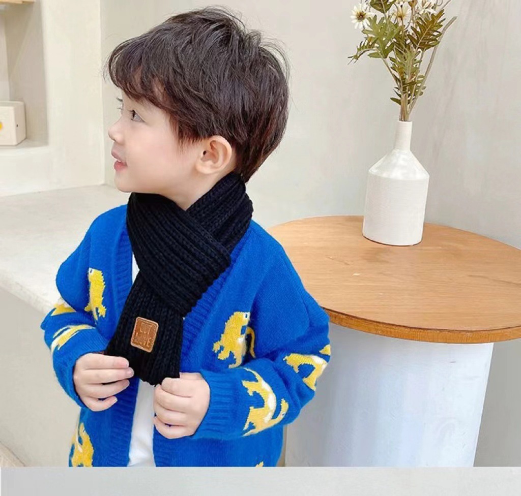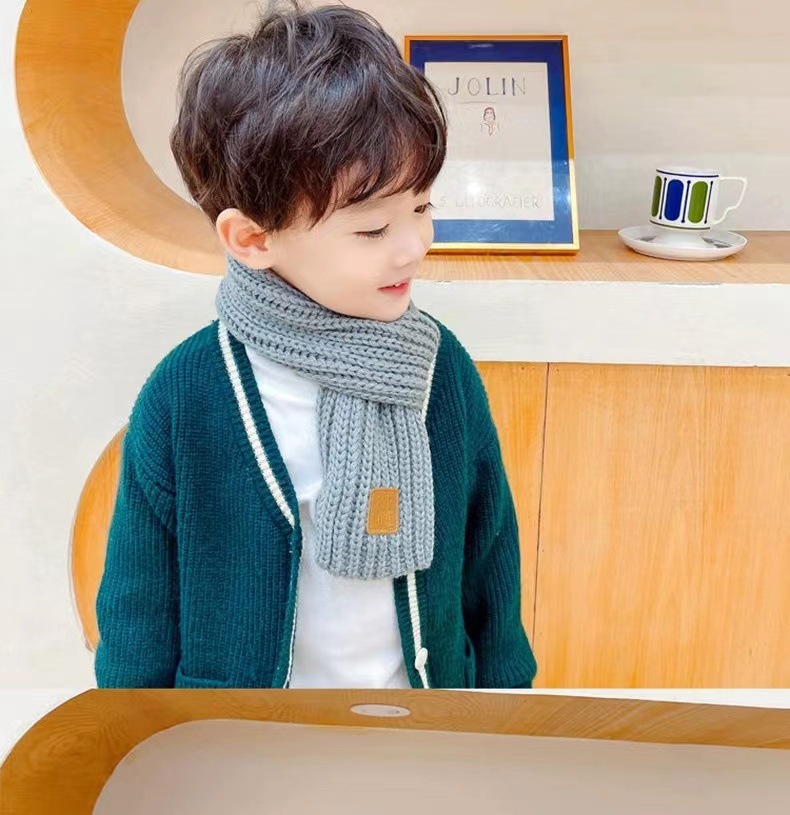 Зимний теплый и утолщенный вязаный шарф в корейском стиле для мальчиков и девочек, защита шеи детей, ветрозащитный однотонный кожаный шарф на шею оптом