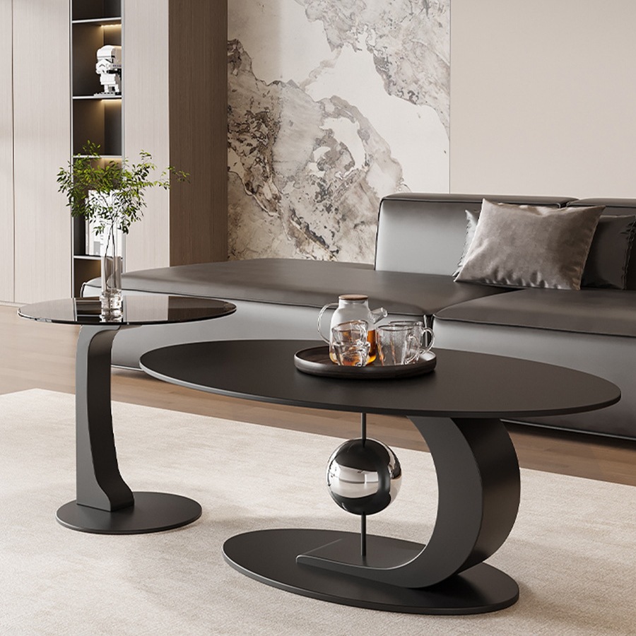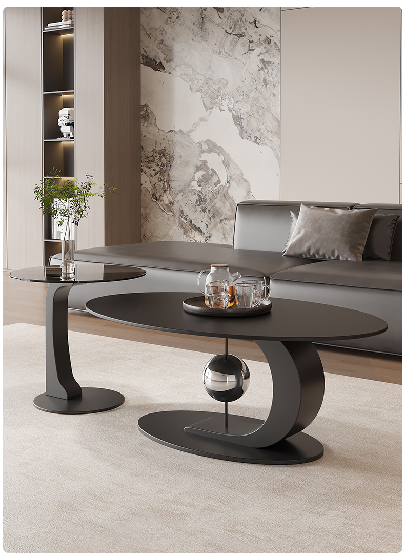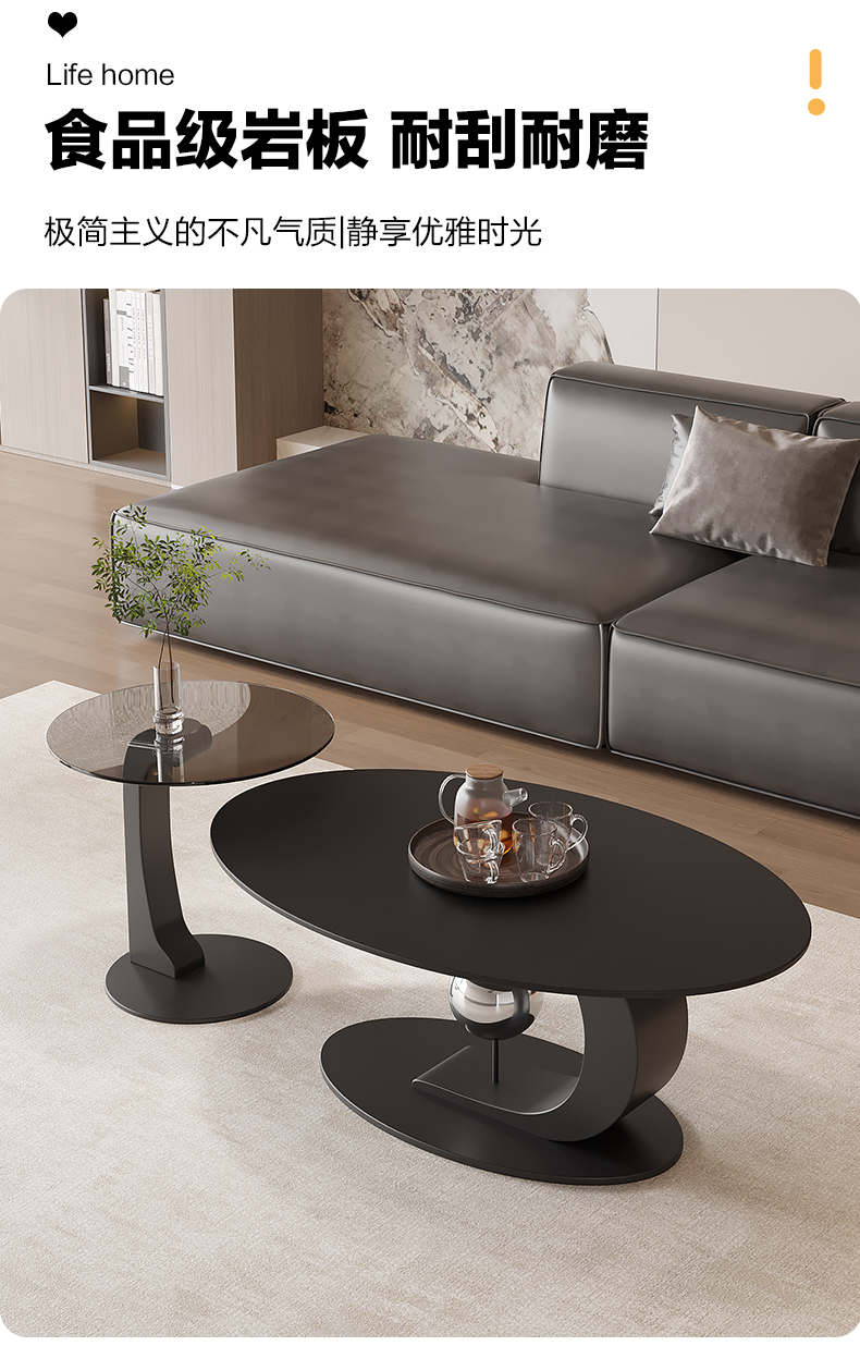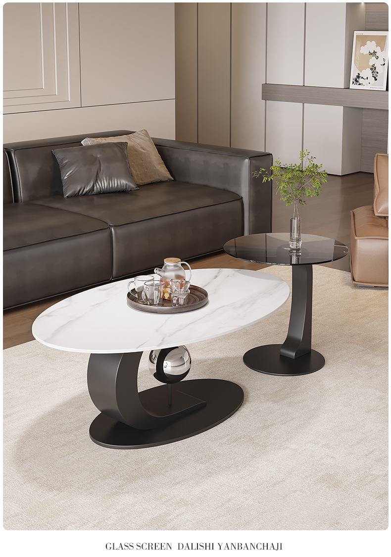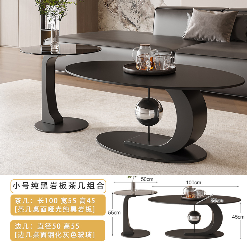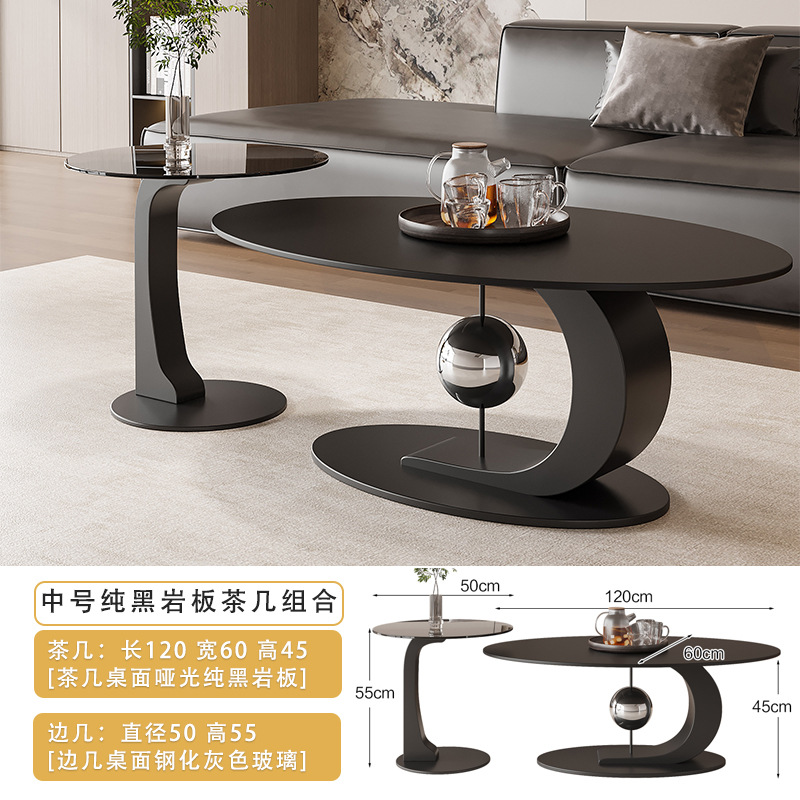 Итальянский минималистичный журнальный столик из сланца для гостиной, небольшой домашний овальный креативный журнальный столик, новинка 2025 года, одиночный
