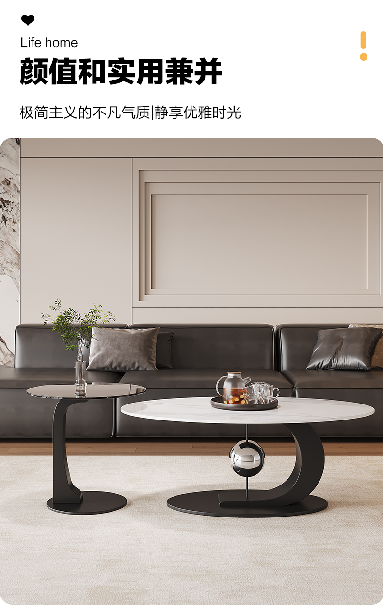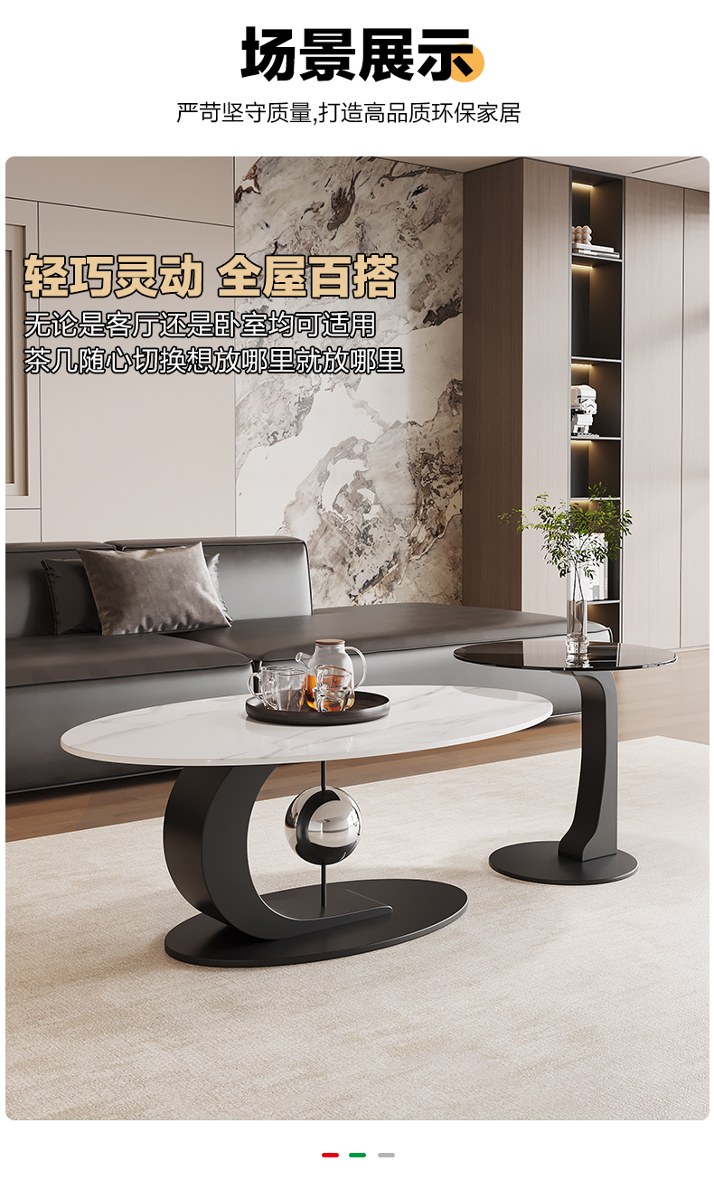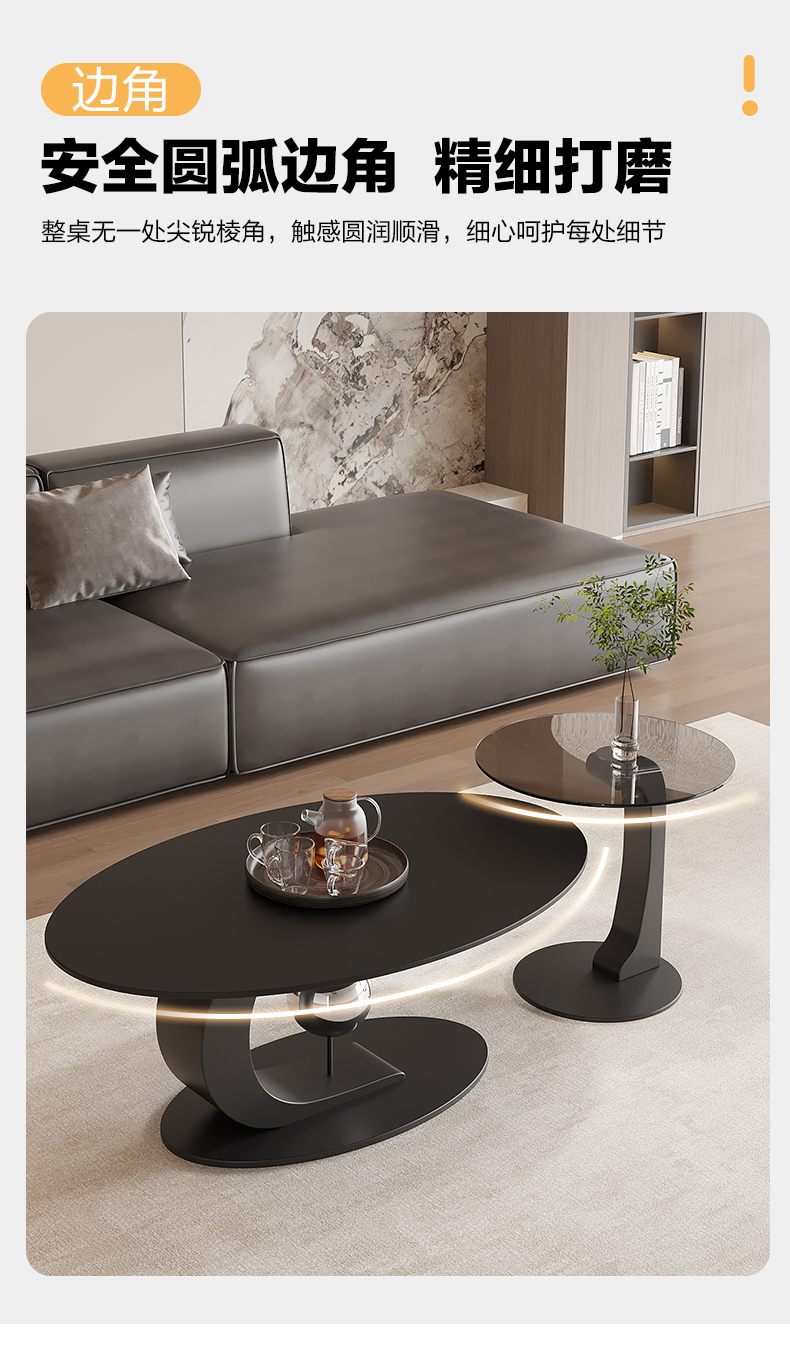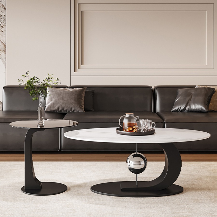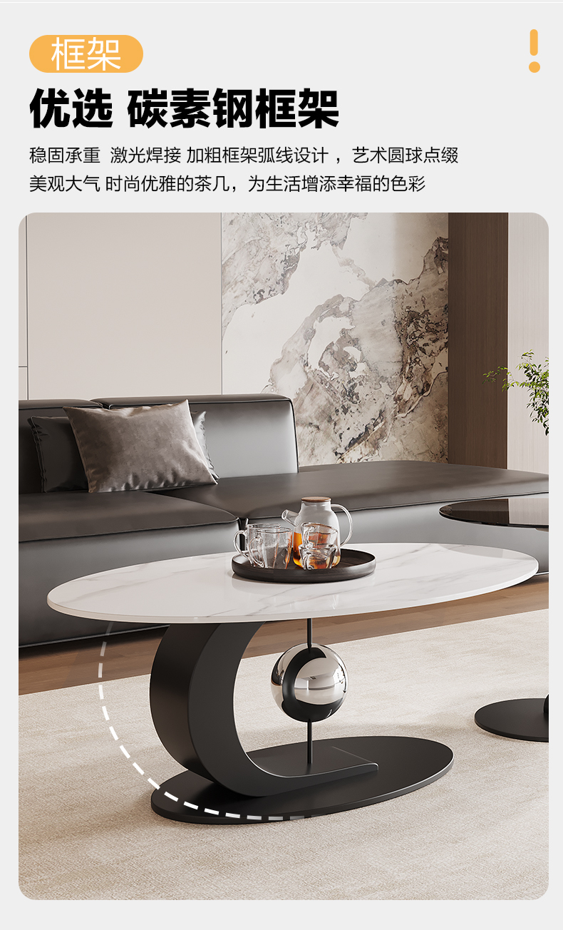 Итальянский минималистичный журнальный столик из сланца для гостиной, небольшой домашний овальный креативный журнальный столик, новинка 2025 года, одиночный
