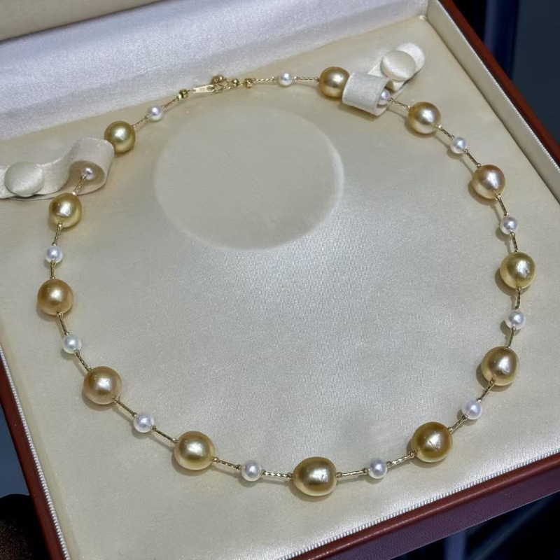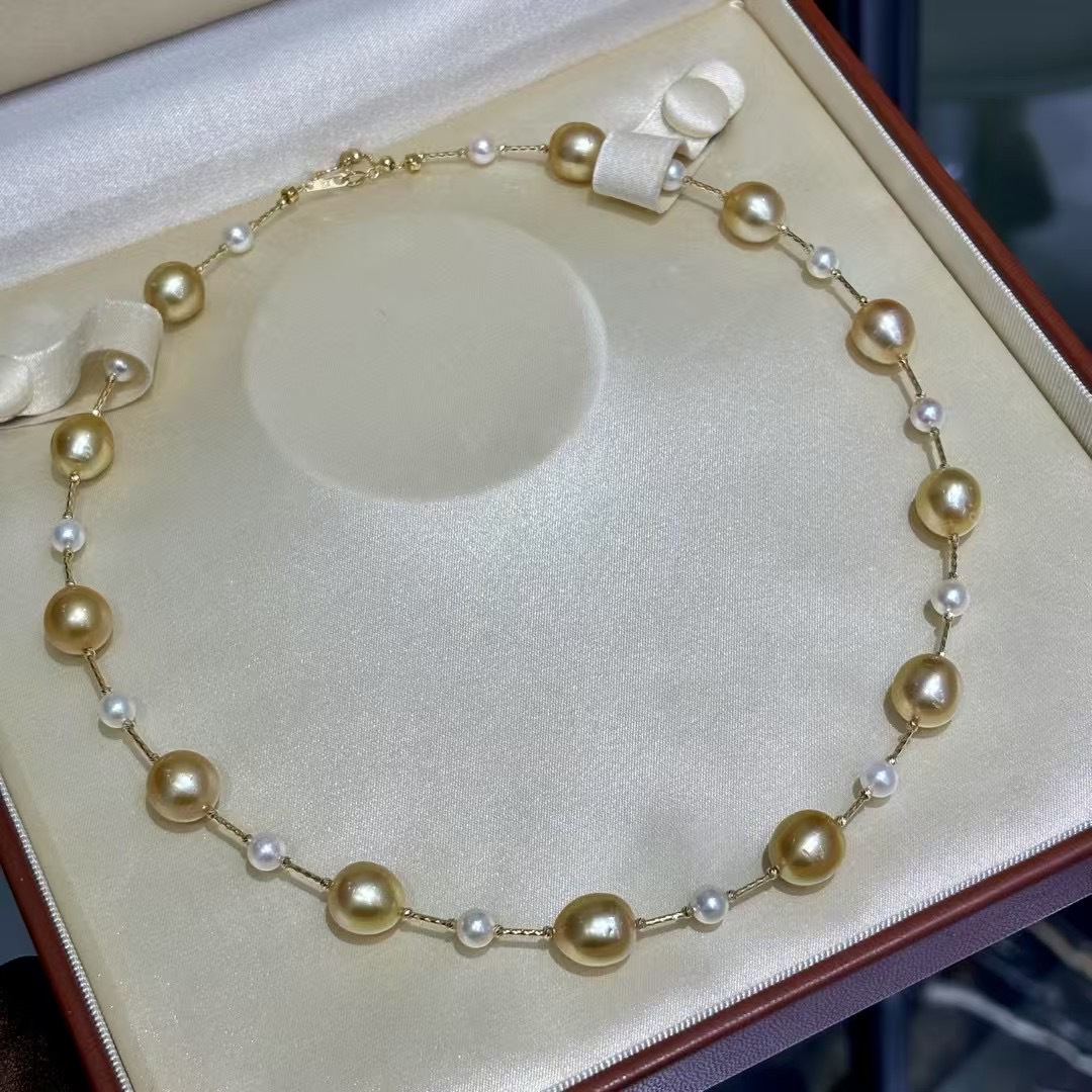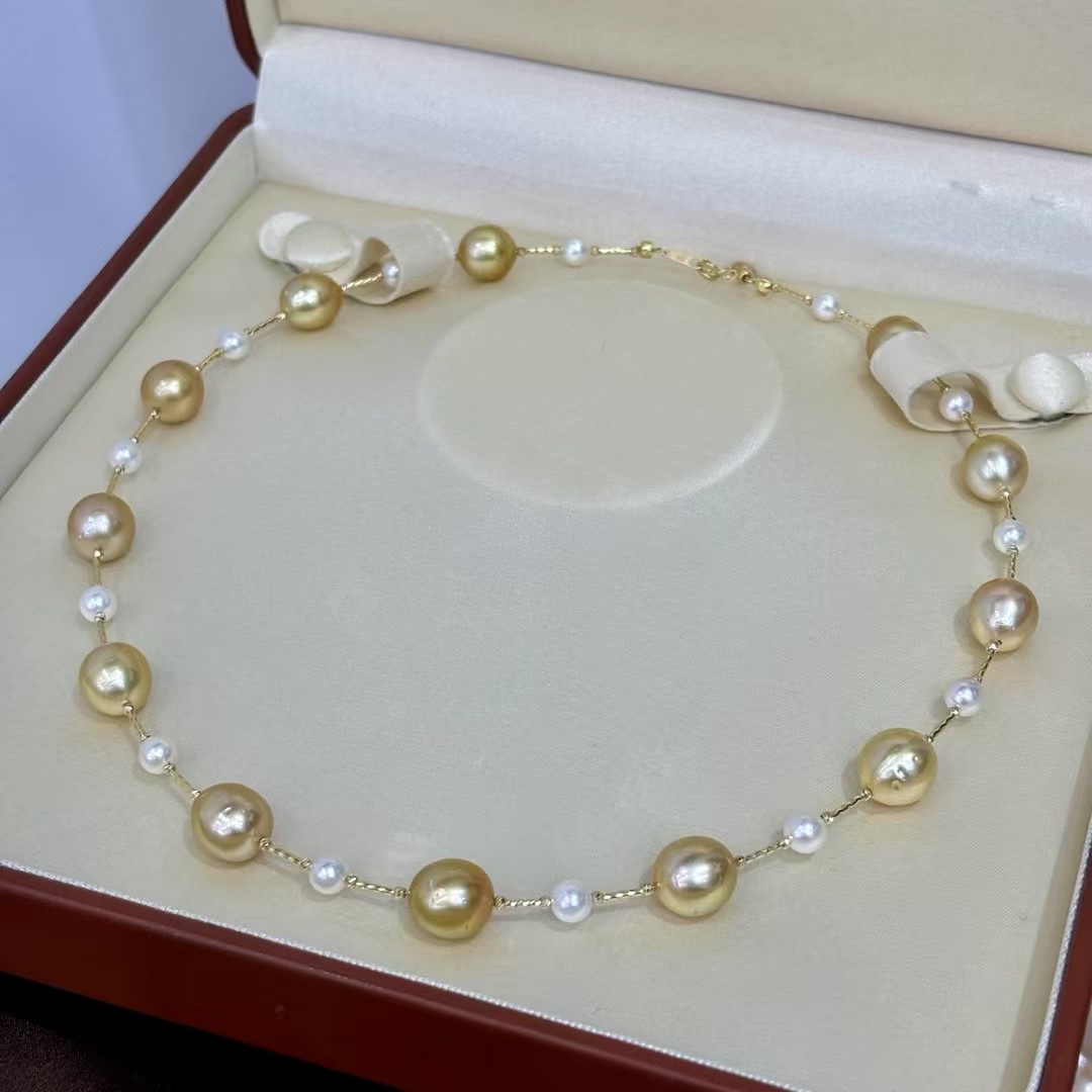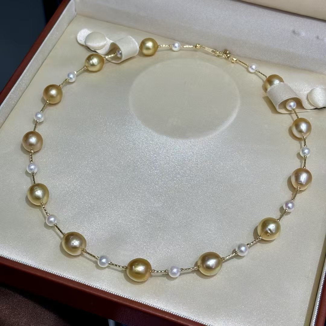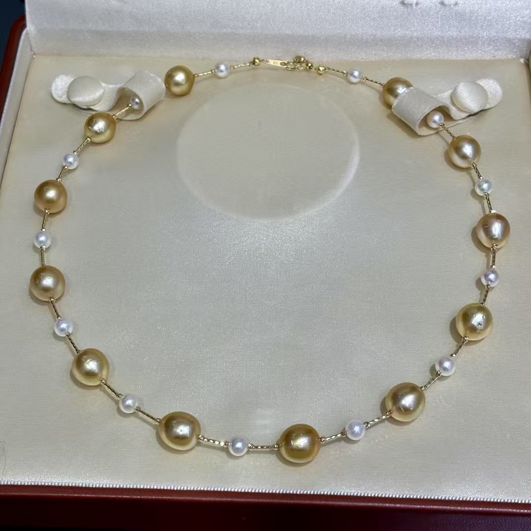 18k金海水设计款链 10-11mm海水金珠(近圆有瑕)➕5-6mm海水akoya(正圆基本无瑕)
