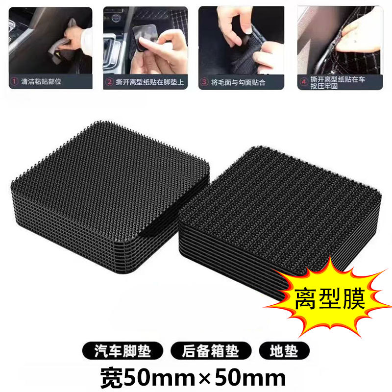 Крепление автомобильного коврика с двусторонней клейкой застежкой-липучкой и перфорированной самоклеящейся наклейкой для крепления занавески и ковра.
