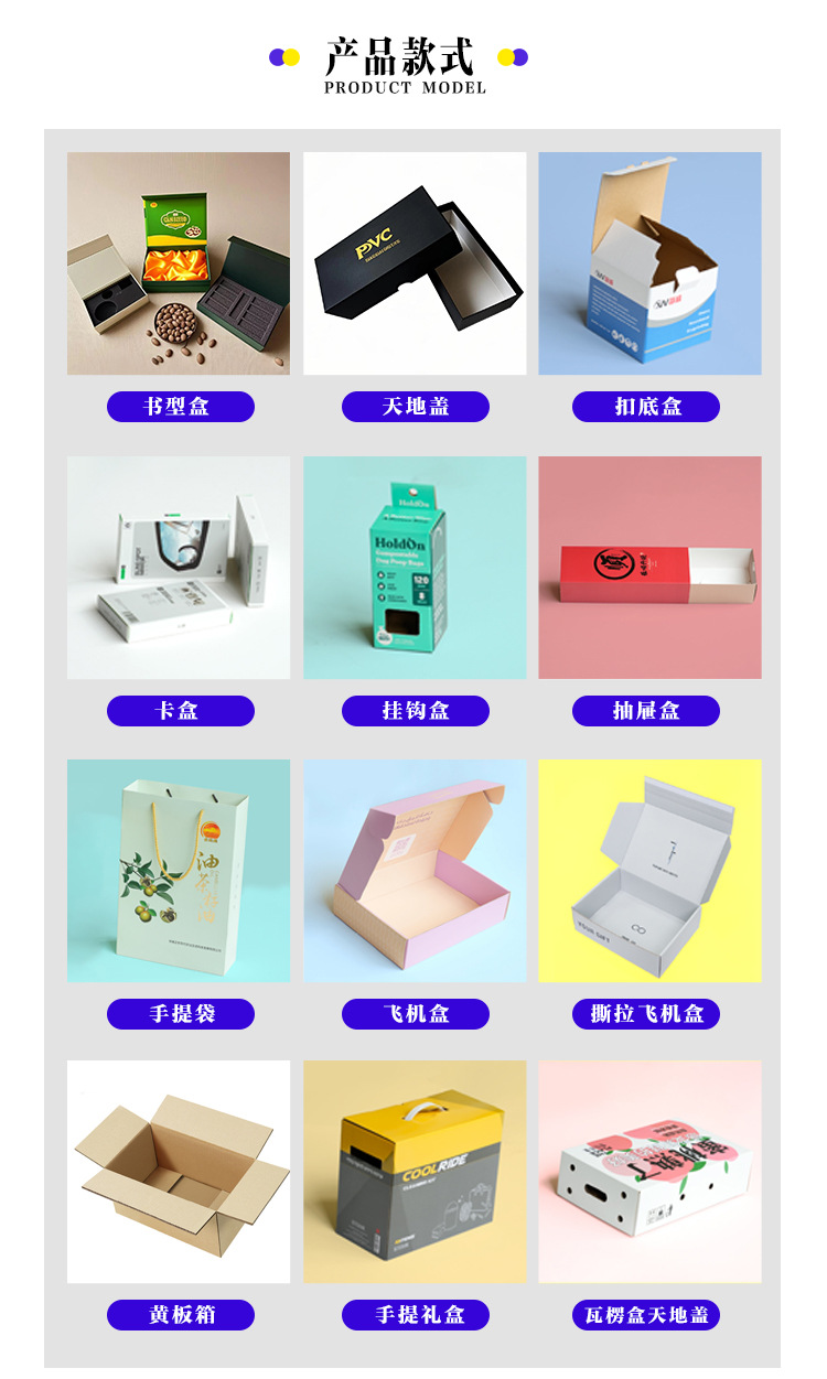 Индивидуальная коробка для самолета; Индивидуальный ящик для выдвижных ящиков; Индивидуальный чемодан; Гофрокартонные коробки на заказ; Изготовленные на заказ оконные коробки; Индивидуальная коробка с крышкой «Небо и земля»; Индивидуальная книжная коробка; Индивидуальная коробка с двойной вилкой; Индивидуальная коробка для крючков