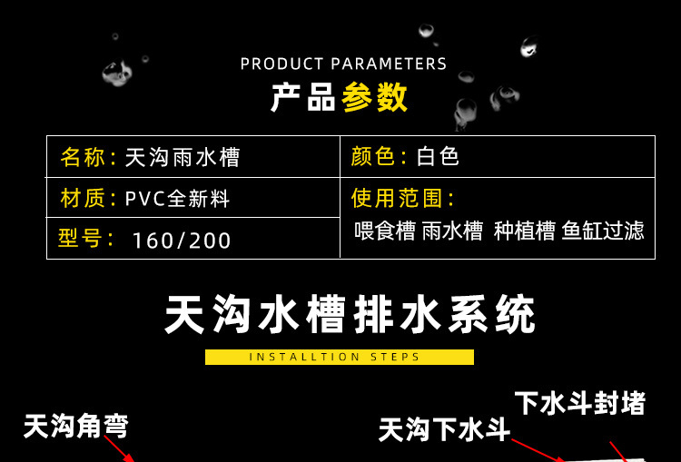 Канализационная желобка из ПВХ 160 200 квадратная пластиковая желобка для сбора воды, карниз для дома, дренажная желобка для дождя, соединительная труба, желоб для навеса от дождя