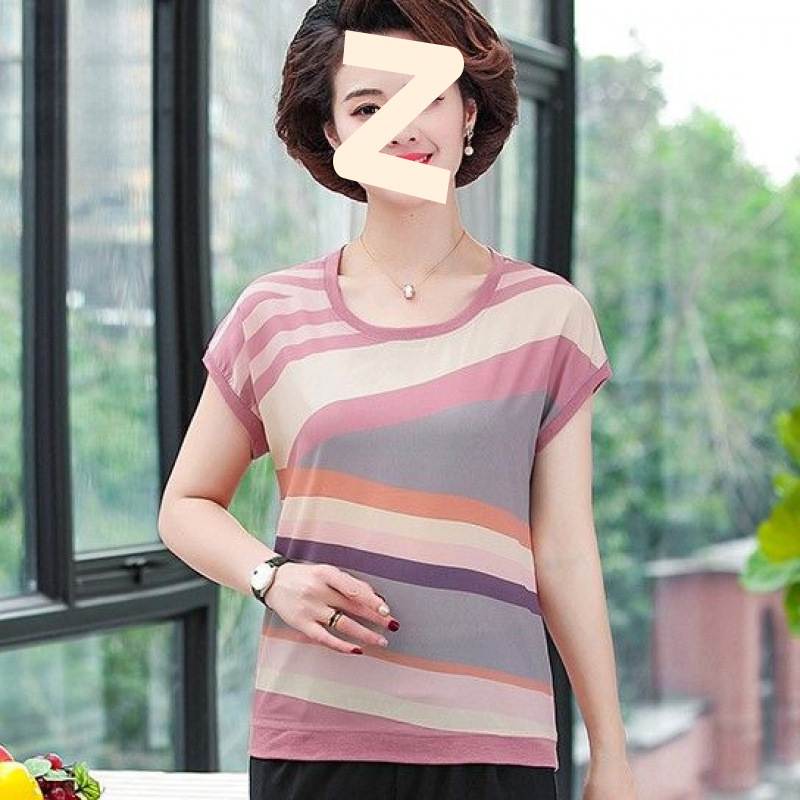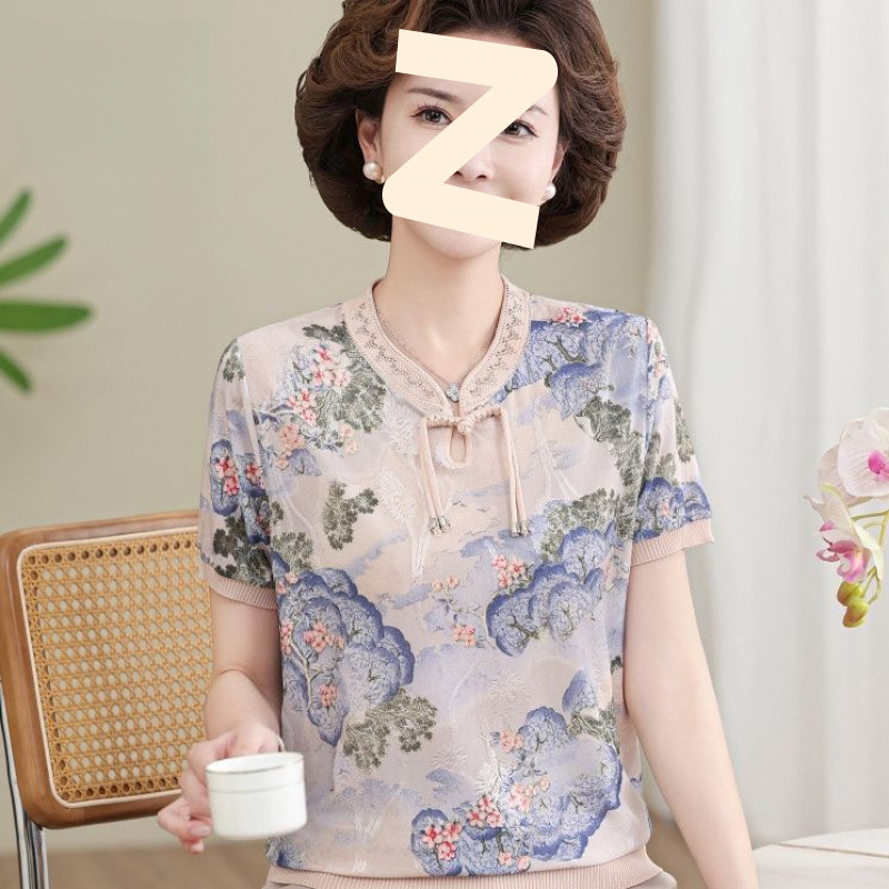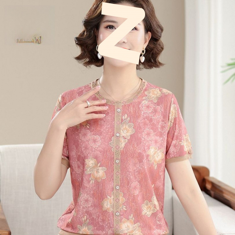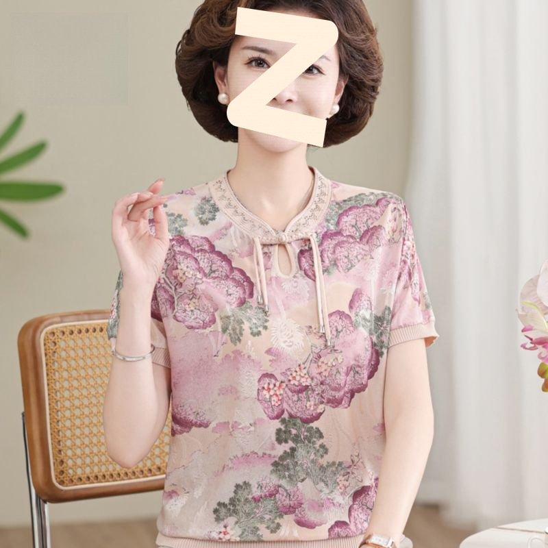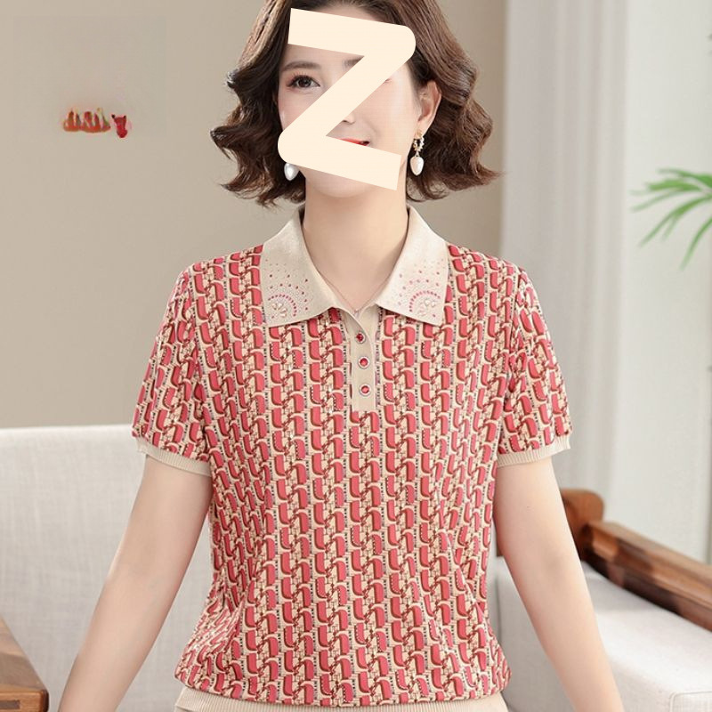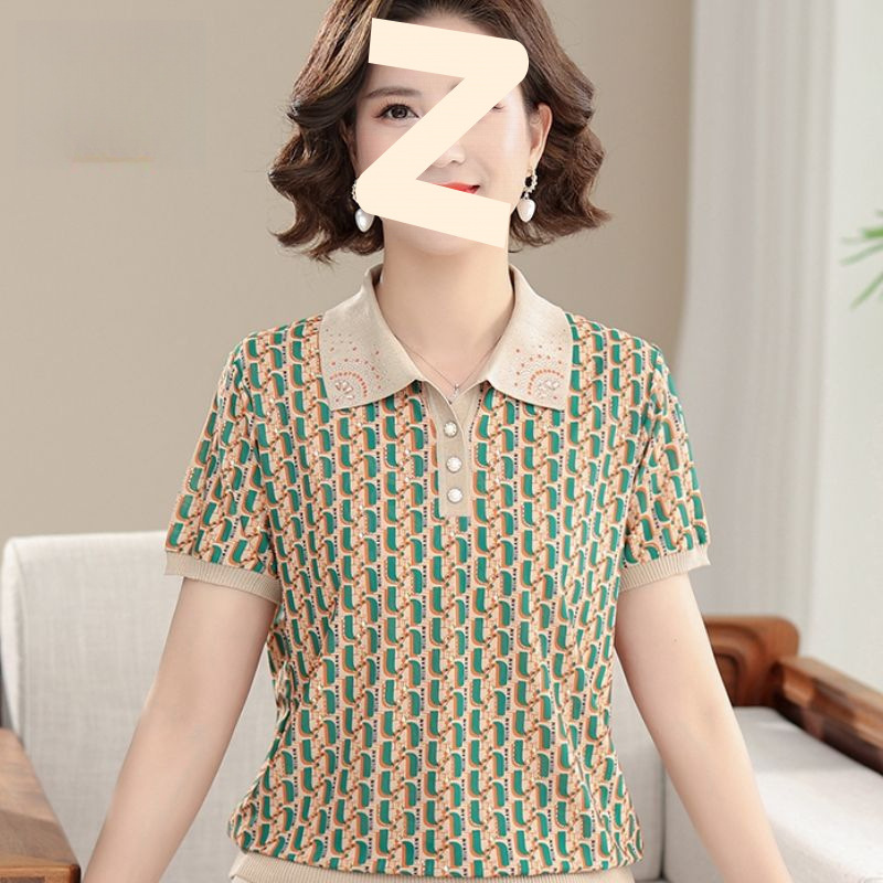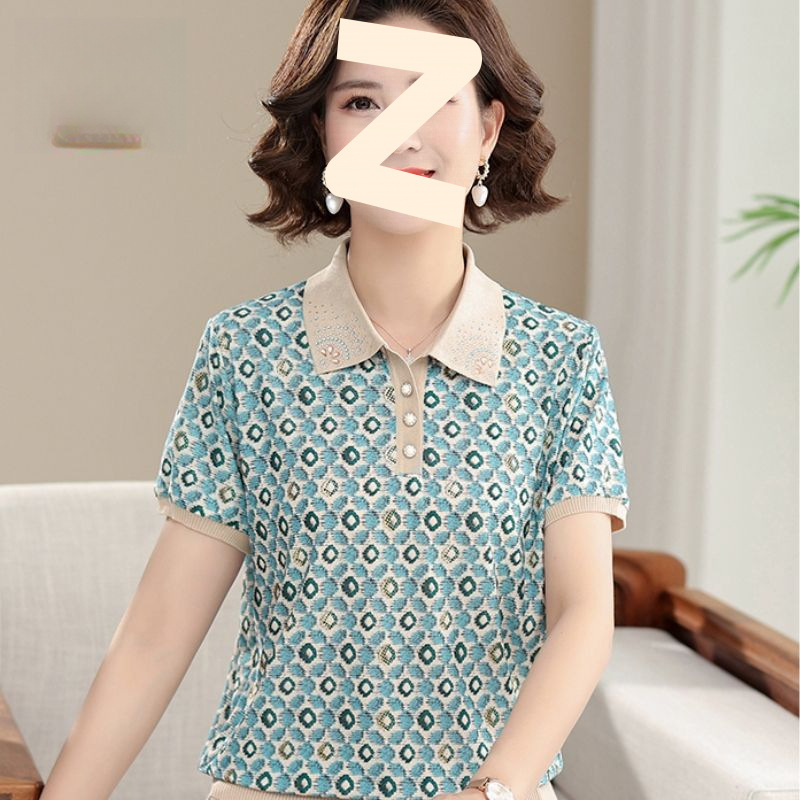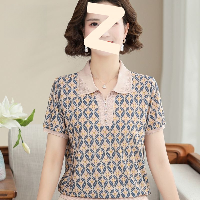 Летняя футболка из ледяного шелка с короткими рукавами для мамы, новый стильный топ с лацканами, свободный стиль, одежда для среднего и пожилого возраста для 50-60 лет