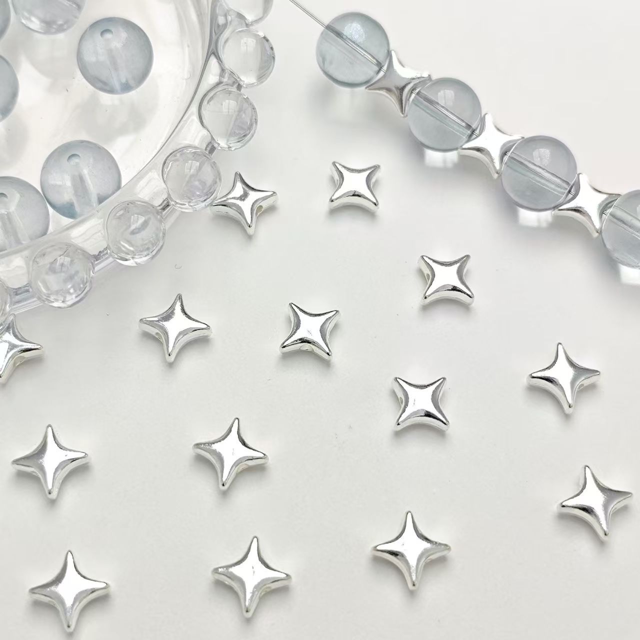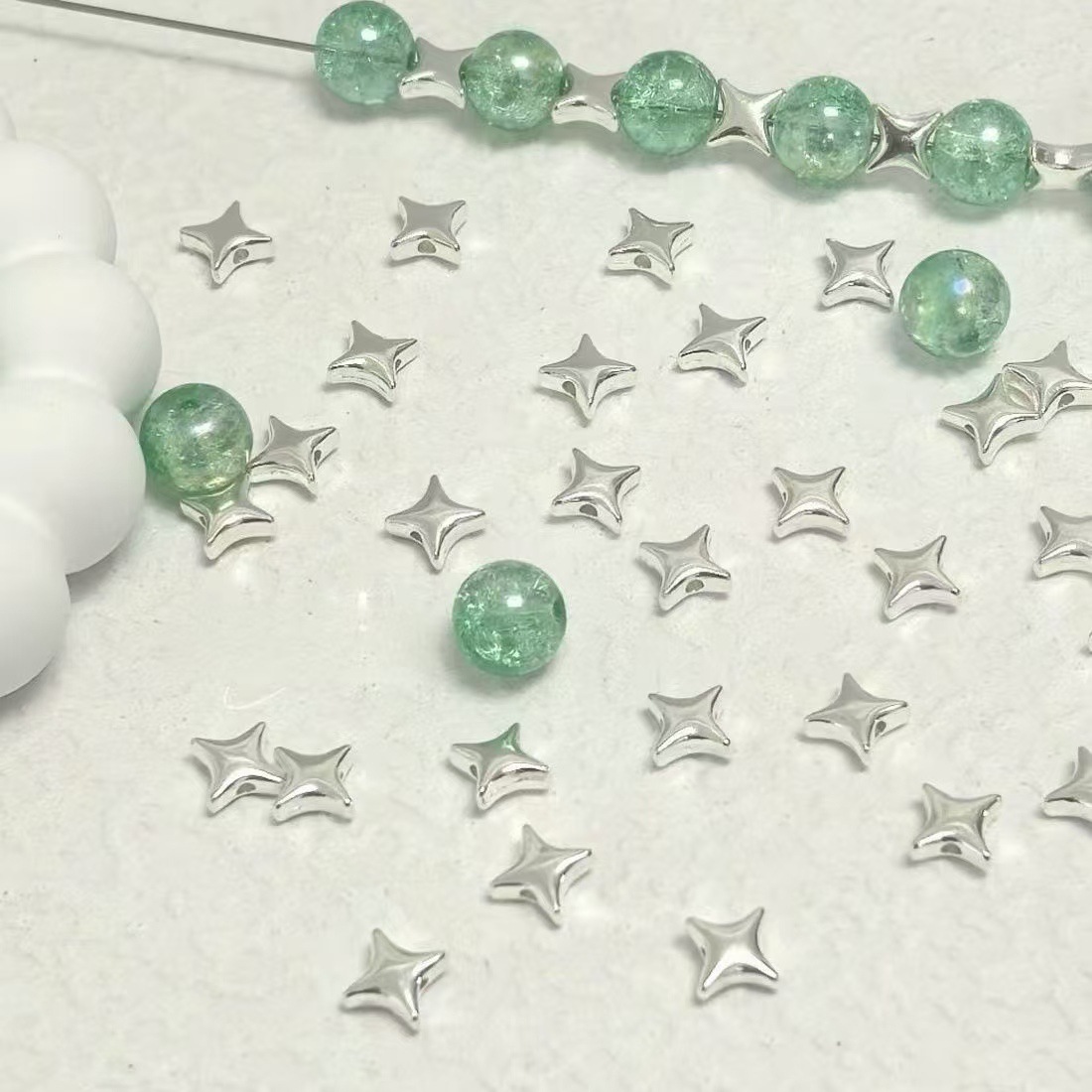 Фурнитура для украшений своими руками: бусины-разделители в форме четырехконечной звезды, материалы для рукоделия, браслетов, ожерелий, серег.