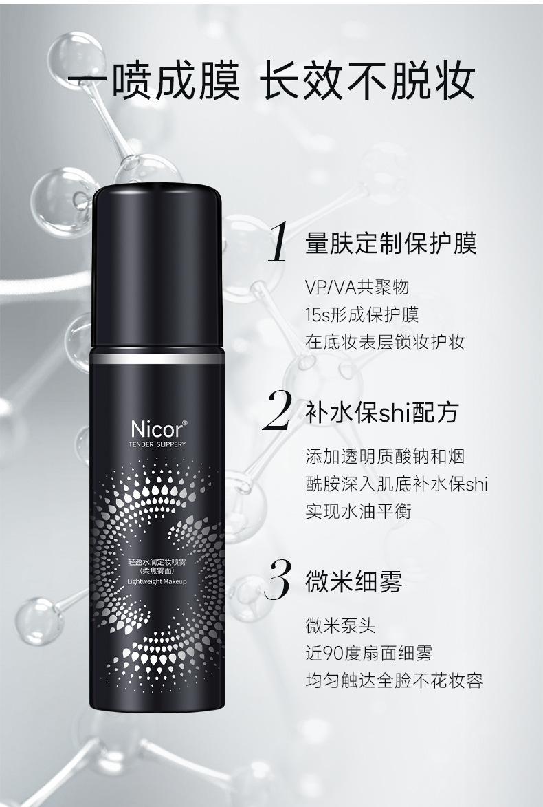 Увлажняющий легкий спрей для фиксации макияжа Nicor (матовый с мягким фокусом)