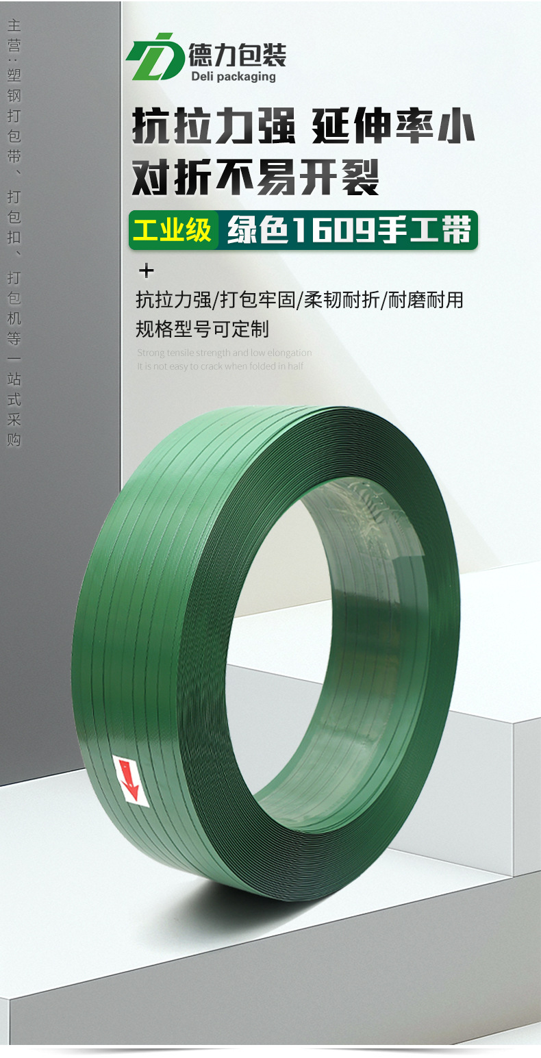 Зеленый пластиковый стальной ремень 1609, не разделяющийся пластиковый стальной упаковочный ремень, упаковочный ремень с горячим расплавом, упаковочный ремень для домашних животных, производитель оптом