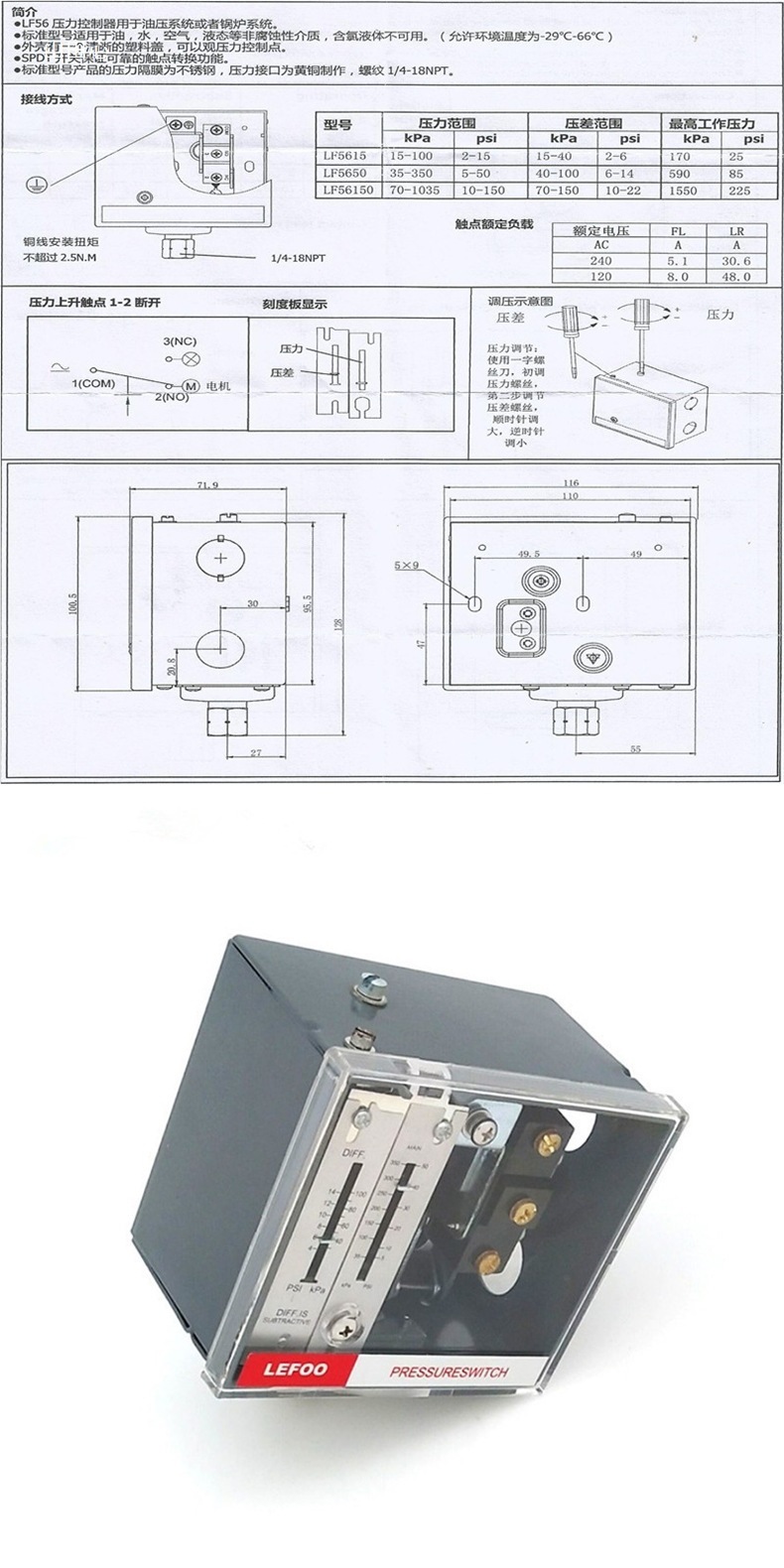 LF56 Котел Паровое масло Давление воды Регулируемый переключатель давления 380 В 220 В Контроллер давления Оптовая продажа.