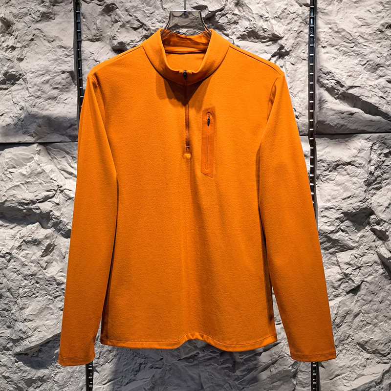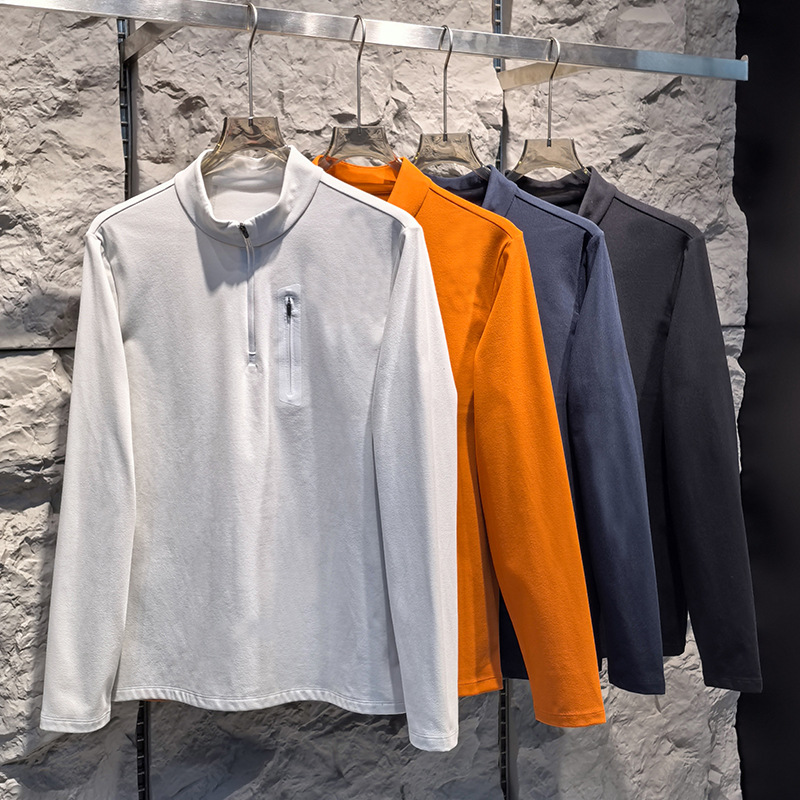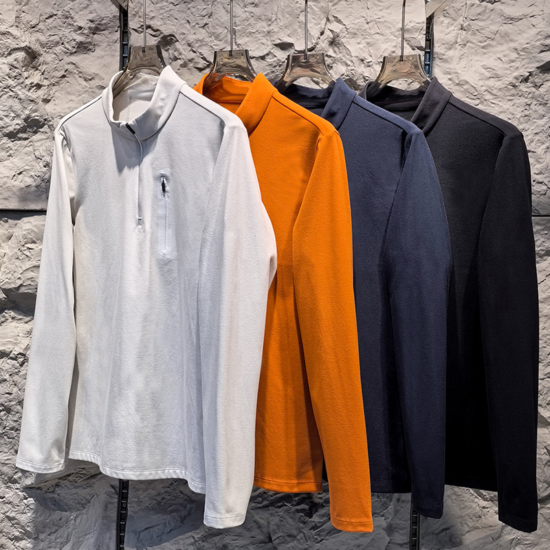 Мужская легкая спортивная легкая мужская футболка Kerong с длинными рукавами и эластичным теплым флисом, тонкая бархатная футболка с половиной молнии внутри