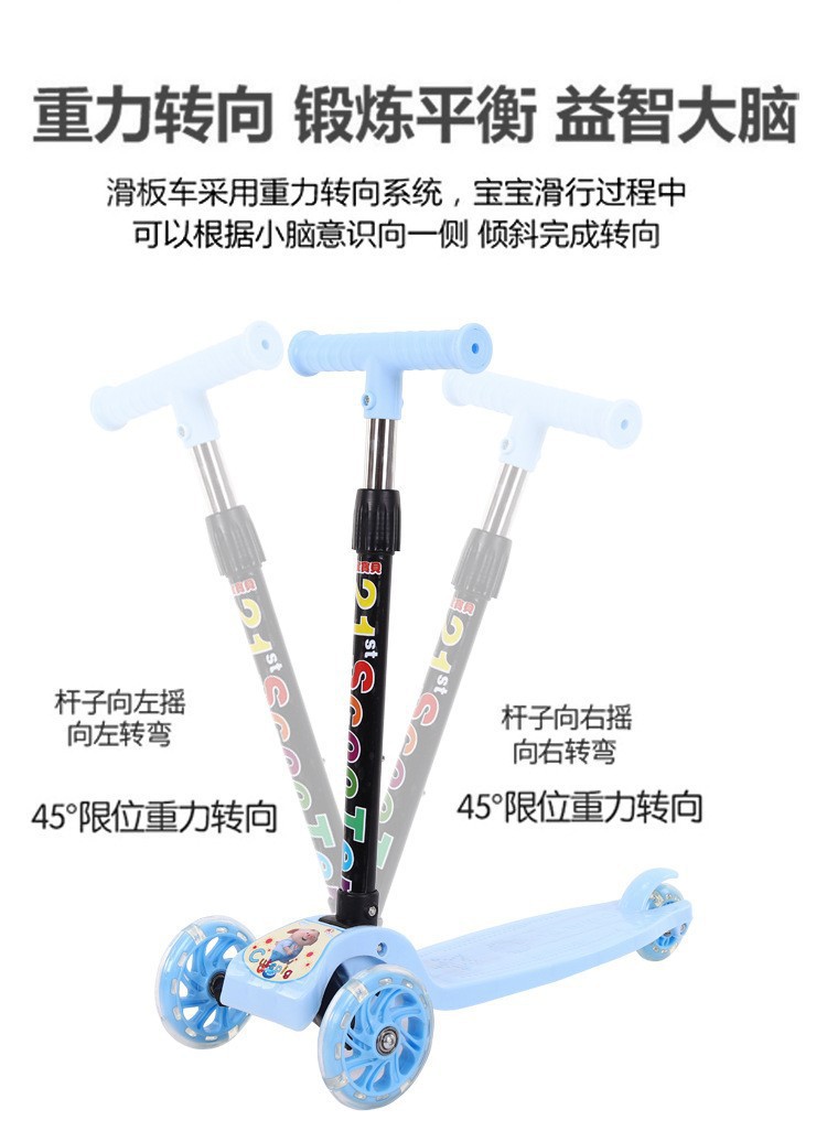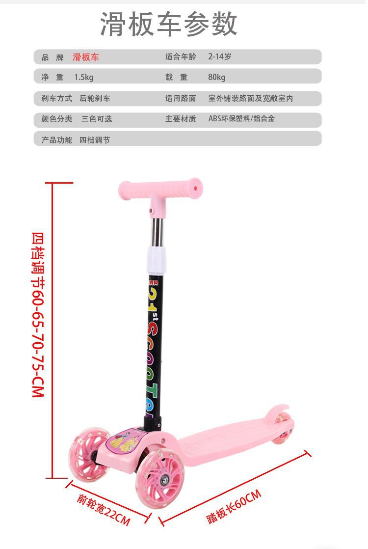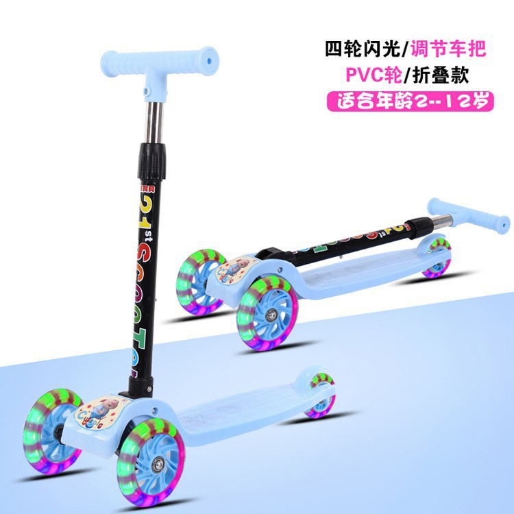 Детский самокат, складной в один клик, раздвижной детский самокат, ходунки для малышей, высокая машина с вспышкой, четырехскоростная регулировка
